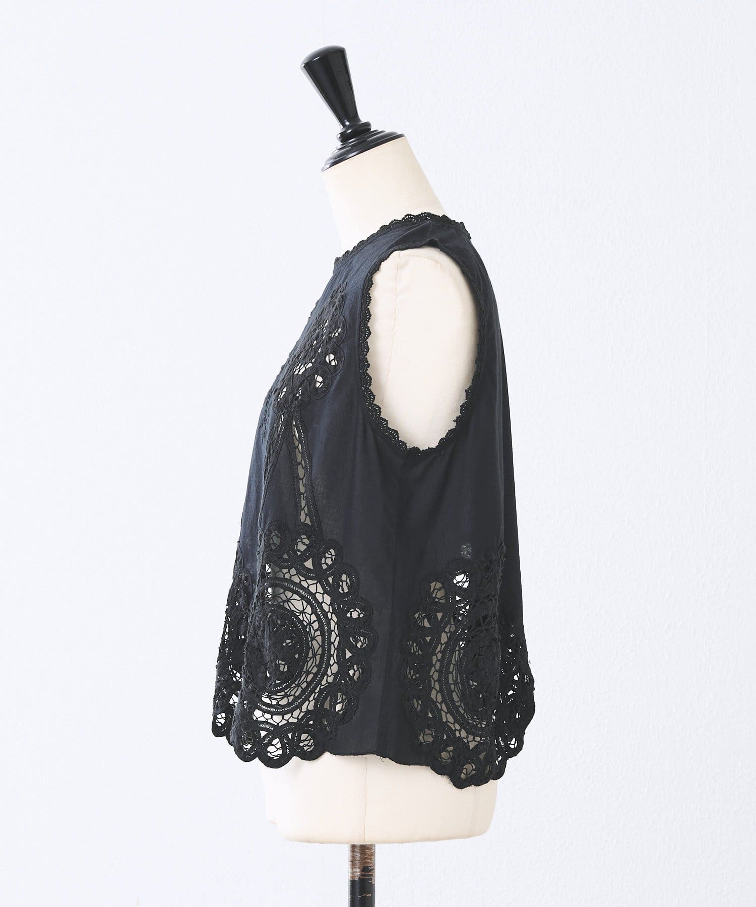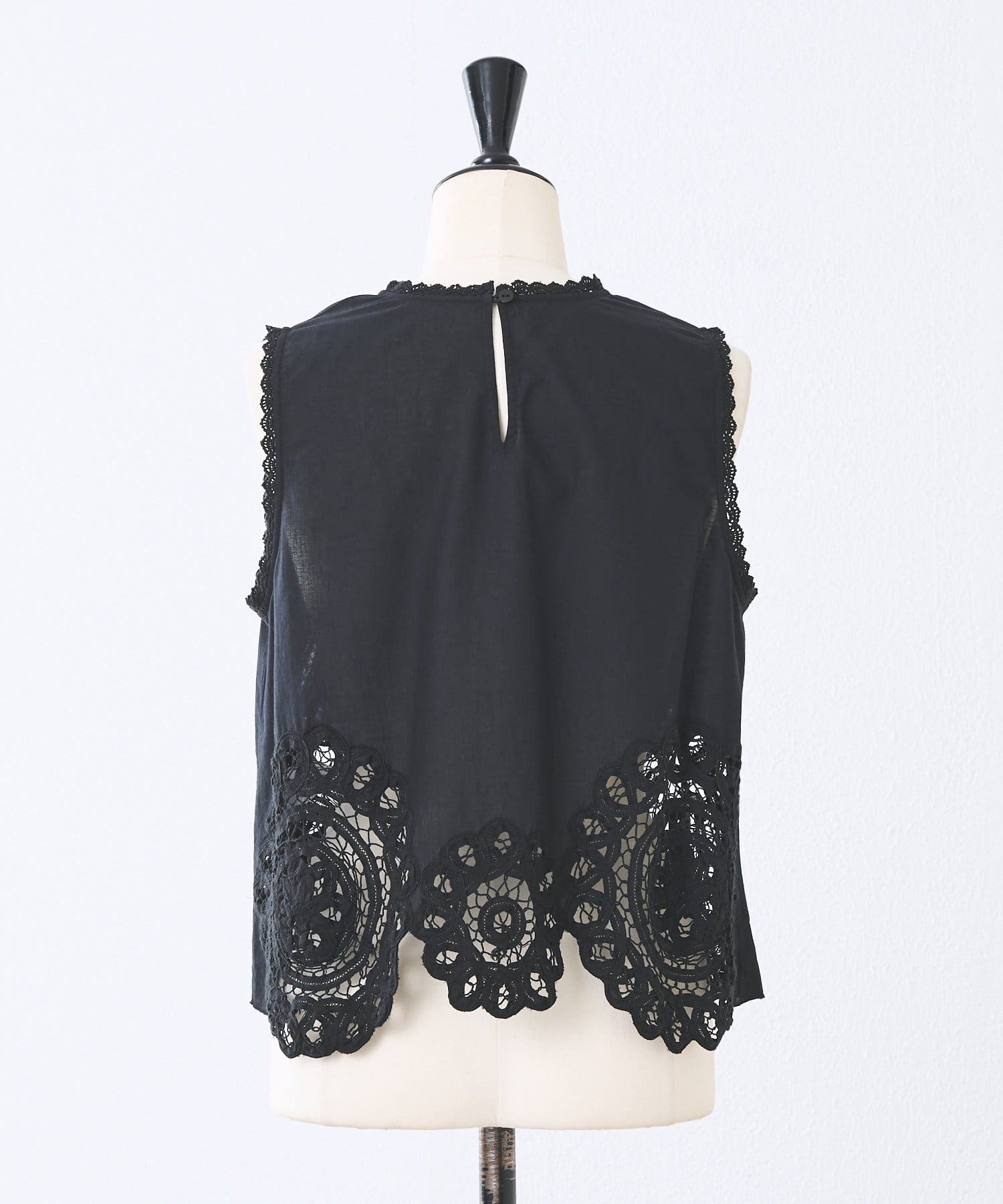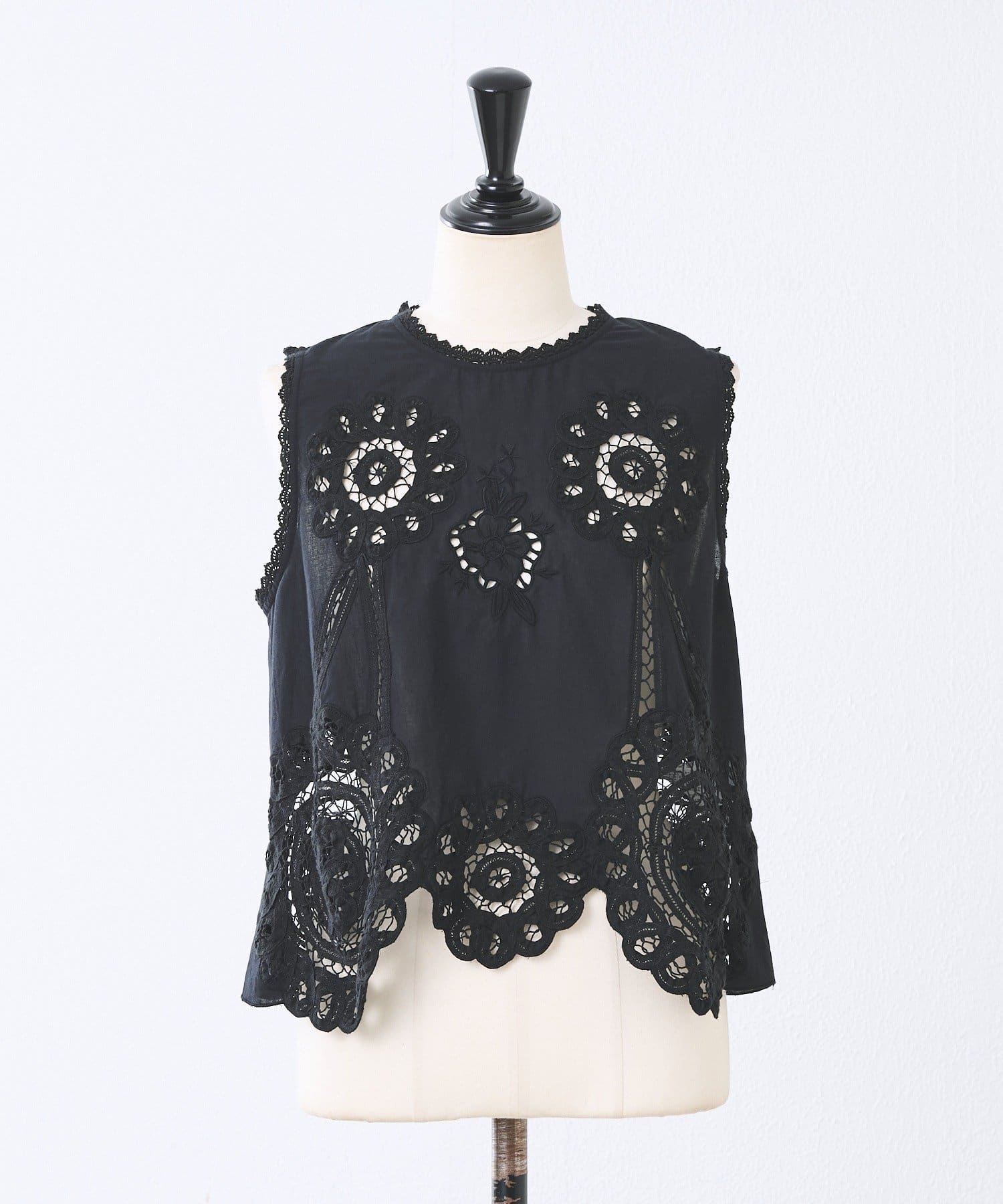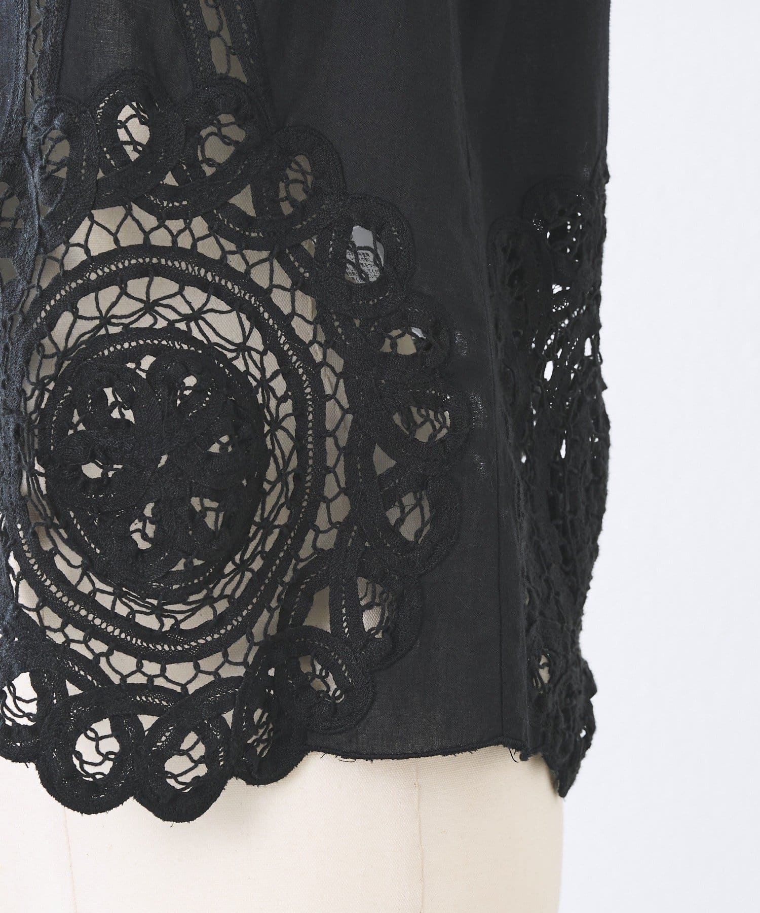 繊細なバテンレースが華やかさを添え、一枚で特別感のあるスタイリングが完成します。