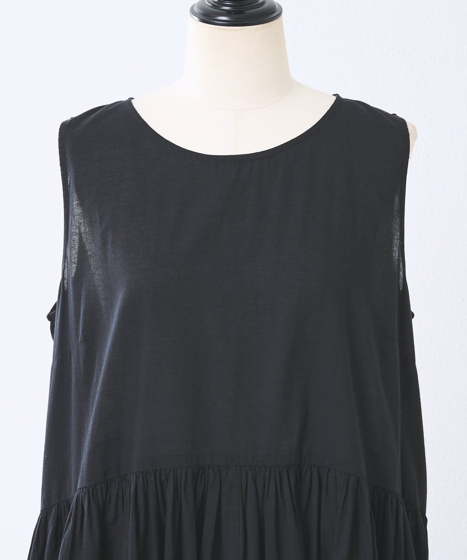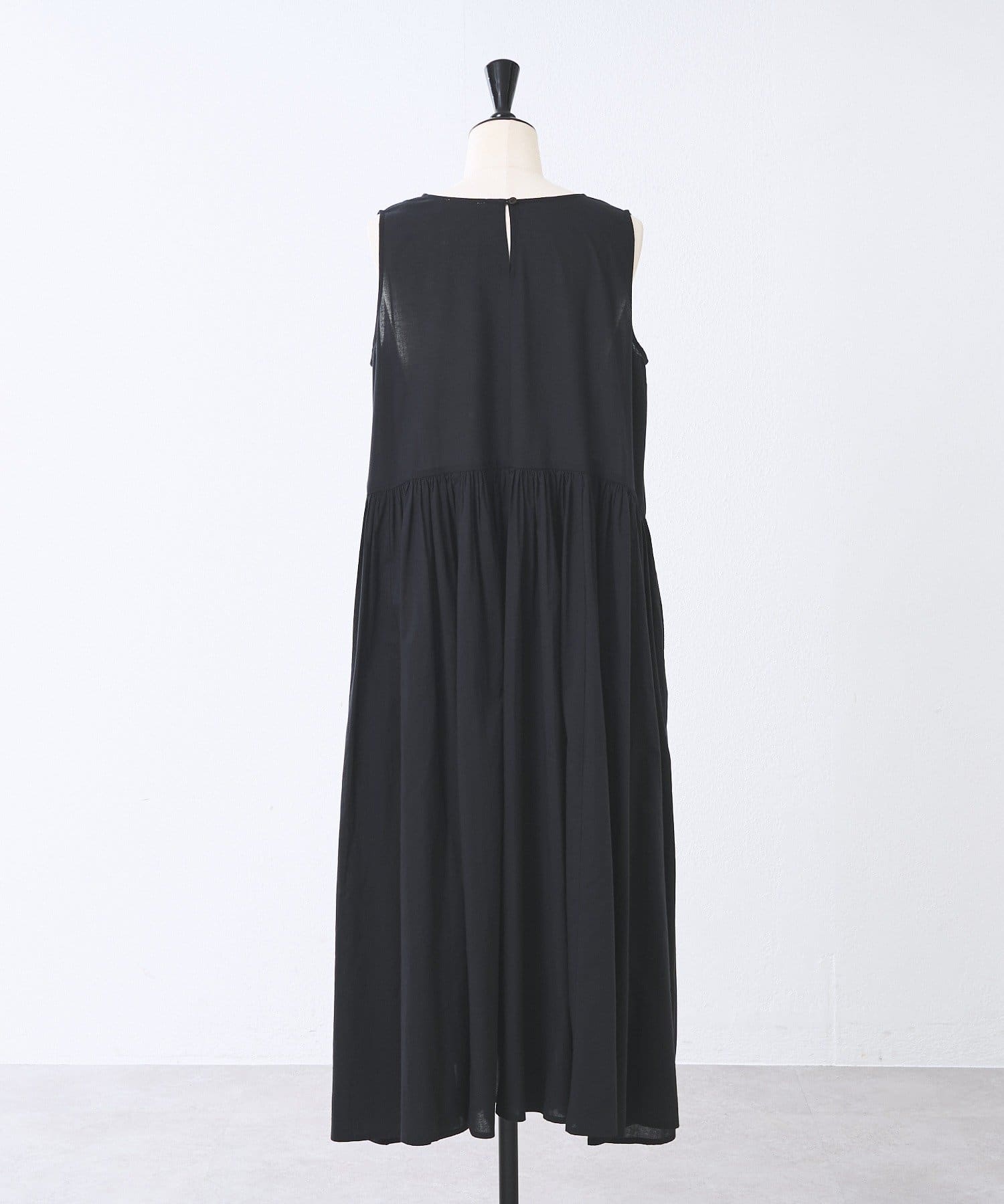 ワンピースはギャザーをたっぷりと寄せ、身体のラインを拾わずリラックスした着心地も魅力です。
