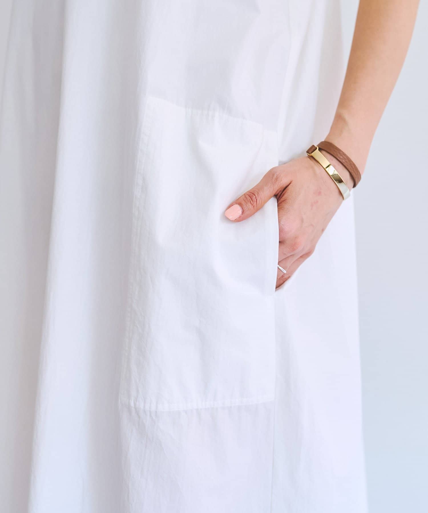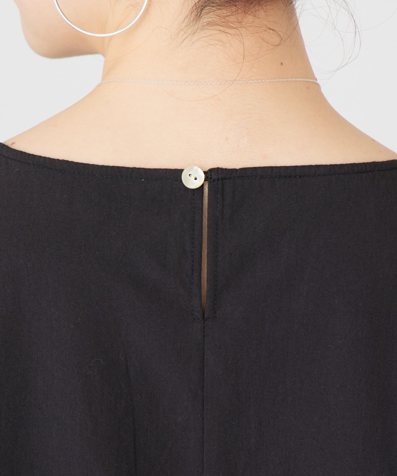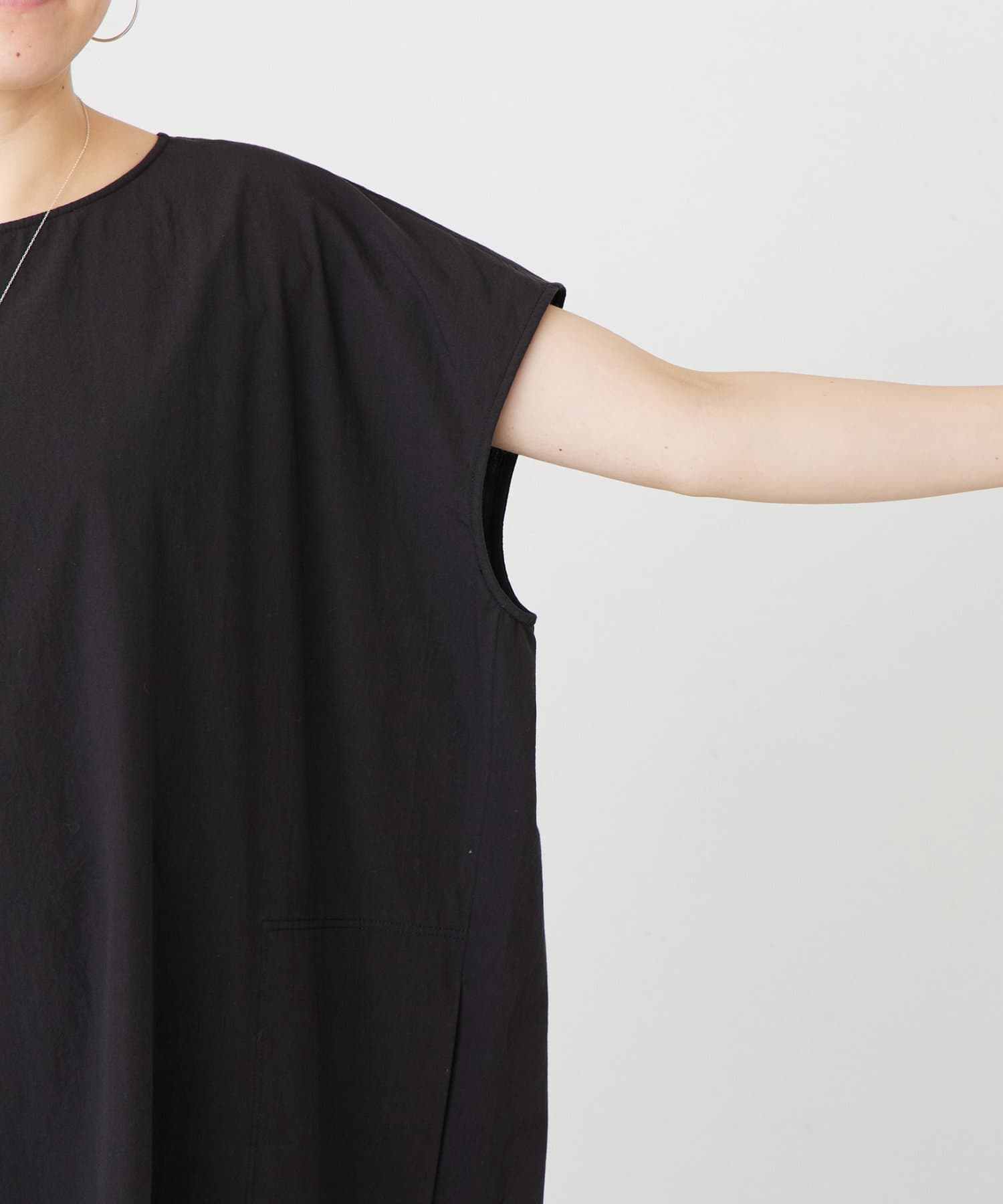 身幅はたっぷりとしたシルエットで、程よくハリのある生地が自然に体型をカバー。