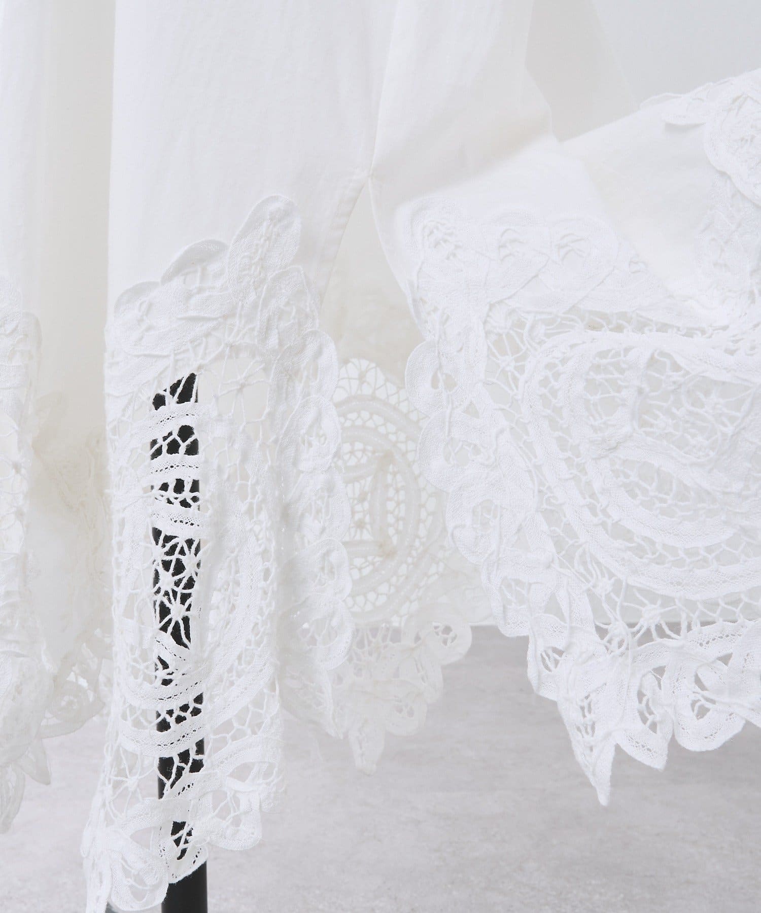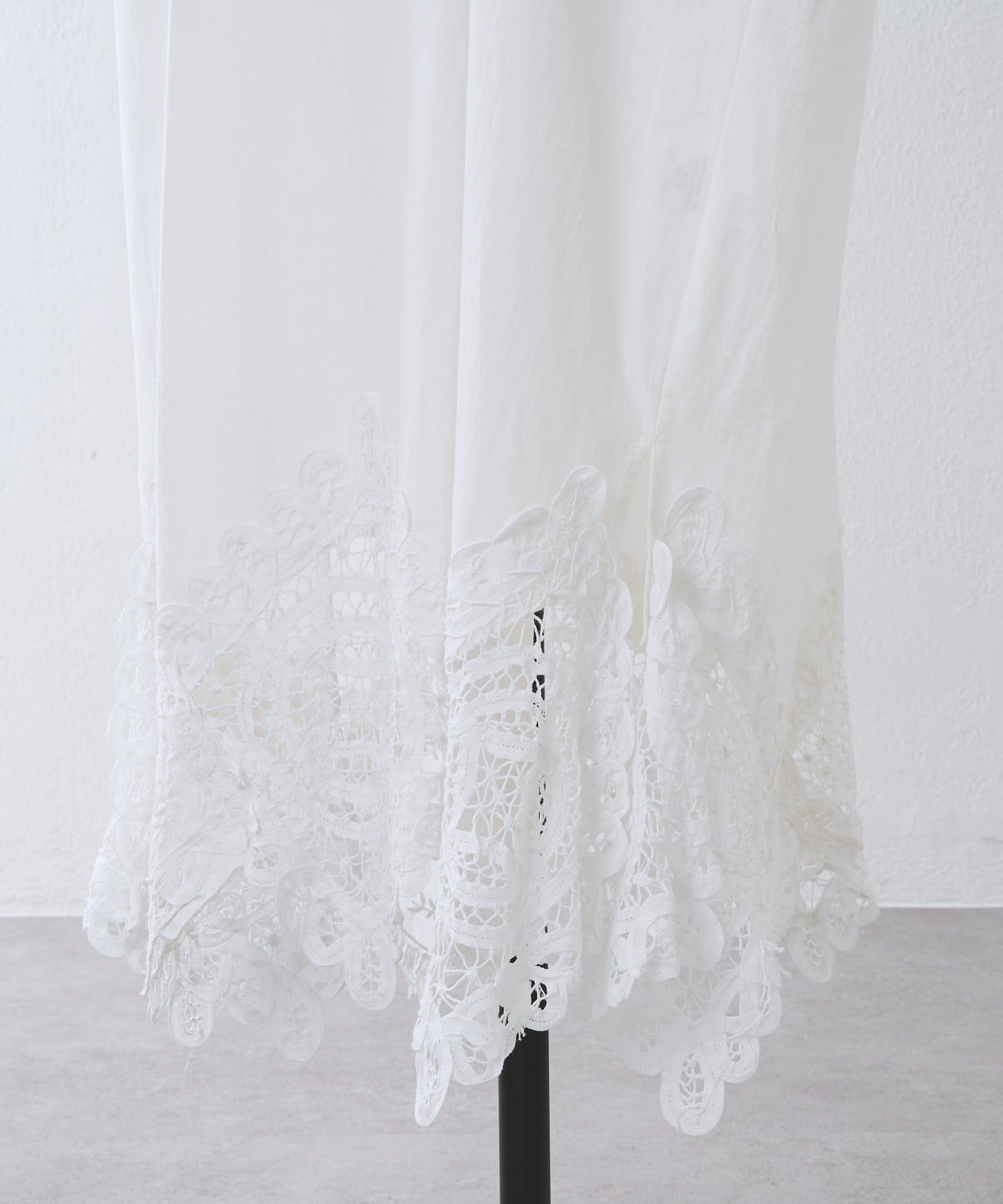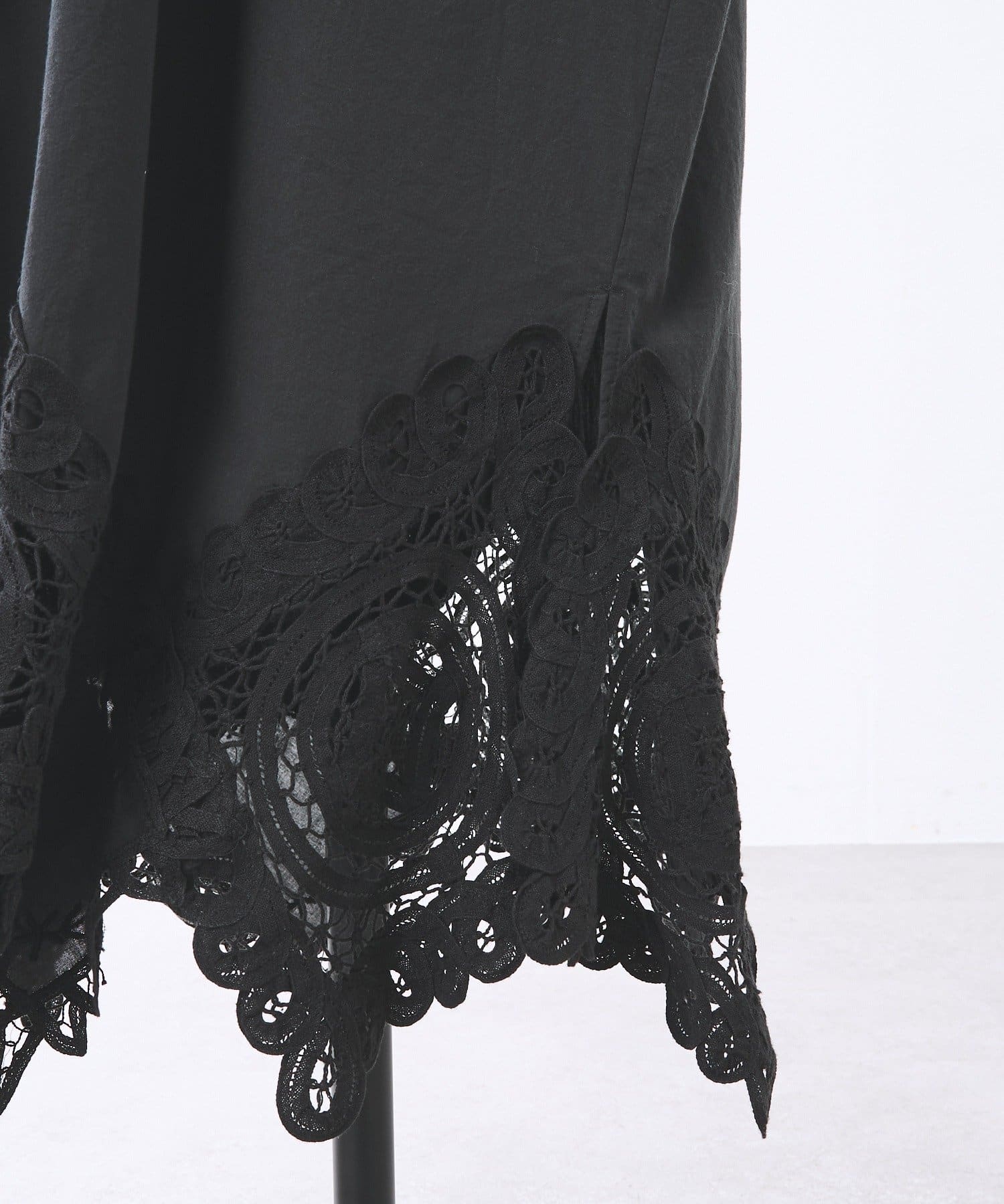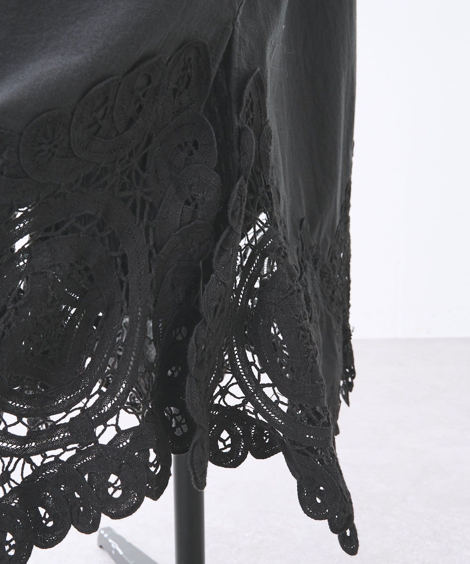 裾にあしらったバテンレースがアクセントになった、シンプルながら一枚で華やかに決まるワンピース。