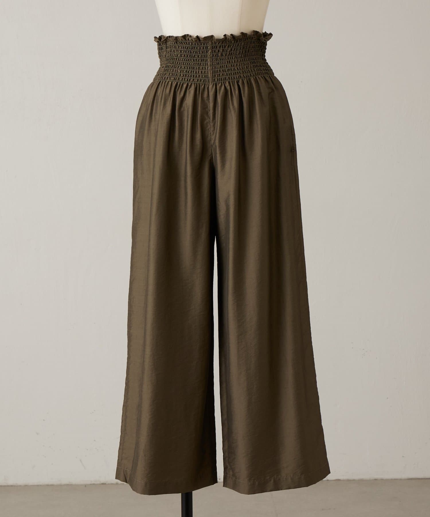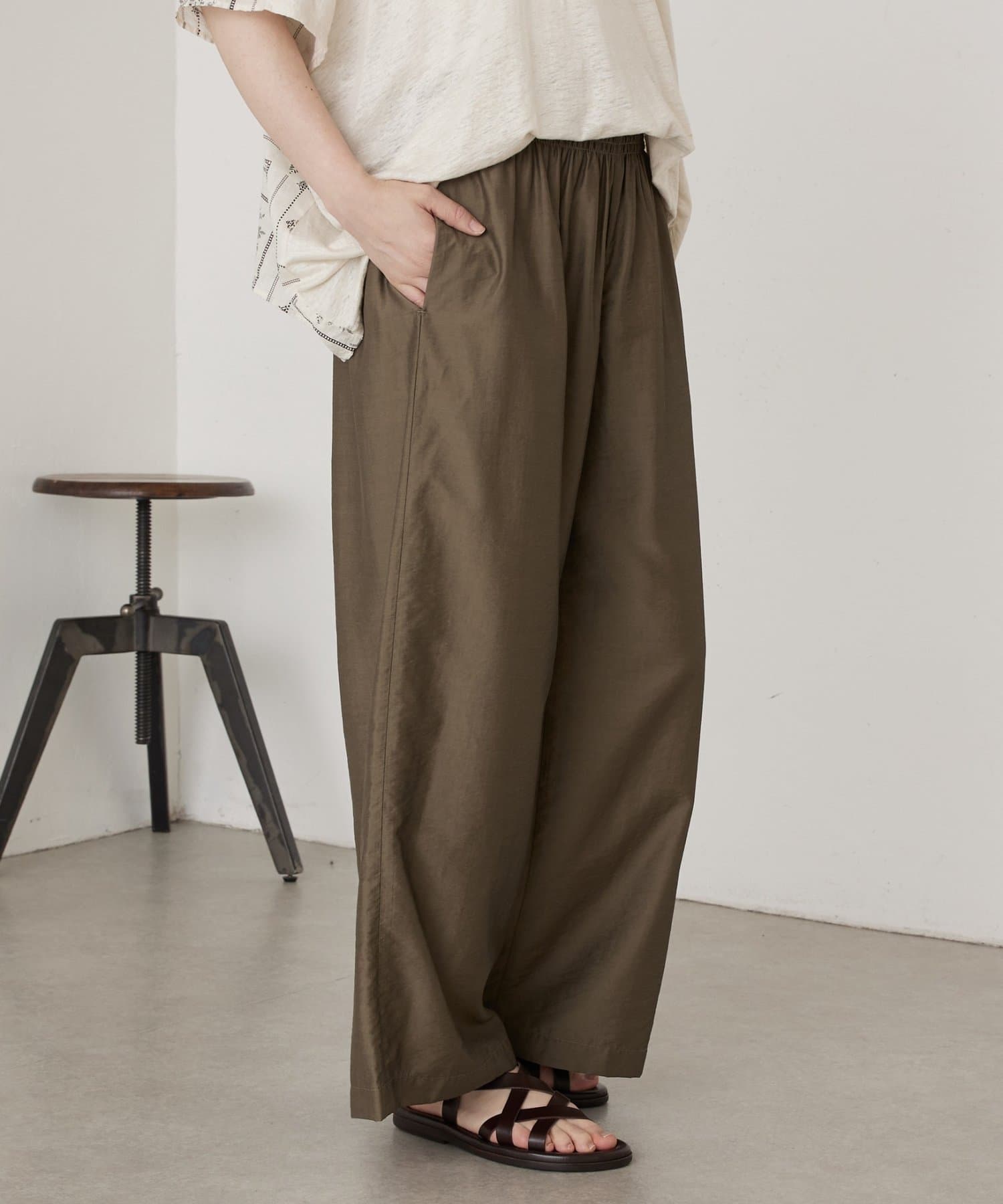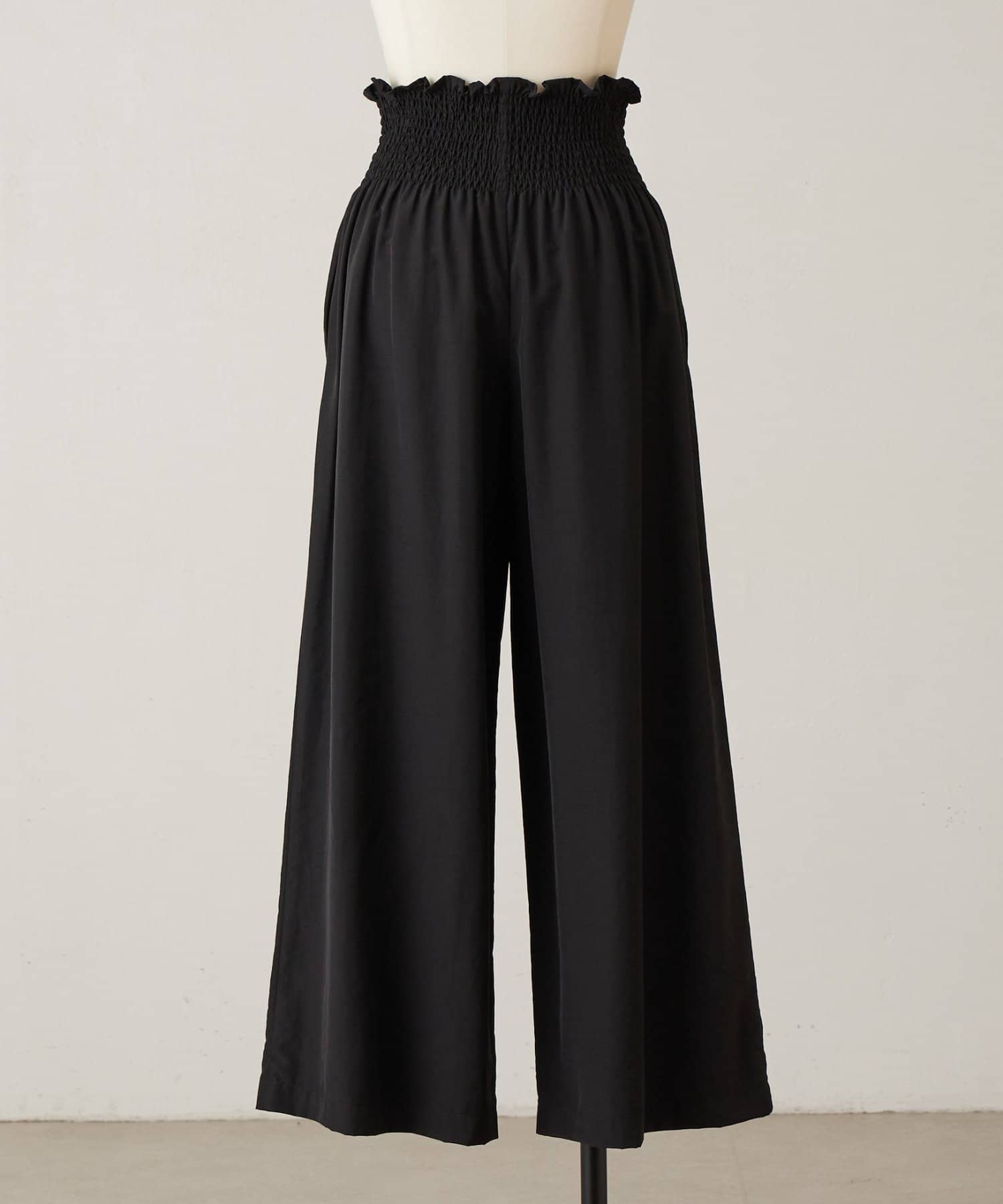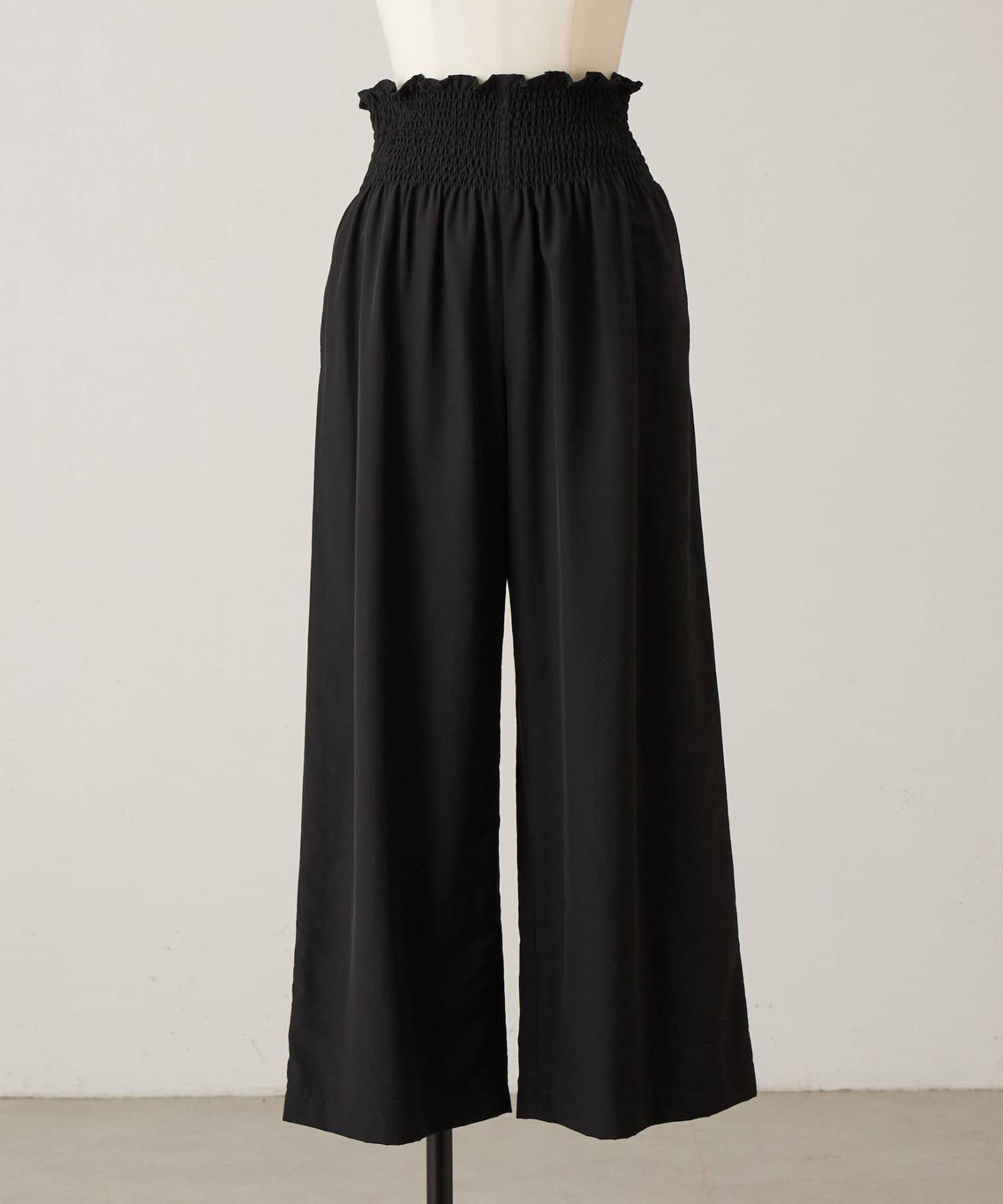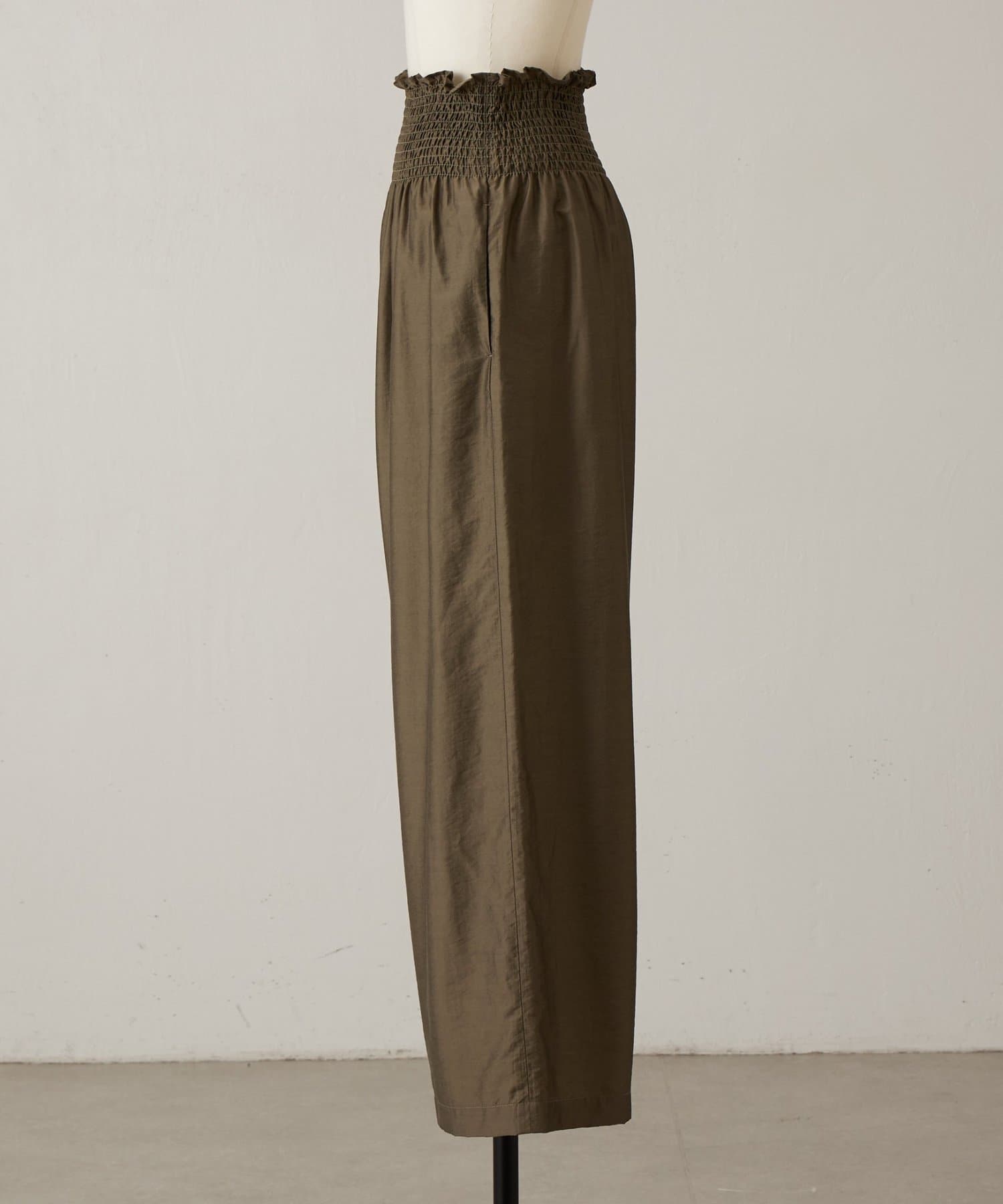 ウエストにシャーリング加工を施した、ストレスフリーな穿き心地のワイドパンツ。