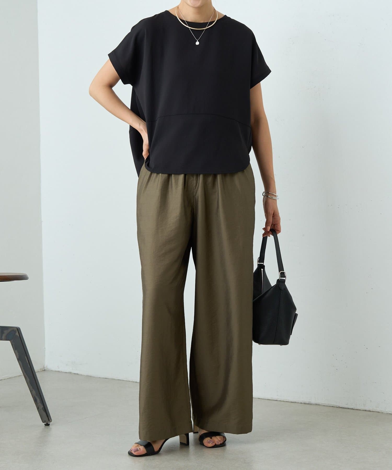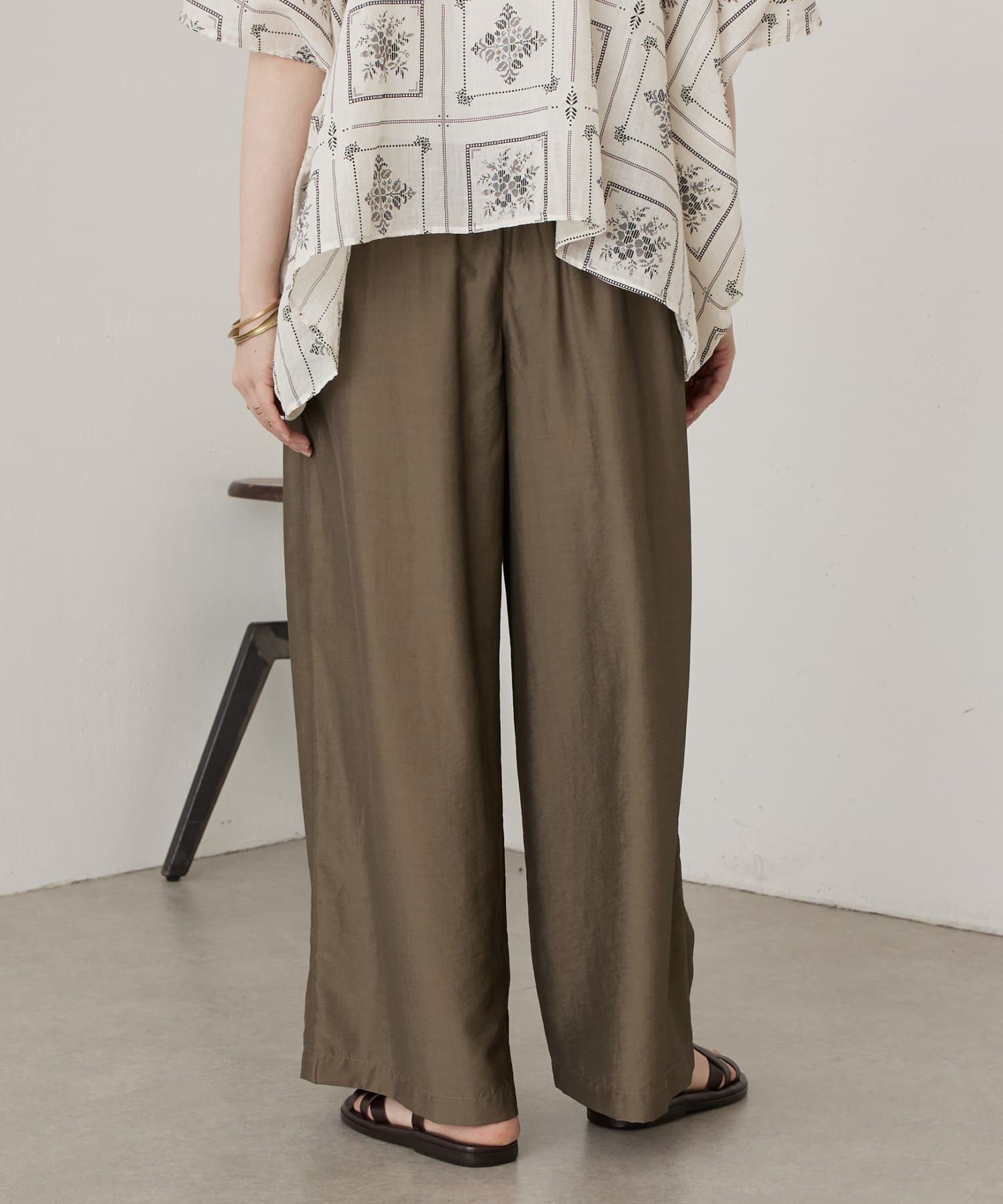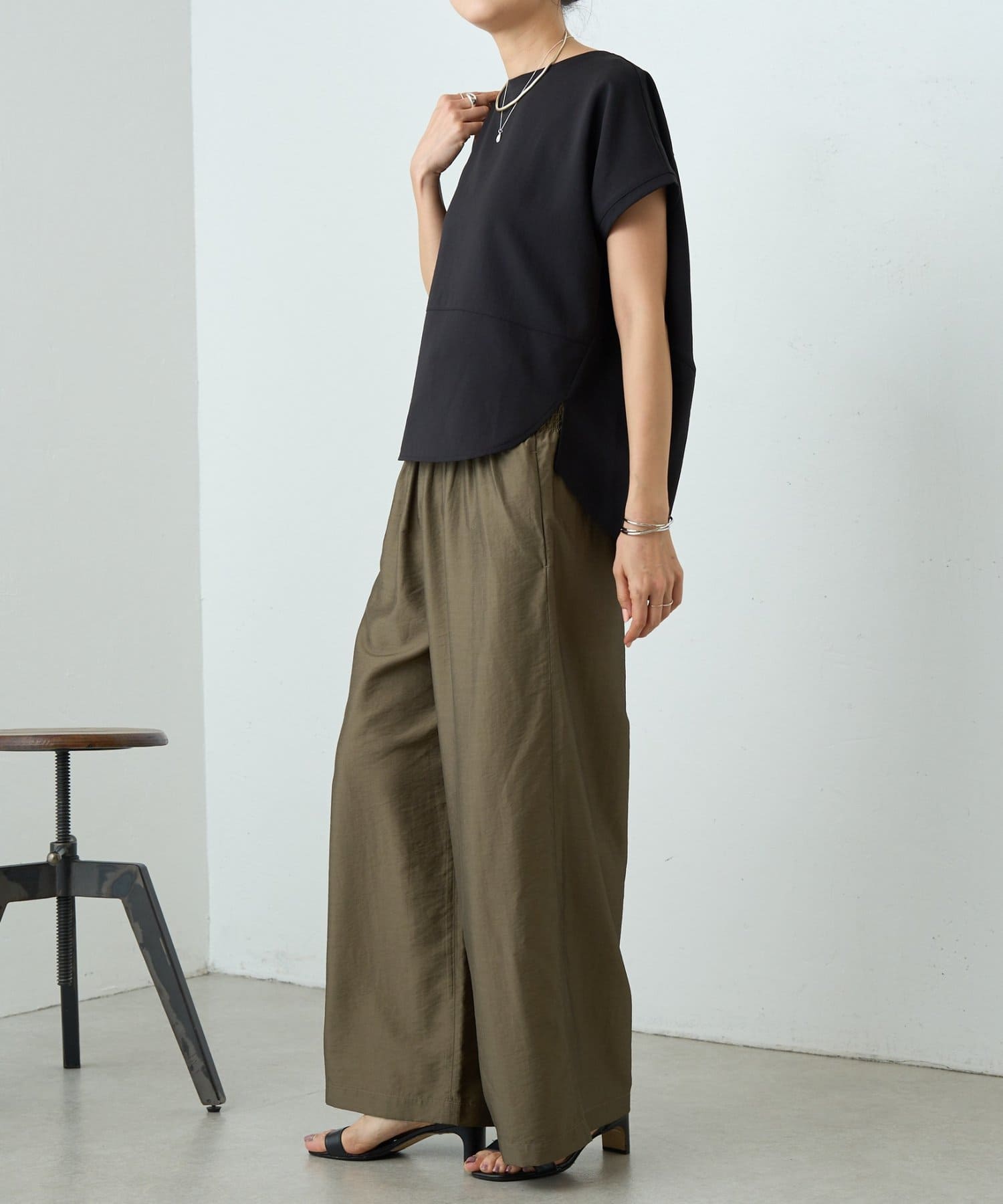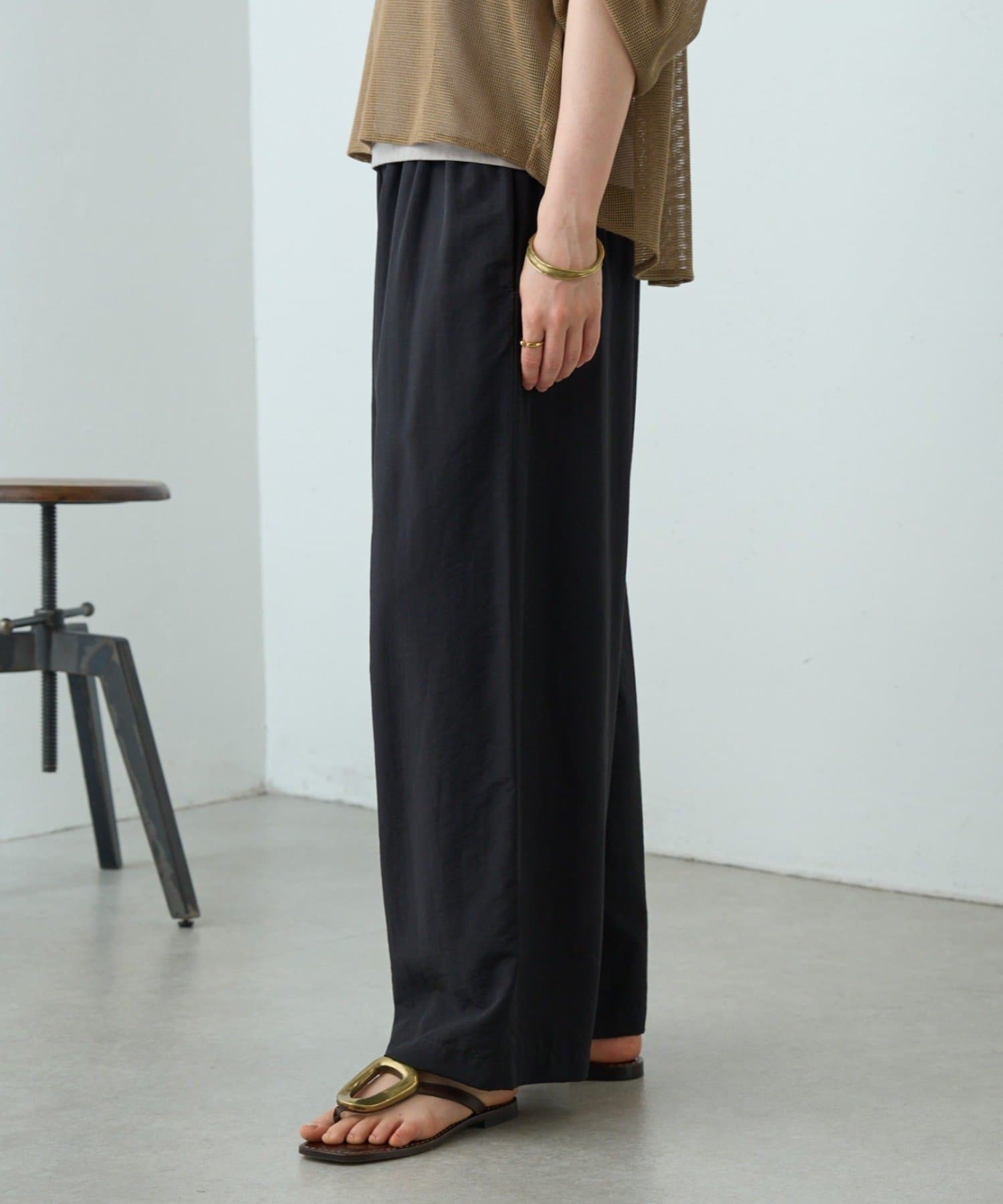 ウエストにシャーリング加工を施した、ストレスフリーな穿き心地のワイドパンツ。