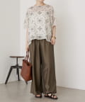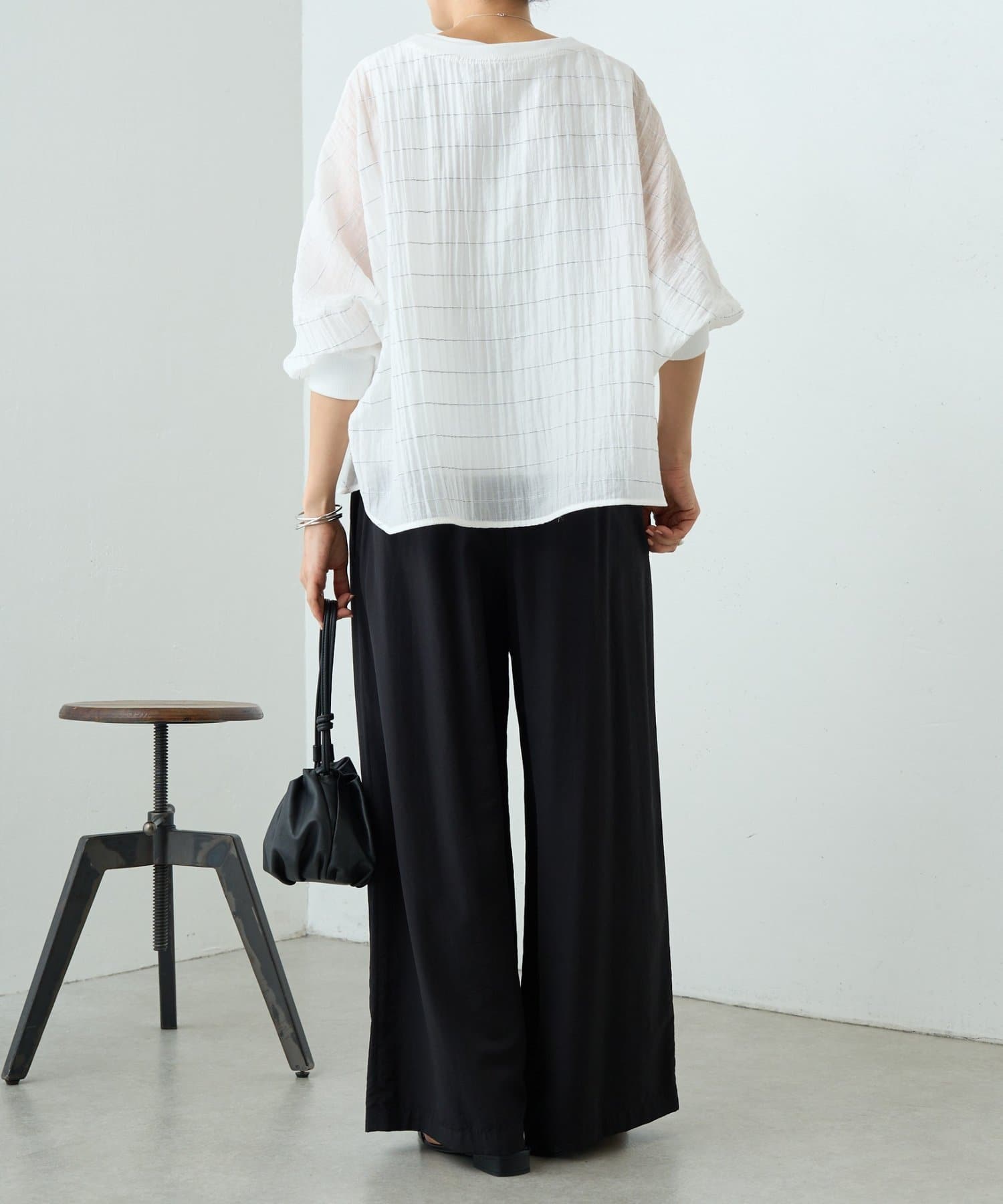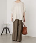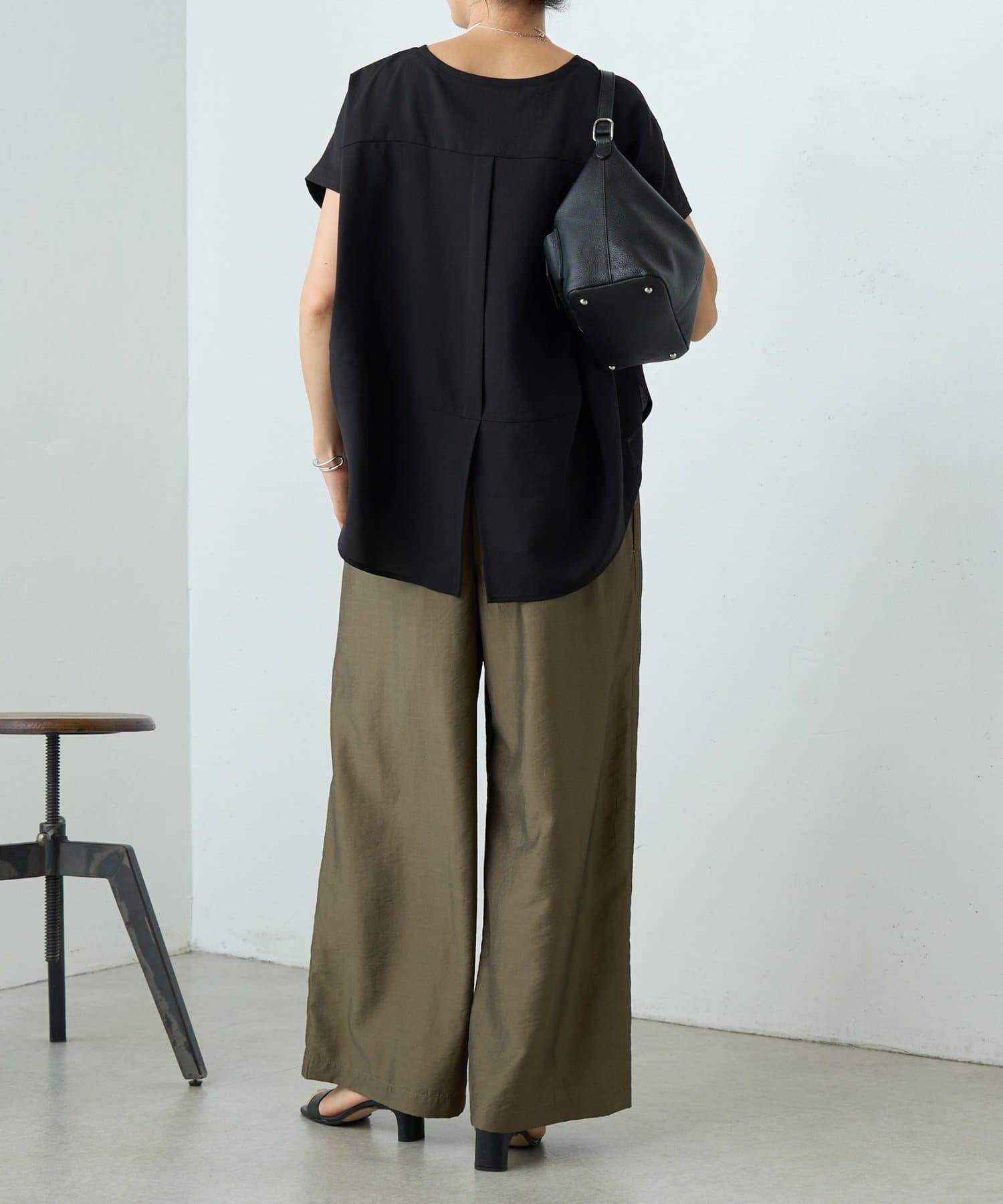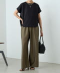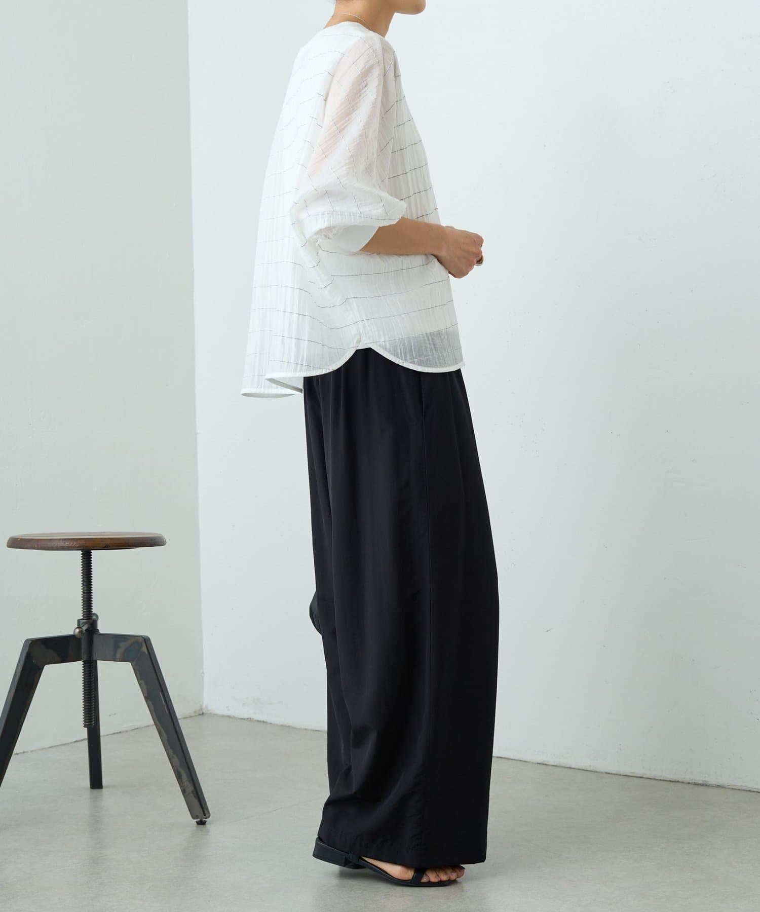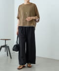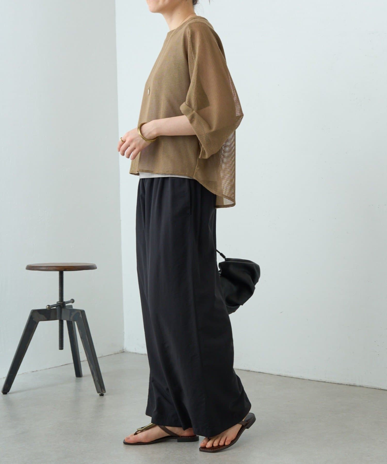 ウエストにシャーリング加工を施した、ストレスフリーな穿き心地のワイドパンツ。