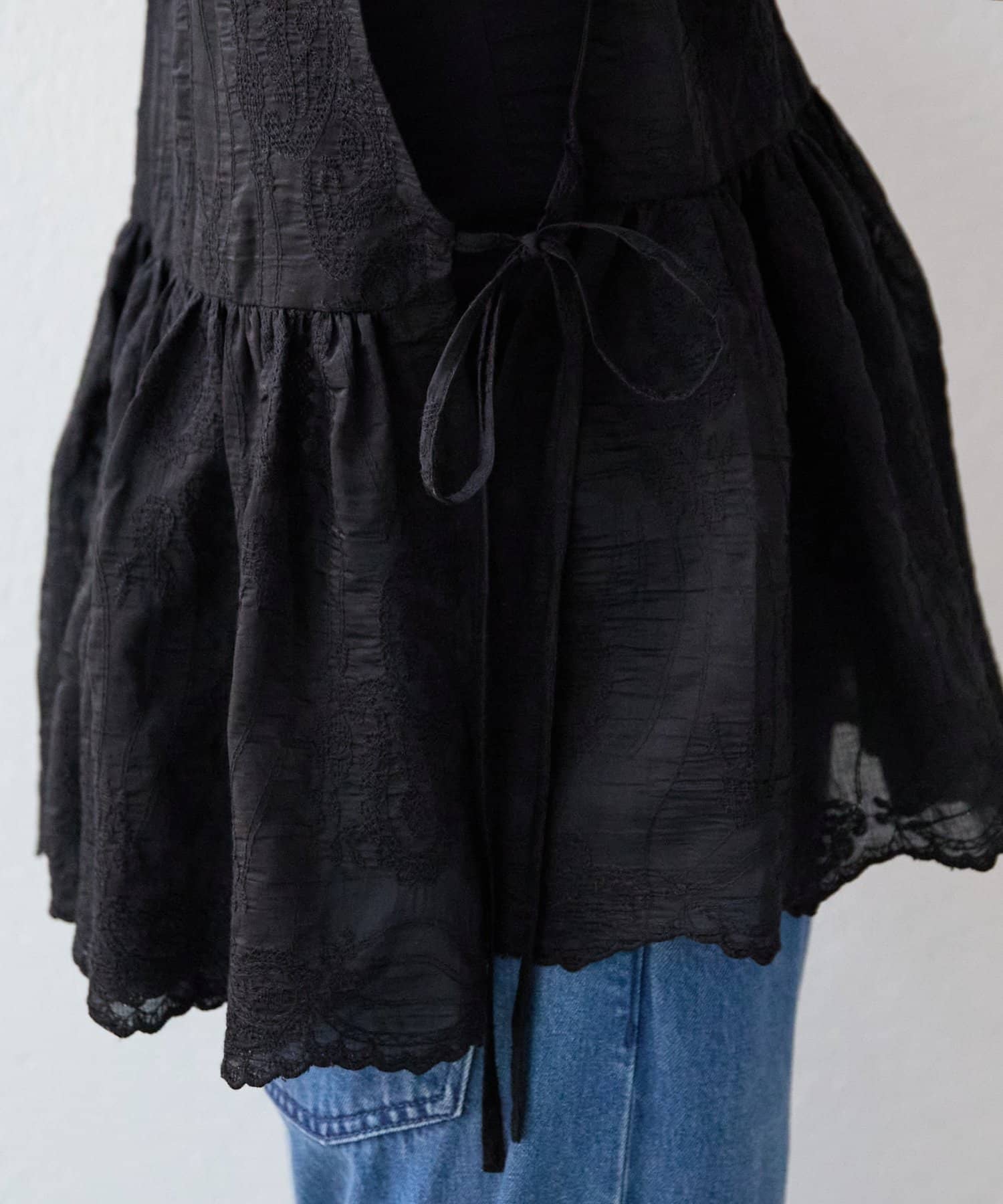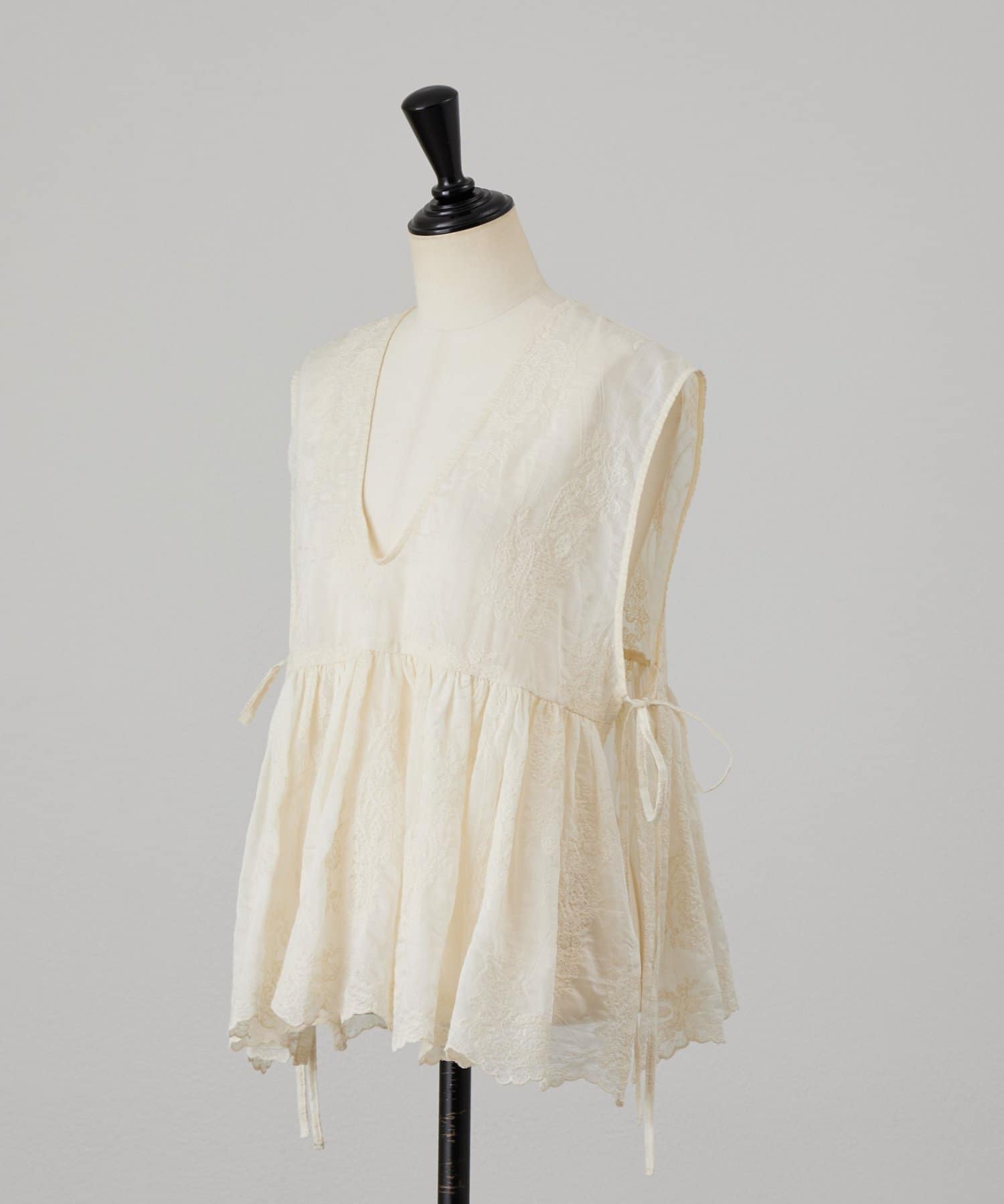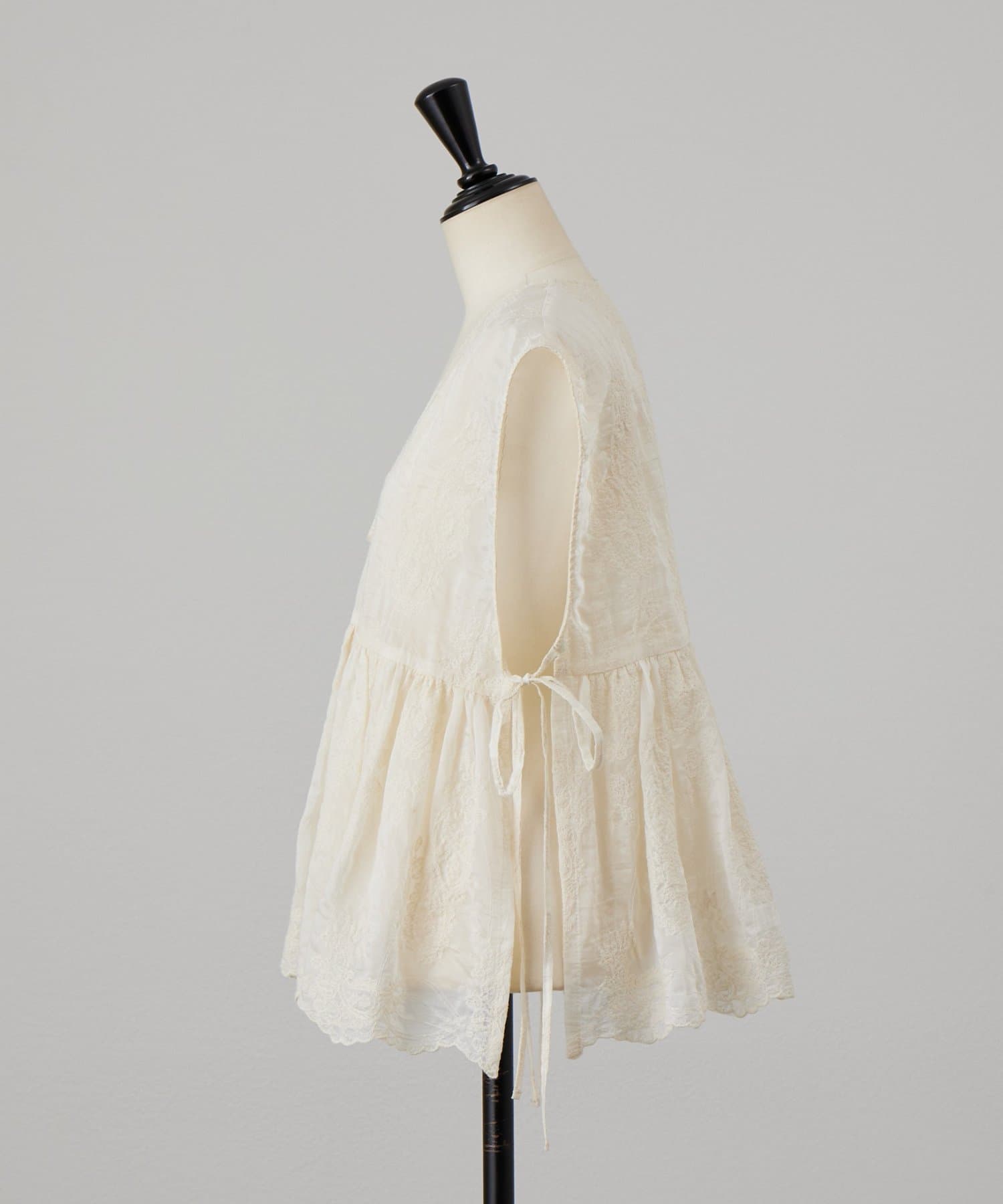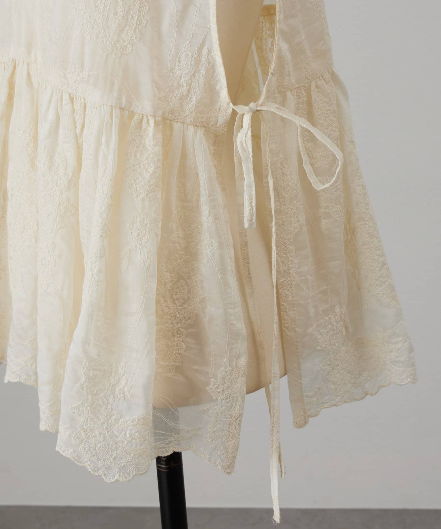 脇は縫い合わせずにサイドリボンを施し、軽やかに仕上げています。