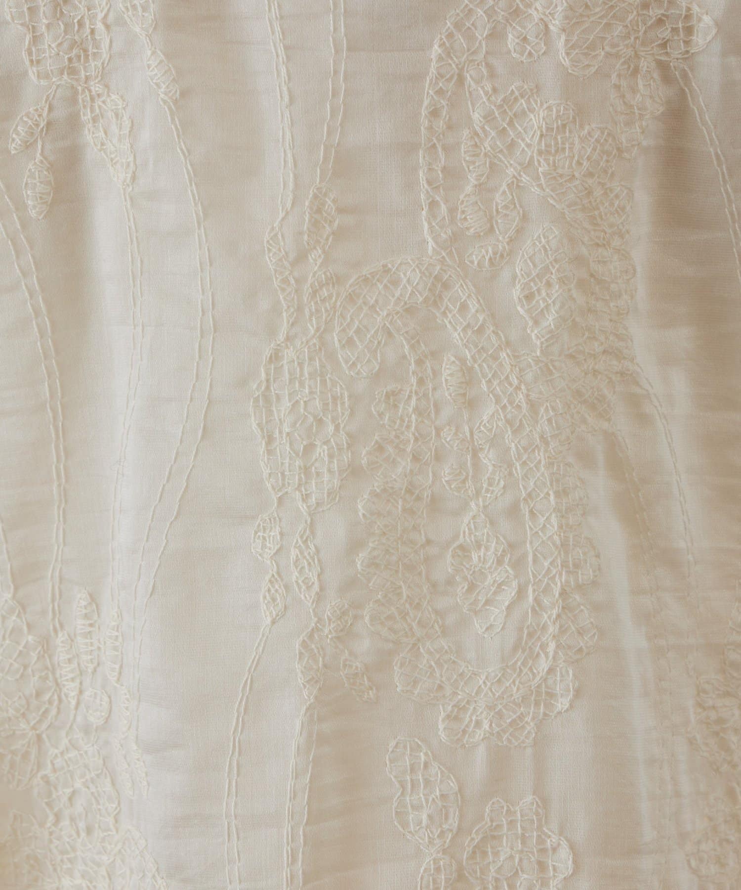 薄手ながらハリのある素材を使用し、ペイズリー模様が甘さを抑えた大人の華やかさを演出。