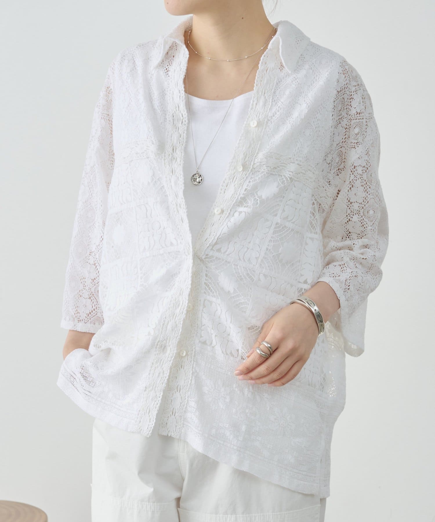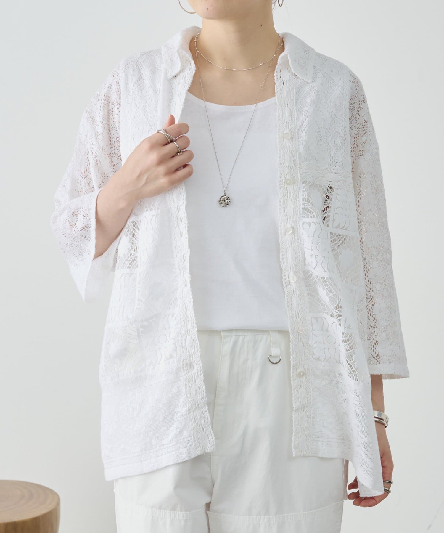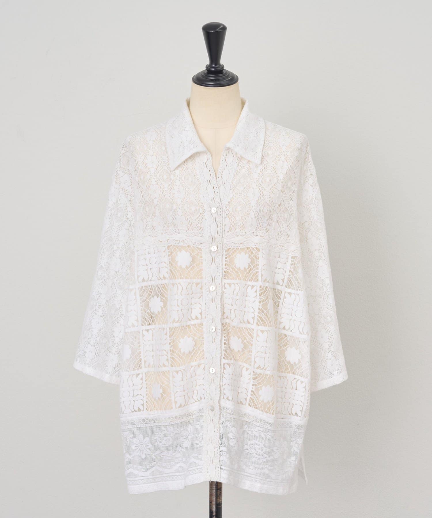 TOP > BEARDSLEY > レディース > トップス > シャツ/ブラウス(ボタン) > 《4/2(木)18:00予約開始》MIXレースシャツ