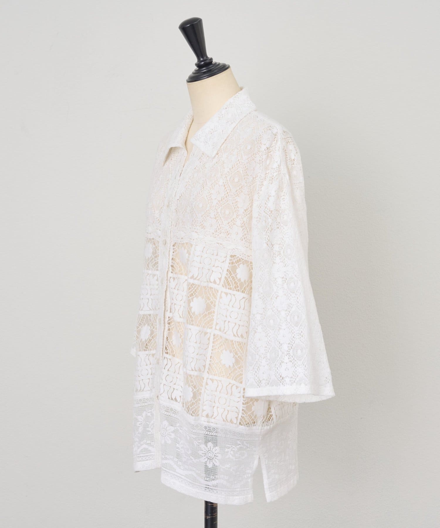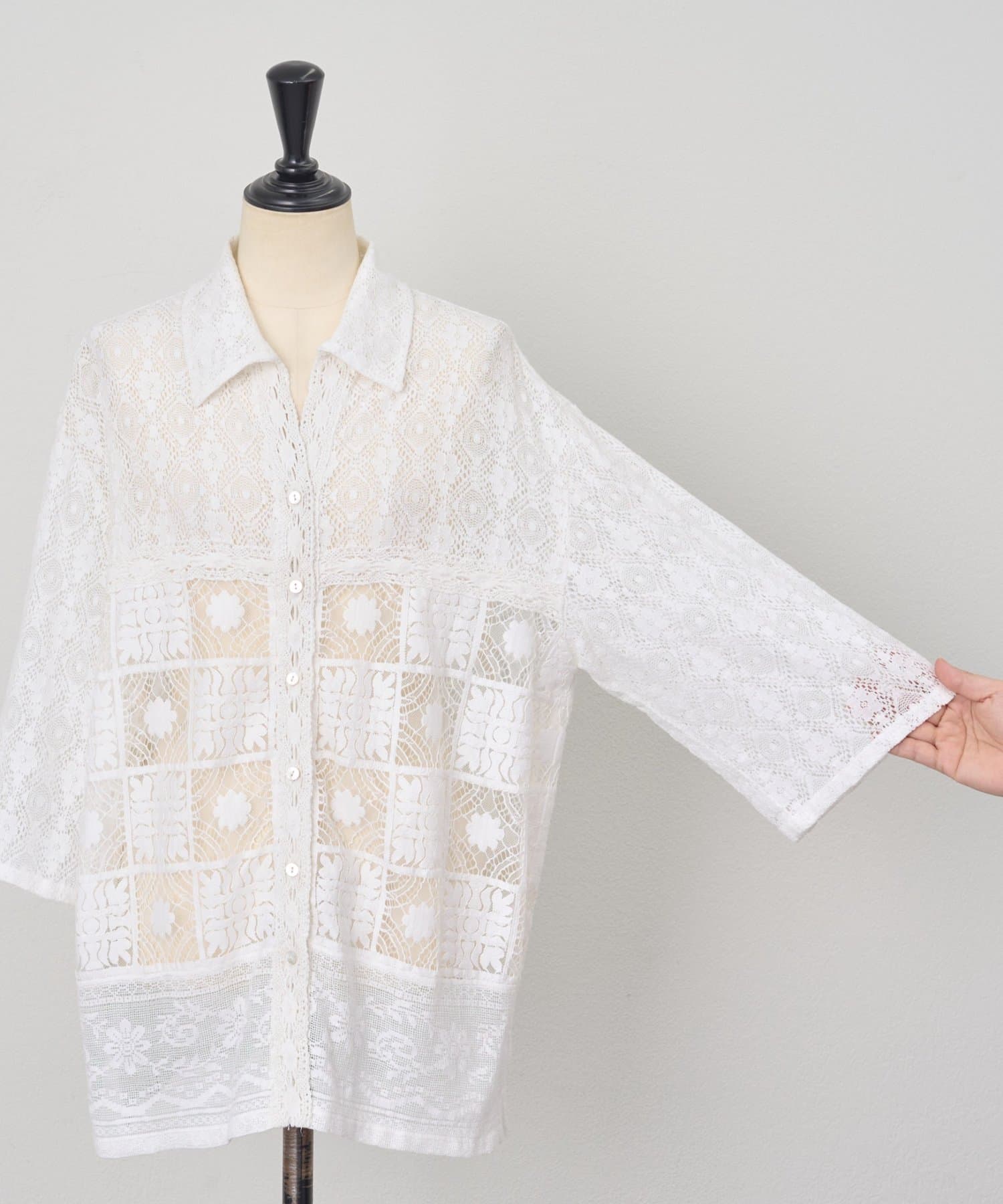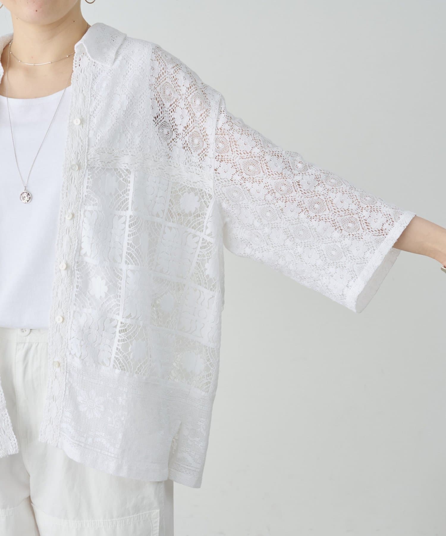 TOP > BEARDSLEY > レディース > トップス > シャツ/ブラウス(ボタン) > 《4/2(木)18:00予約開始》MIXレースシャツ