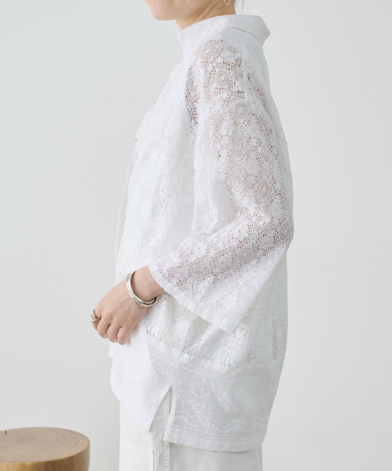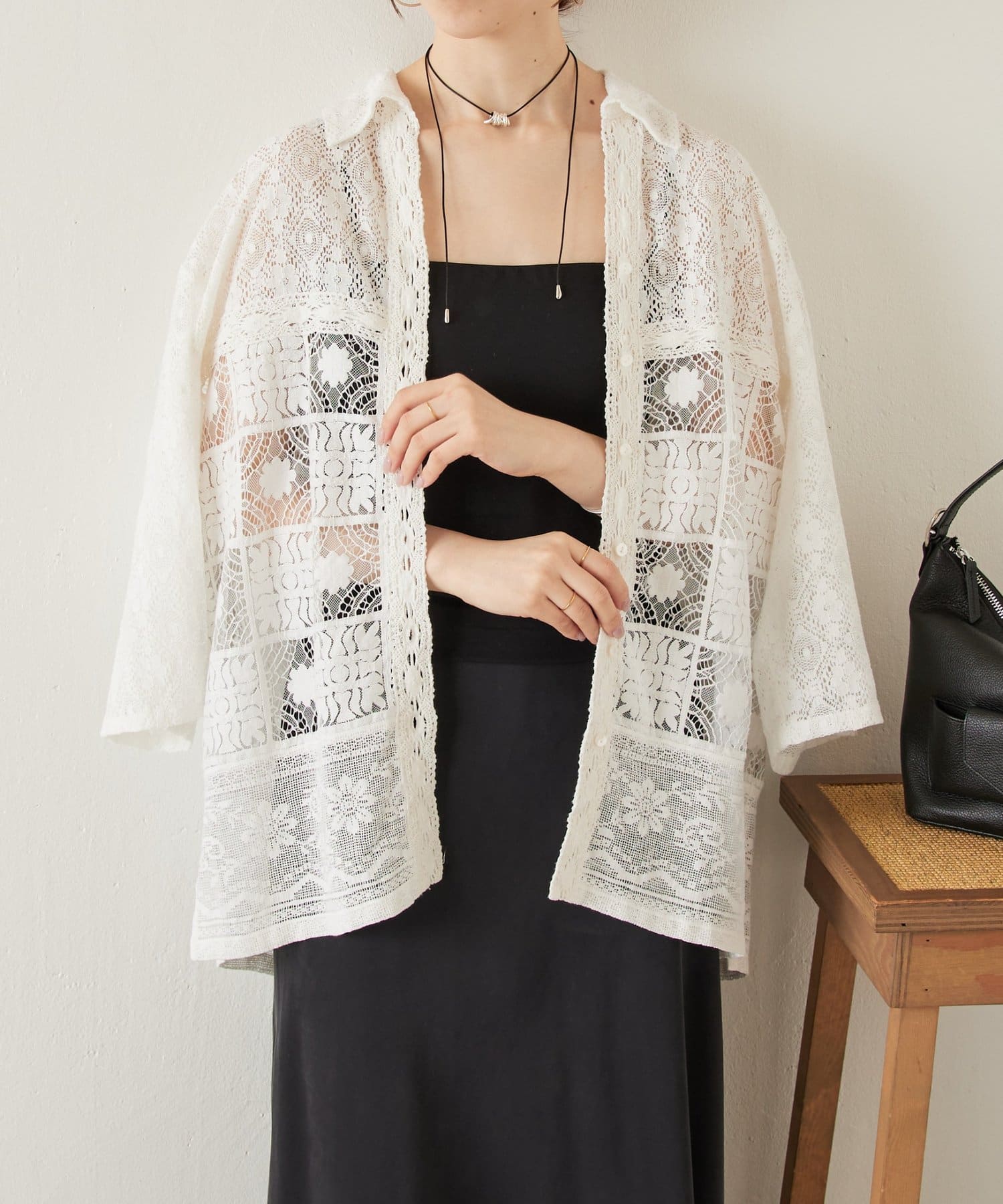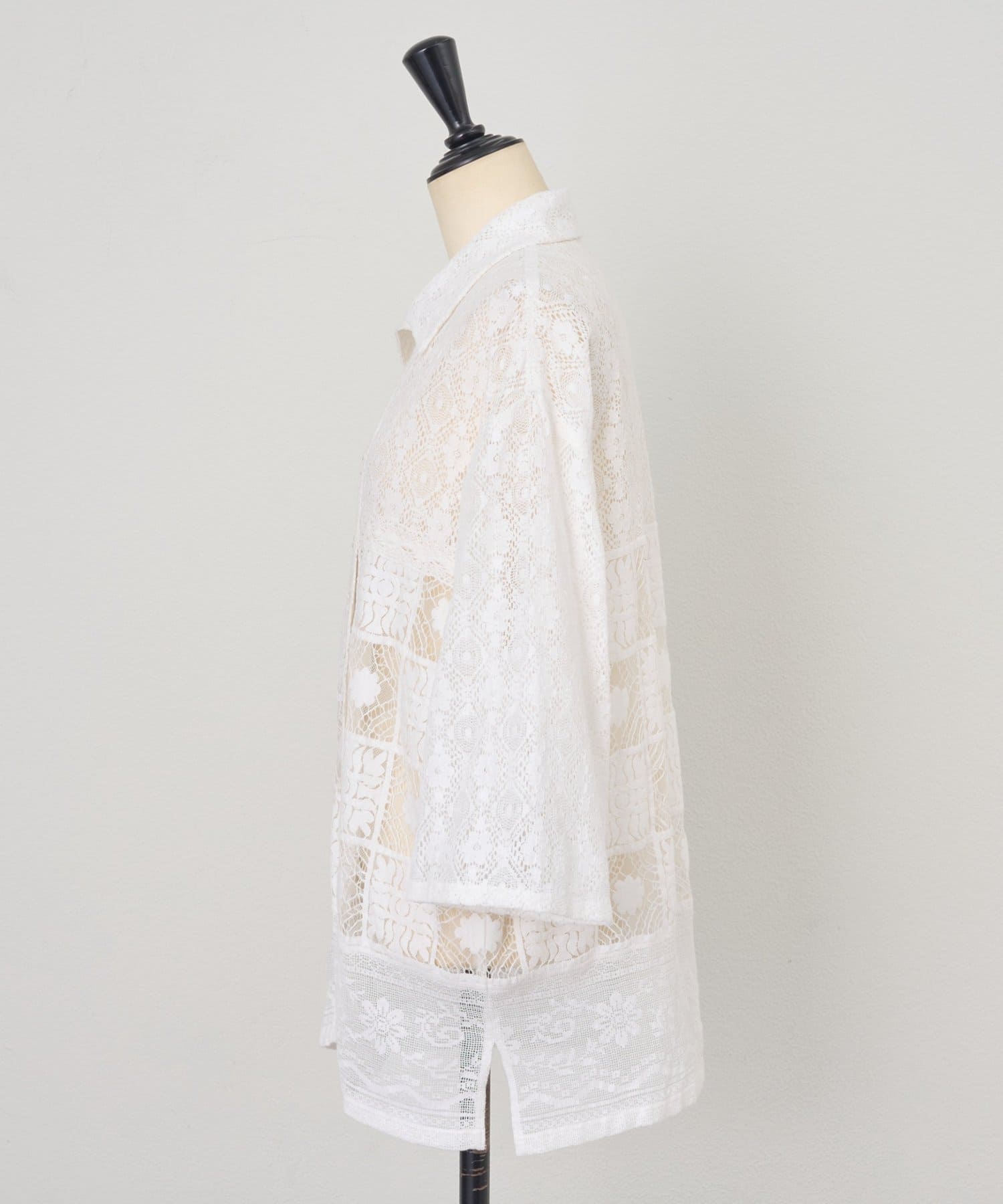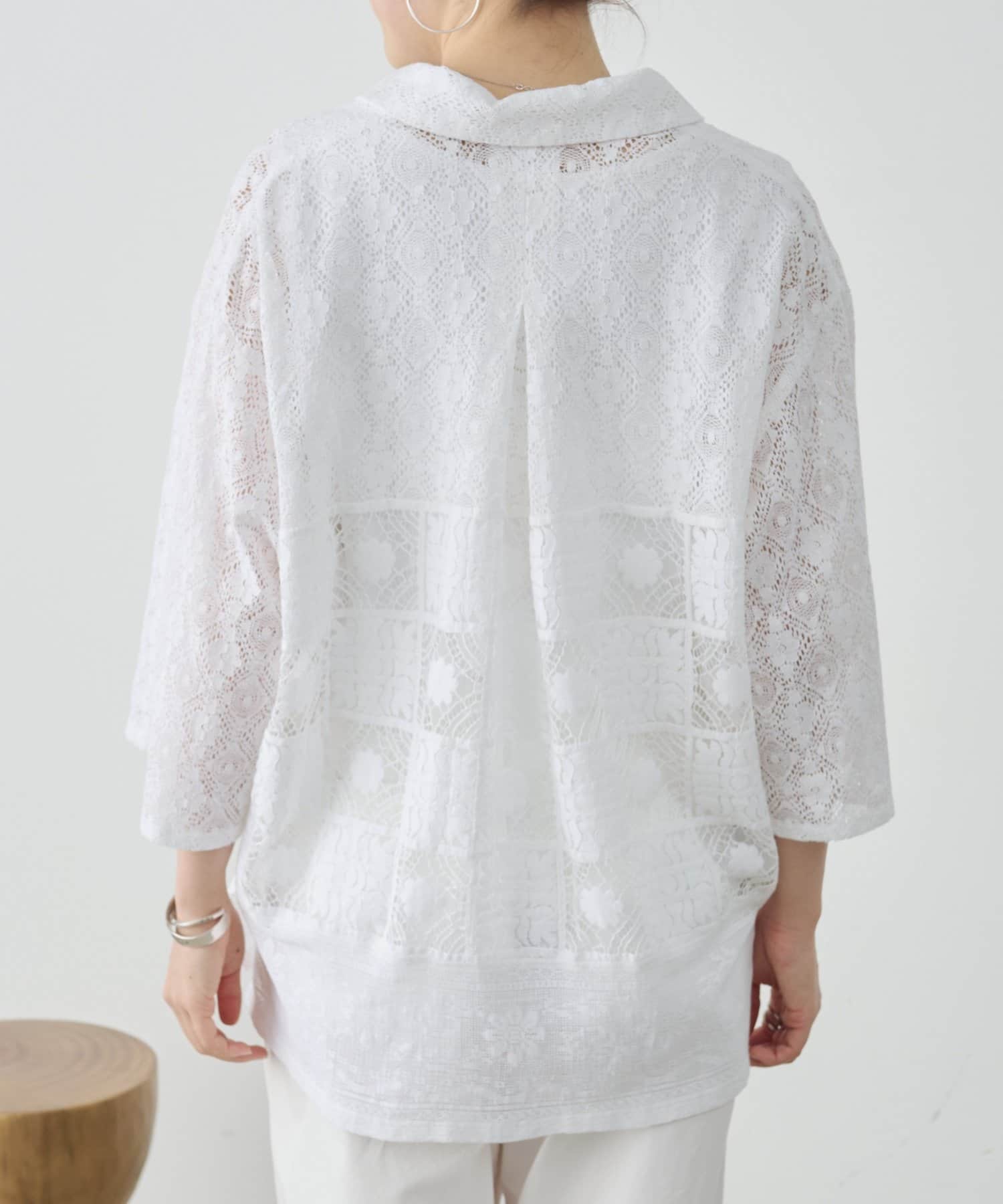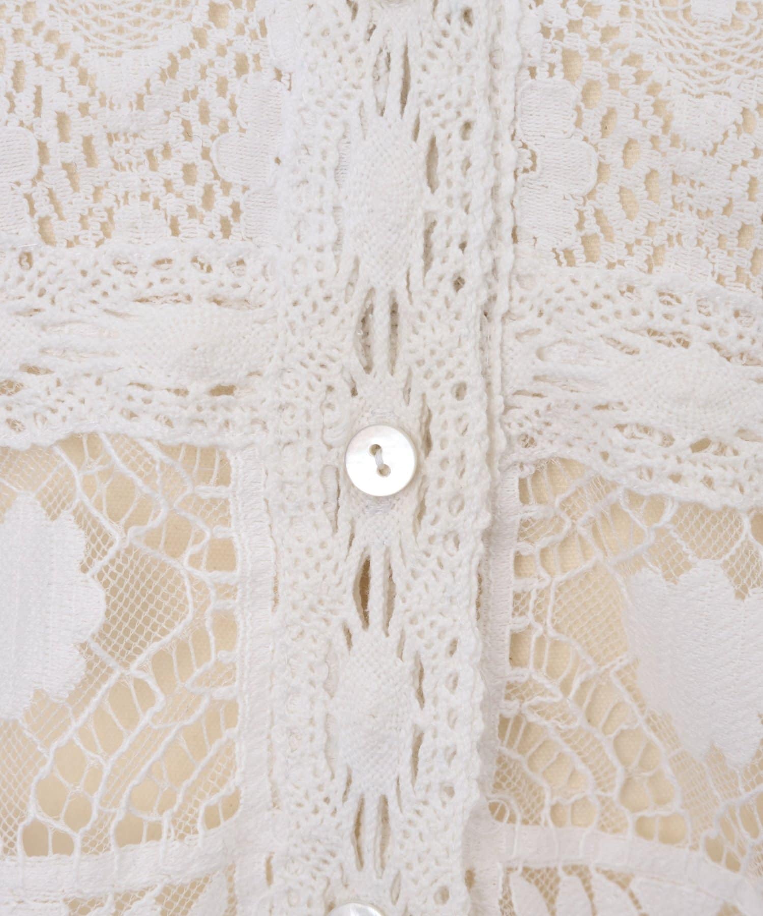 襟元から前立てまで全てレースで仕上げた上品な一枚。