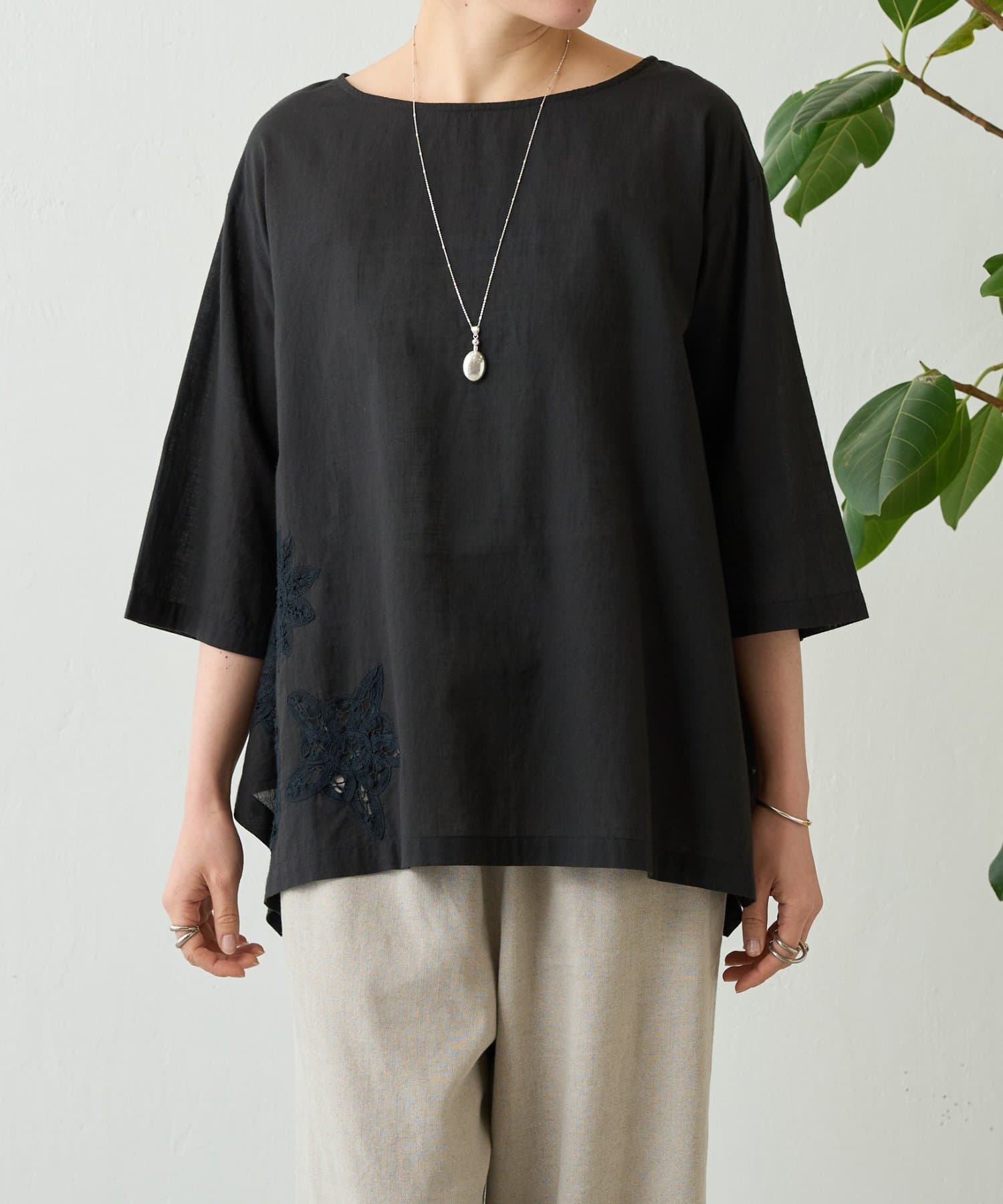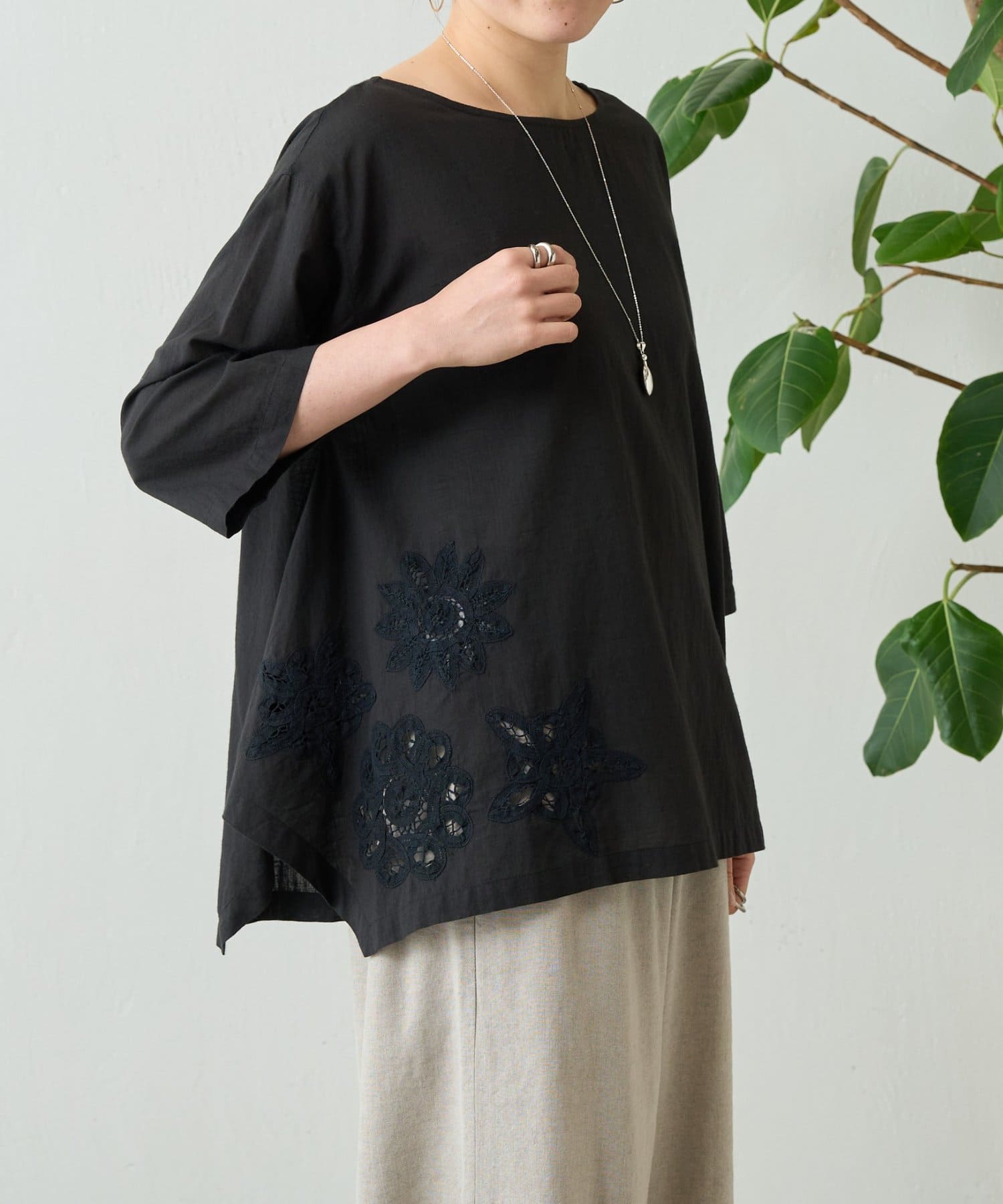 ヘムバテンレースブラウス