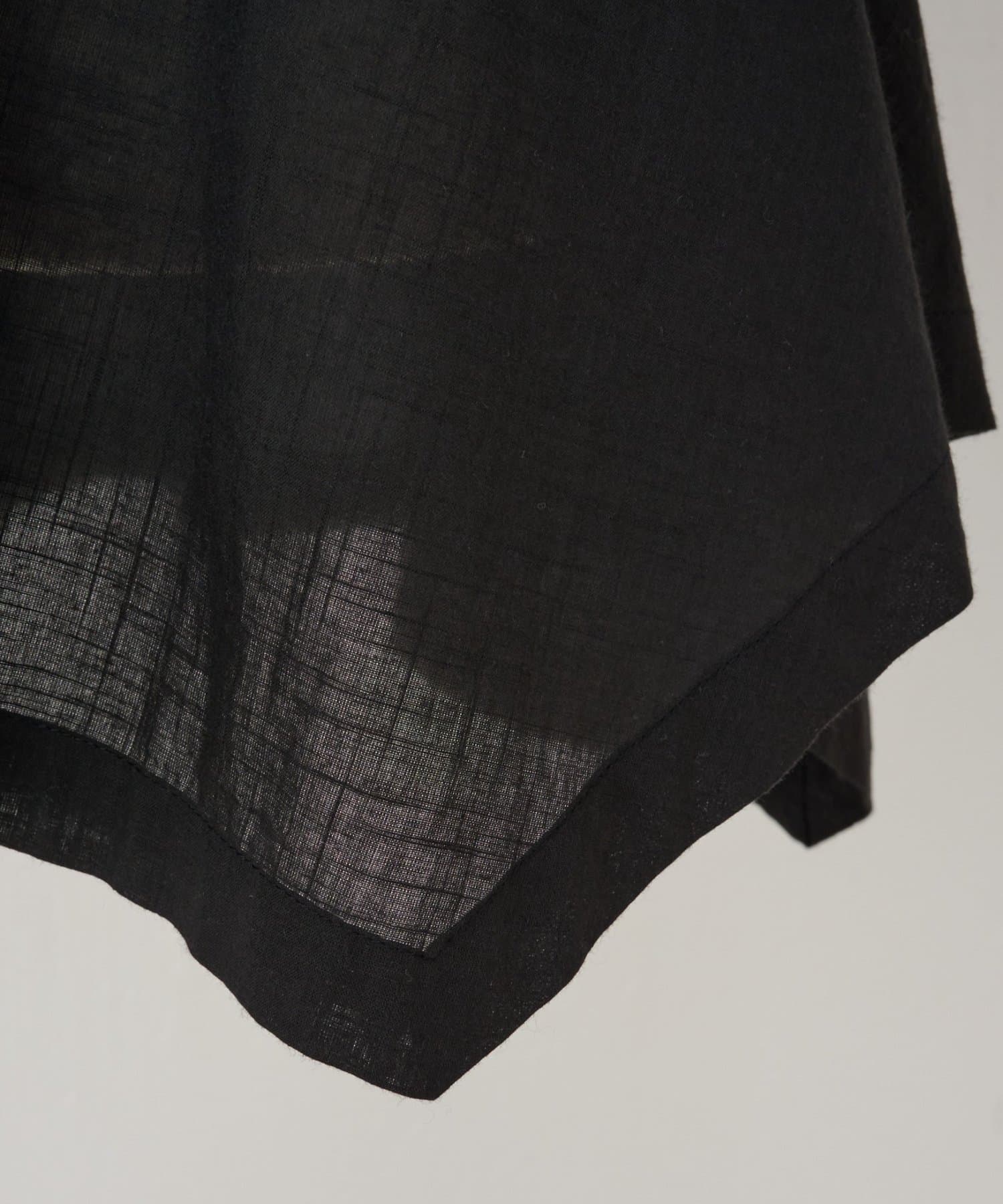 裾に広がりのあるフレアシルエットで、シンプルながらも存在感のある一枚です。