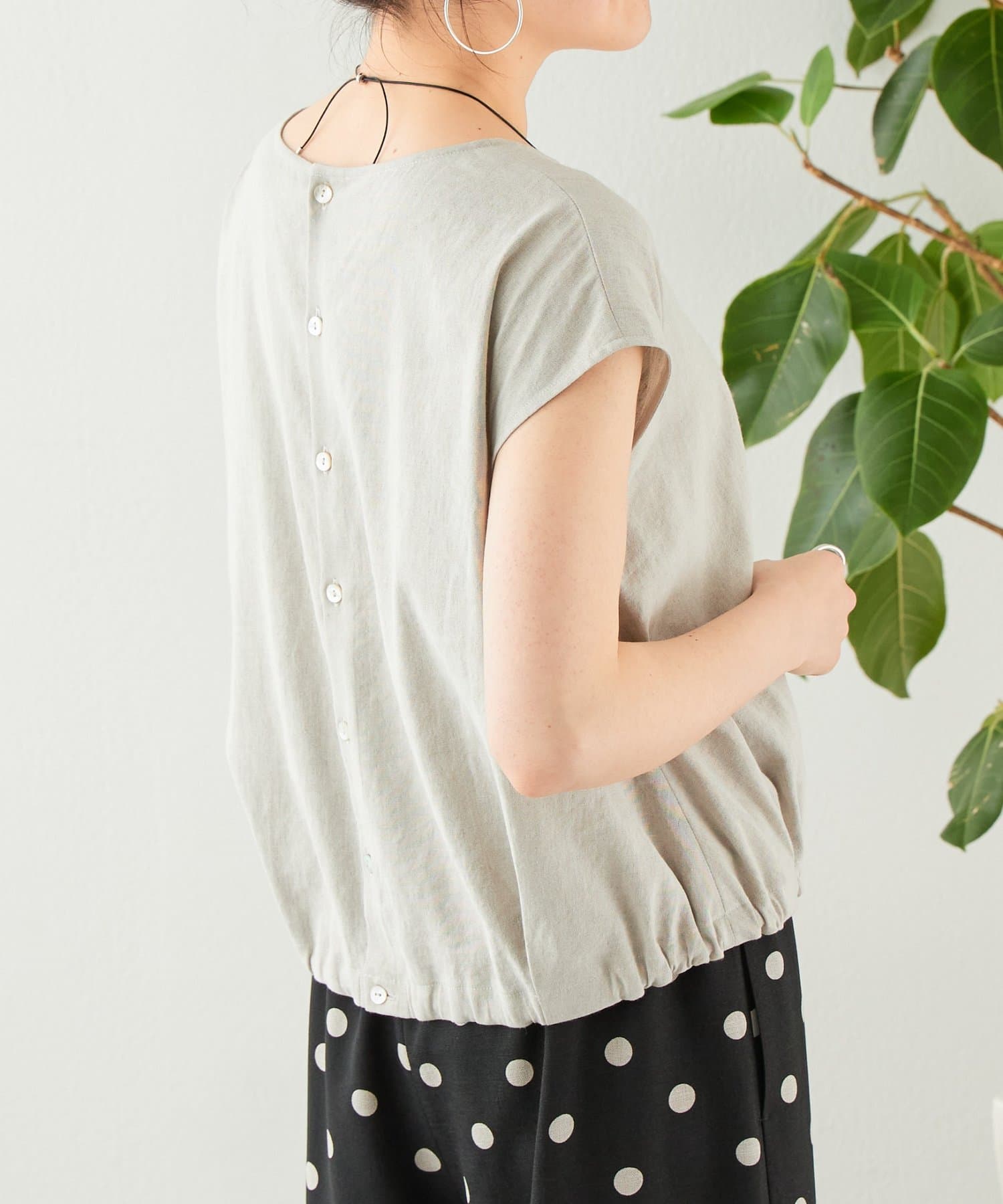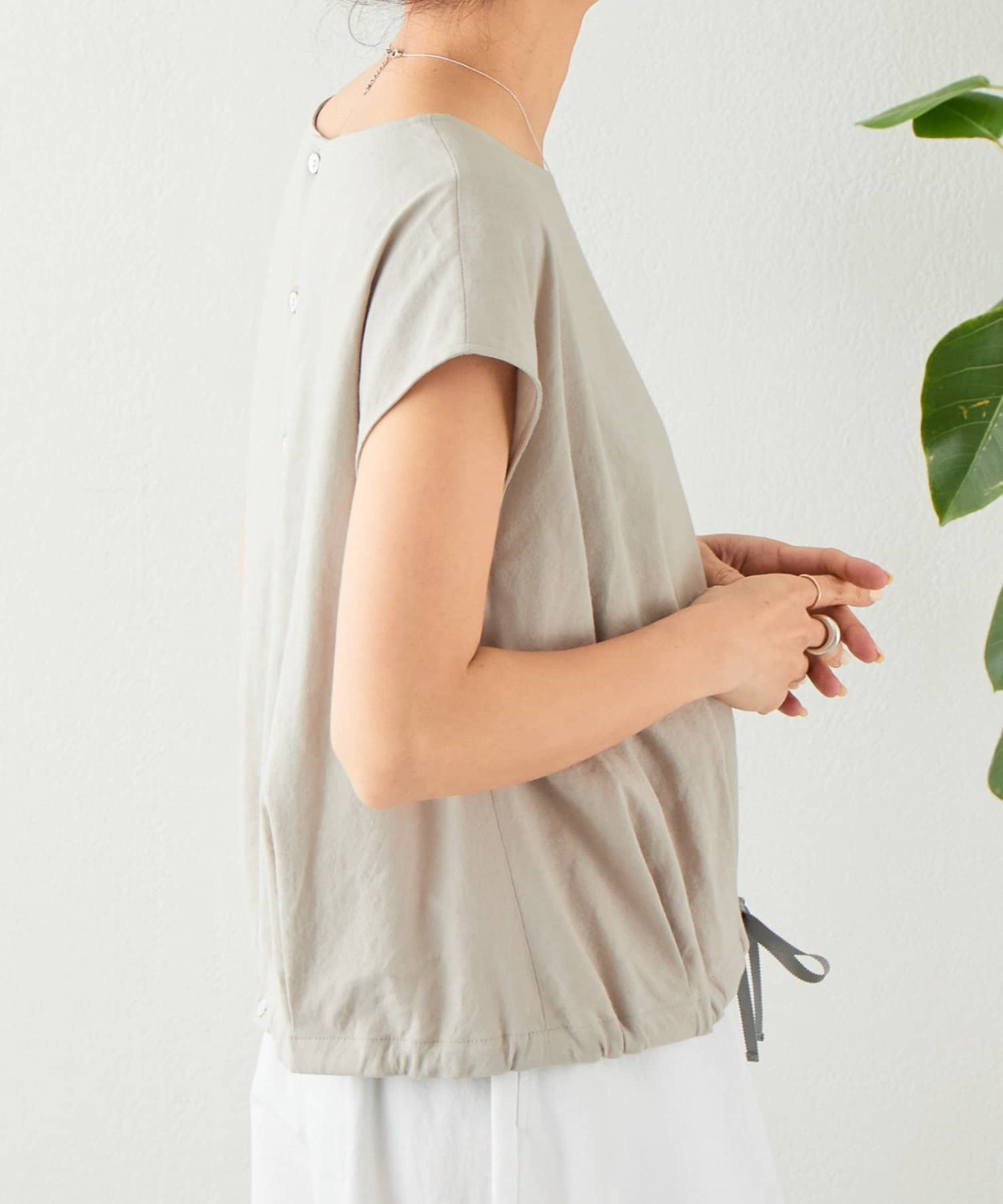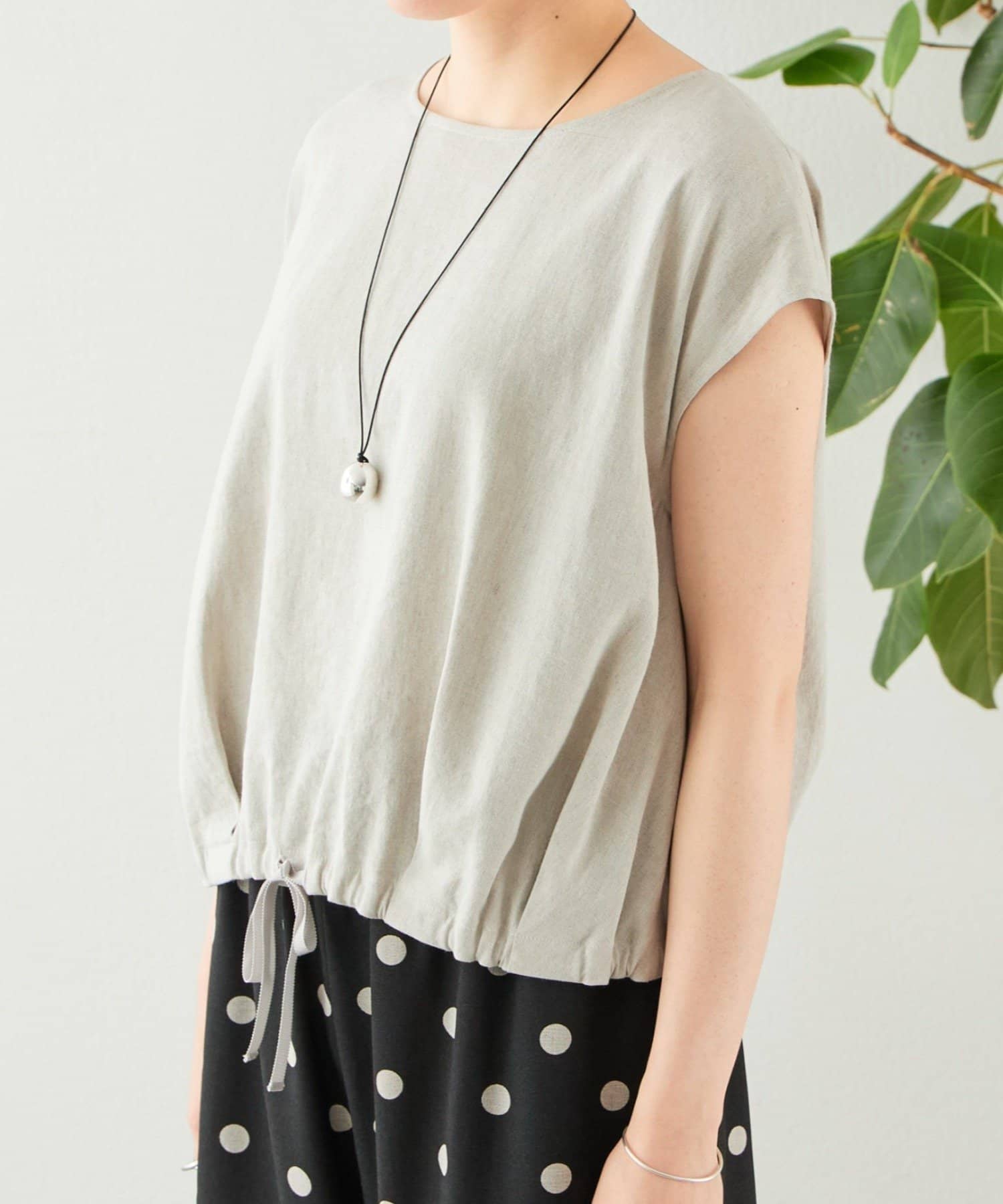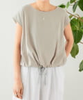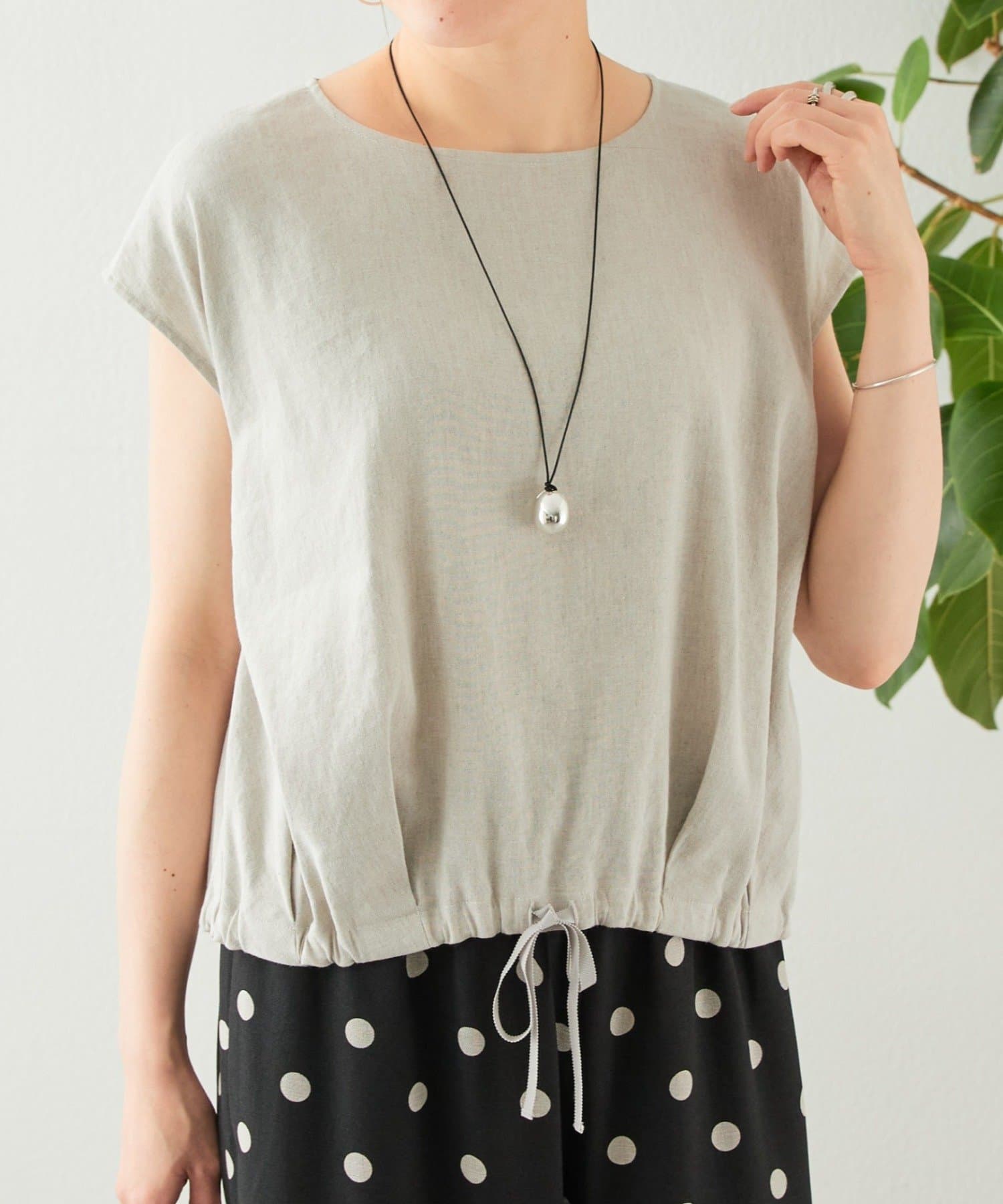 リネン裾ドロストブラウス