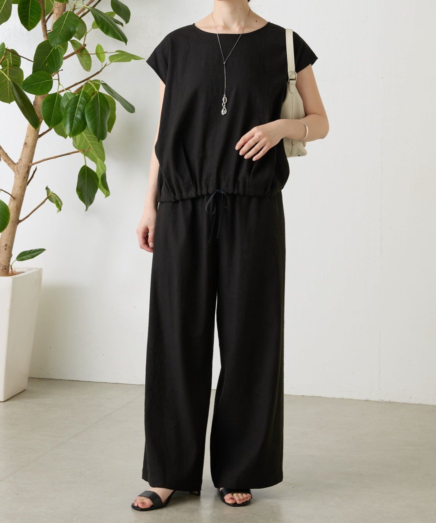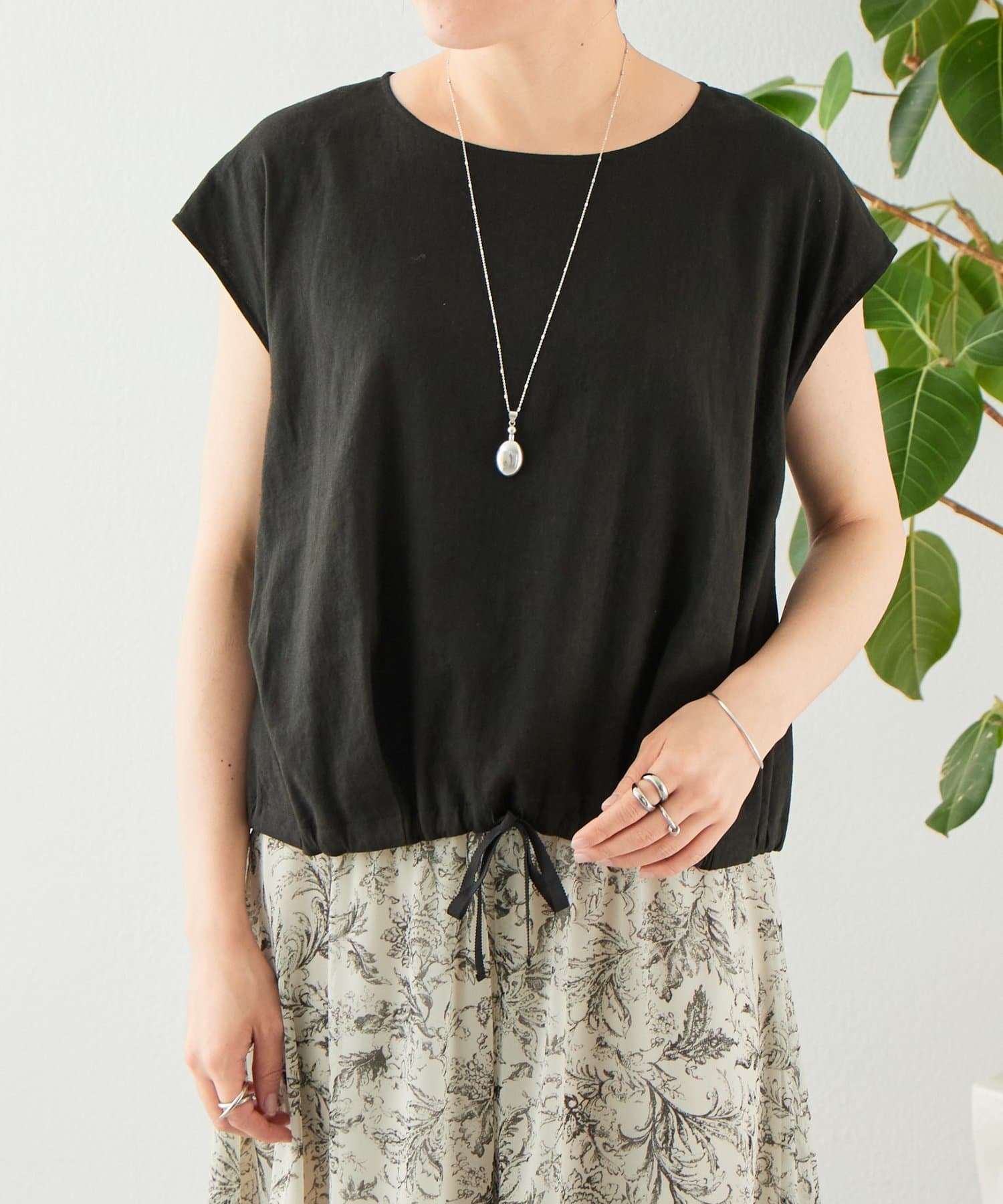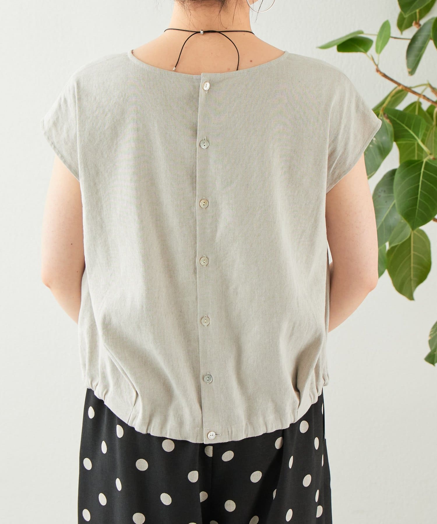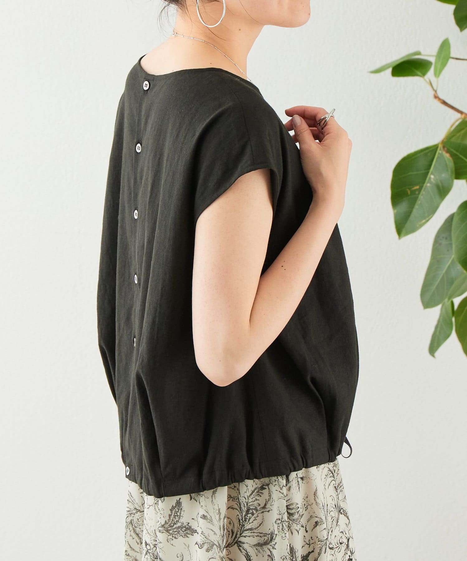 リネン裾ドロストブラウス
