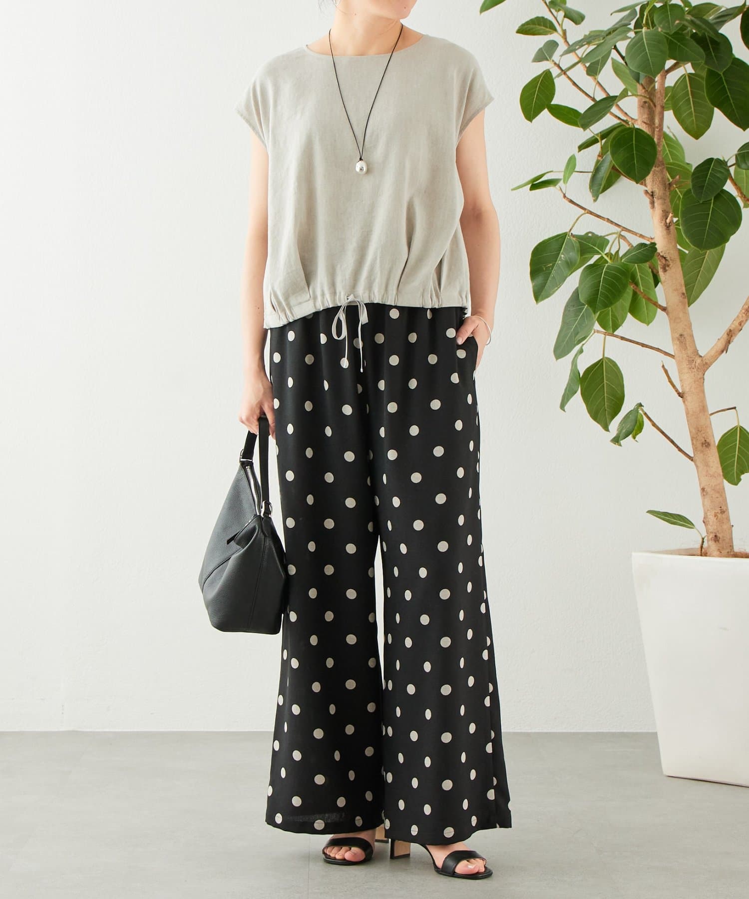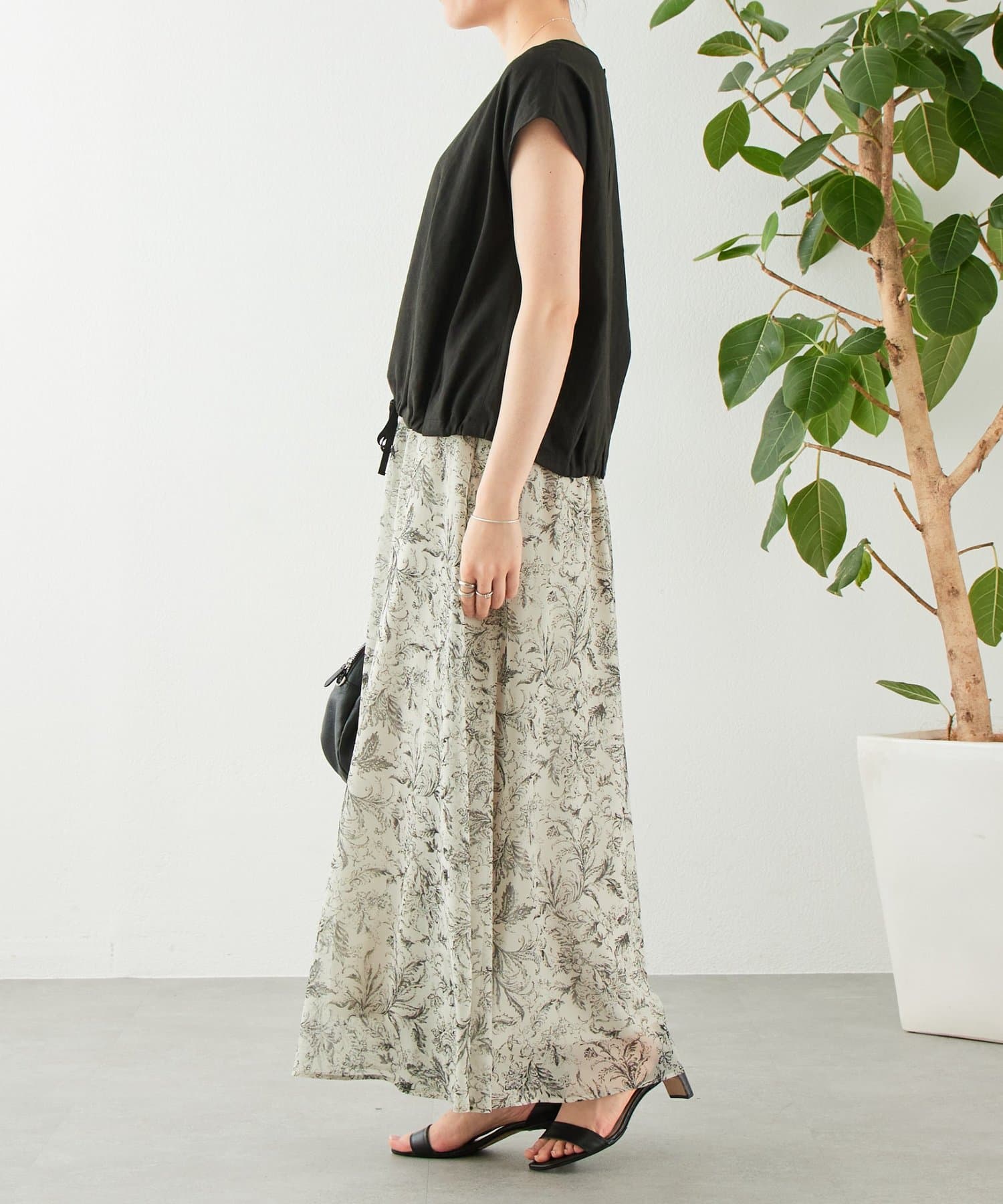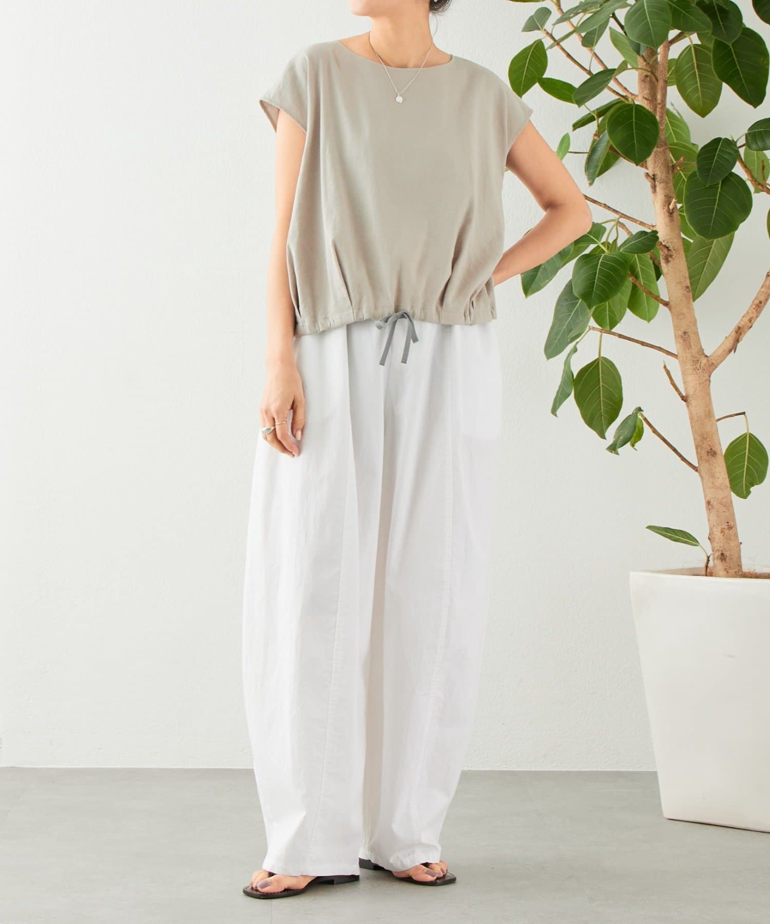 裾のリボンを絞ることでフォルムの変化を楽しめ、その日の気分やスタイリングに合わせたアレンジが可能です。
