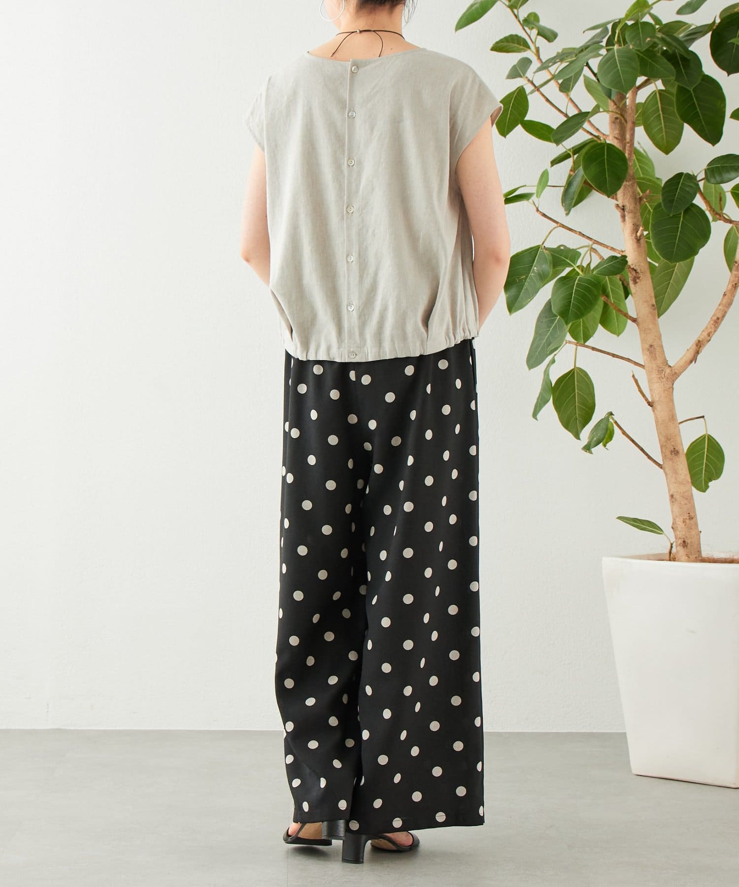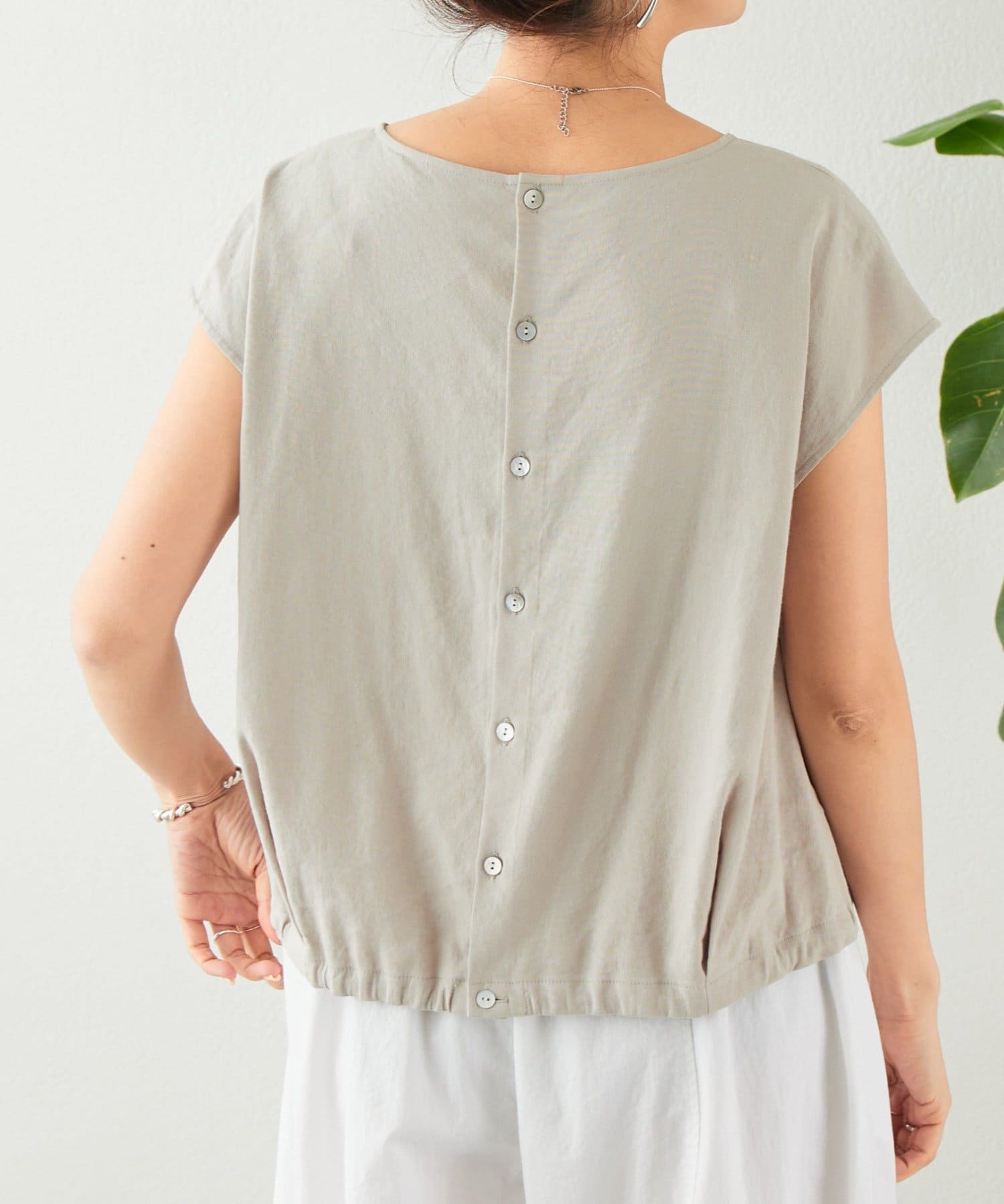 背中にはボタンを配しシンプルながらディテールにこだわった、大人のリラックススタイルにおすすめの一枚。