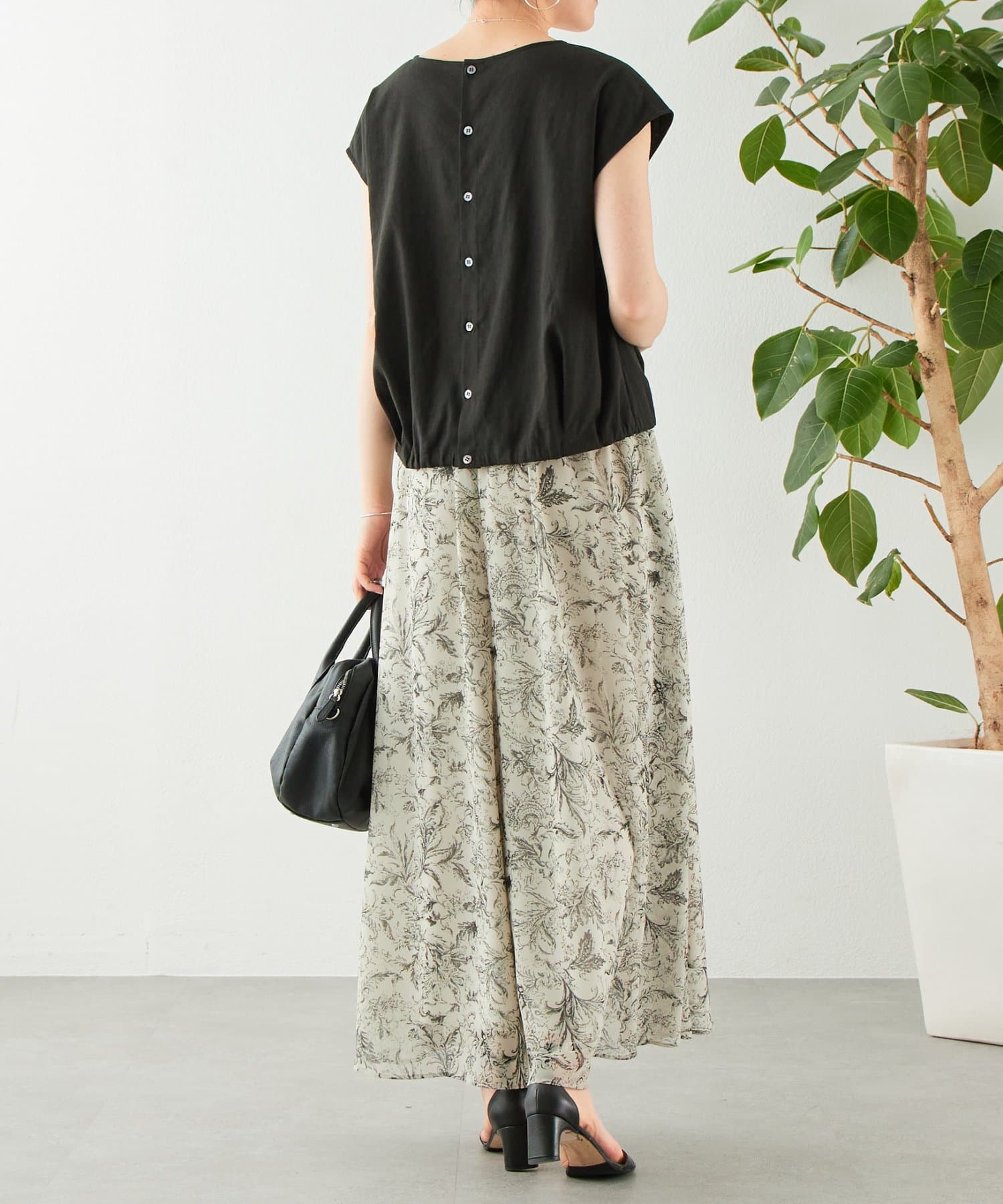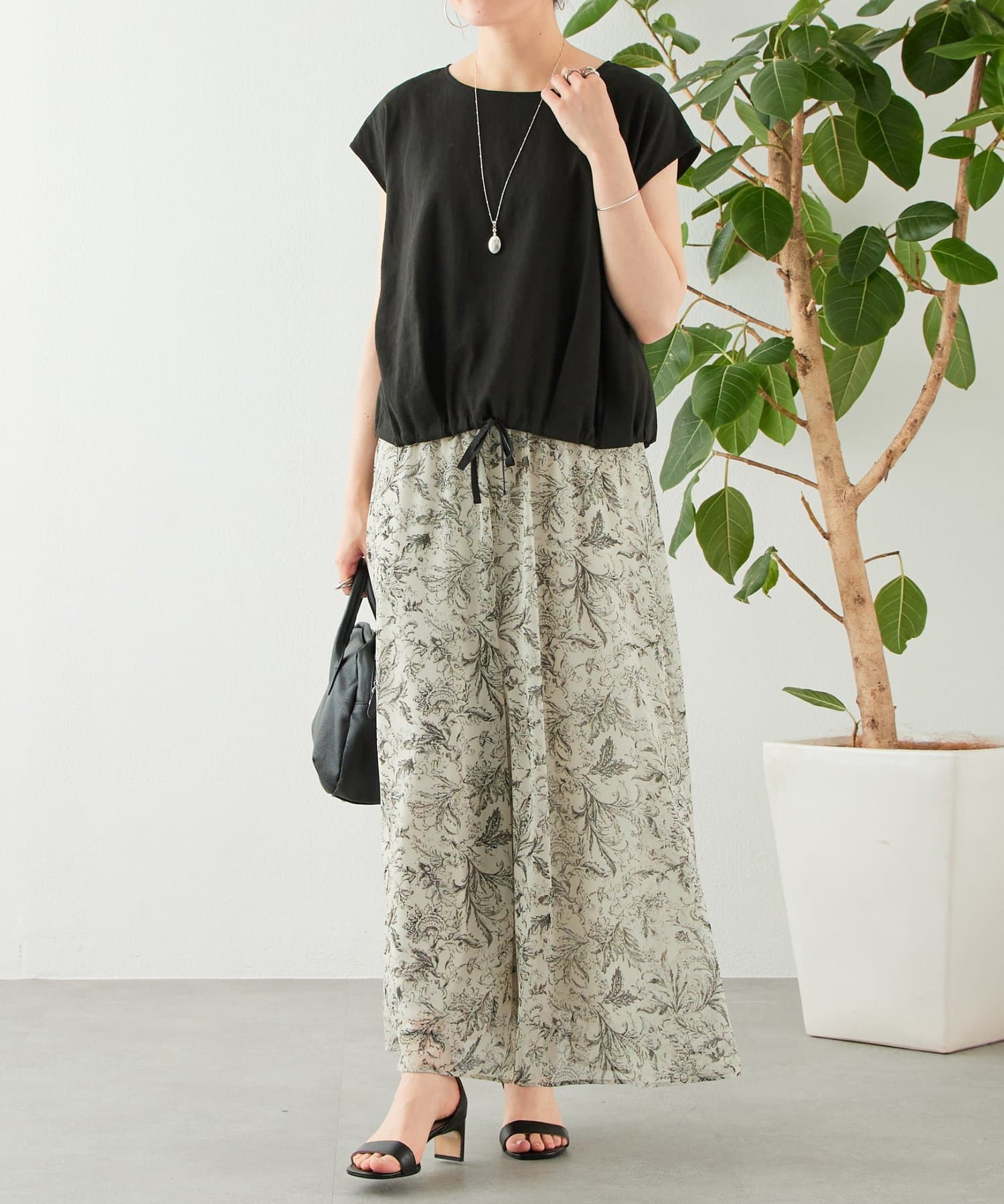 同素材のパンツやキュロットと合わせたセットアップスタイルもおすすめです。