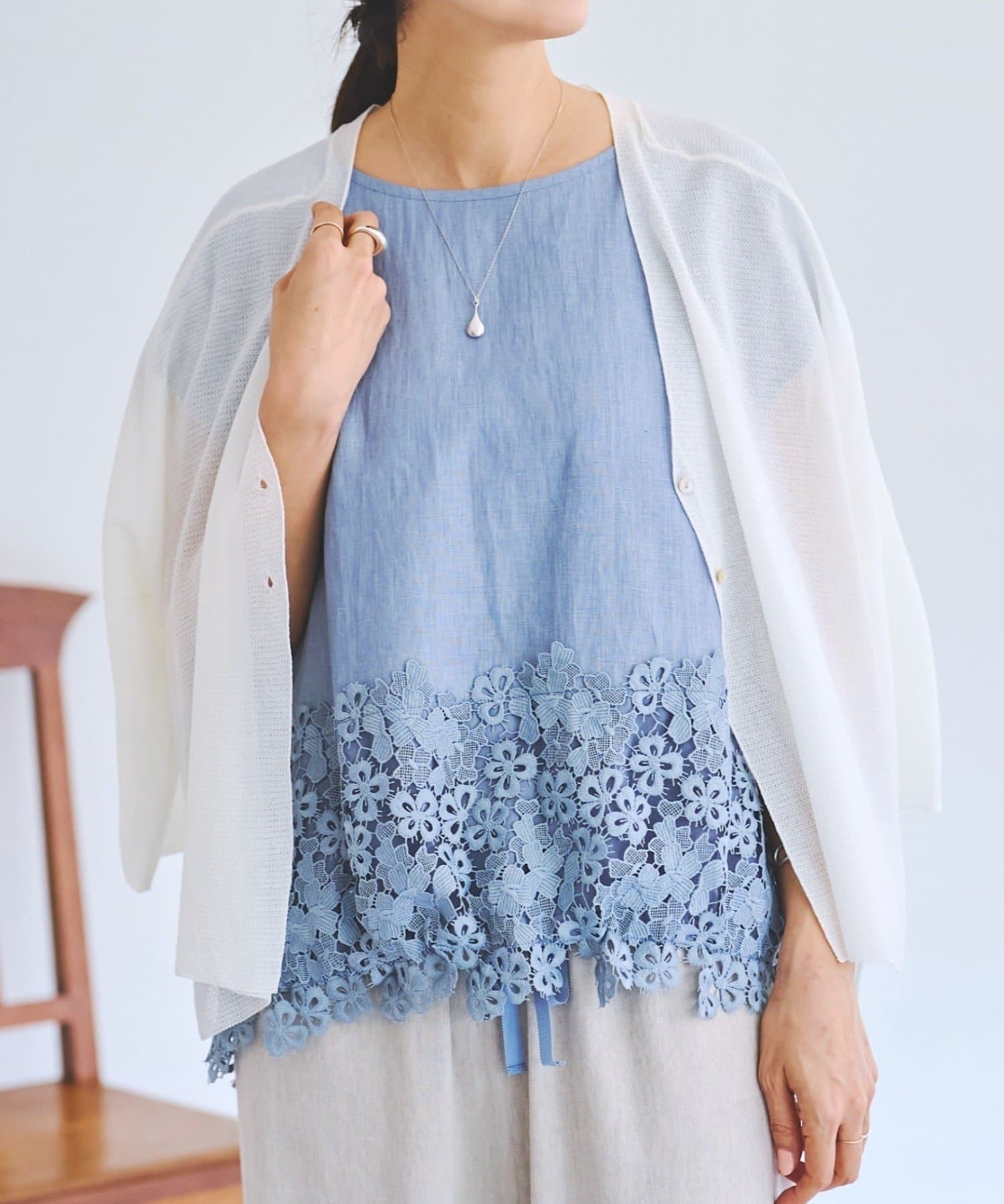 《4/1(水)20:00予約開始》裾レースリネンブラウス