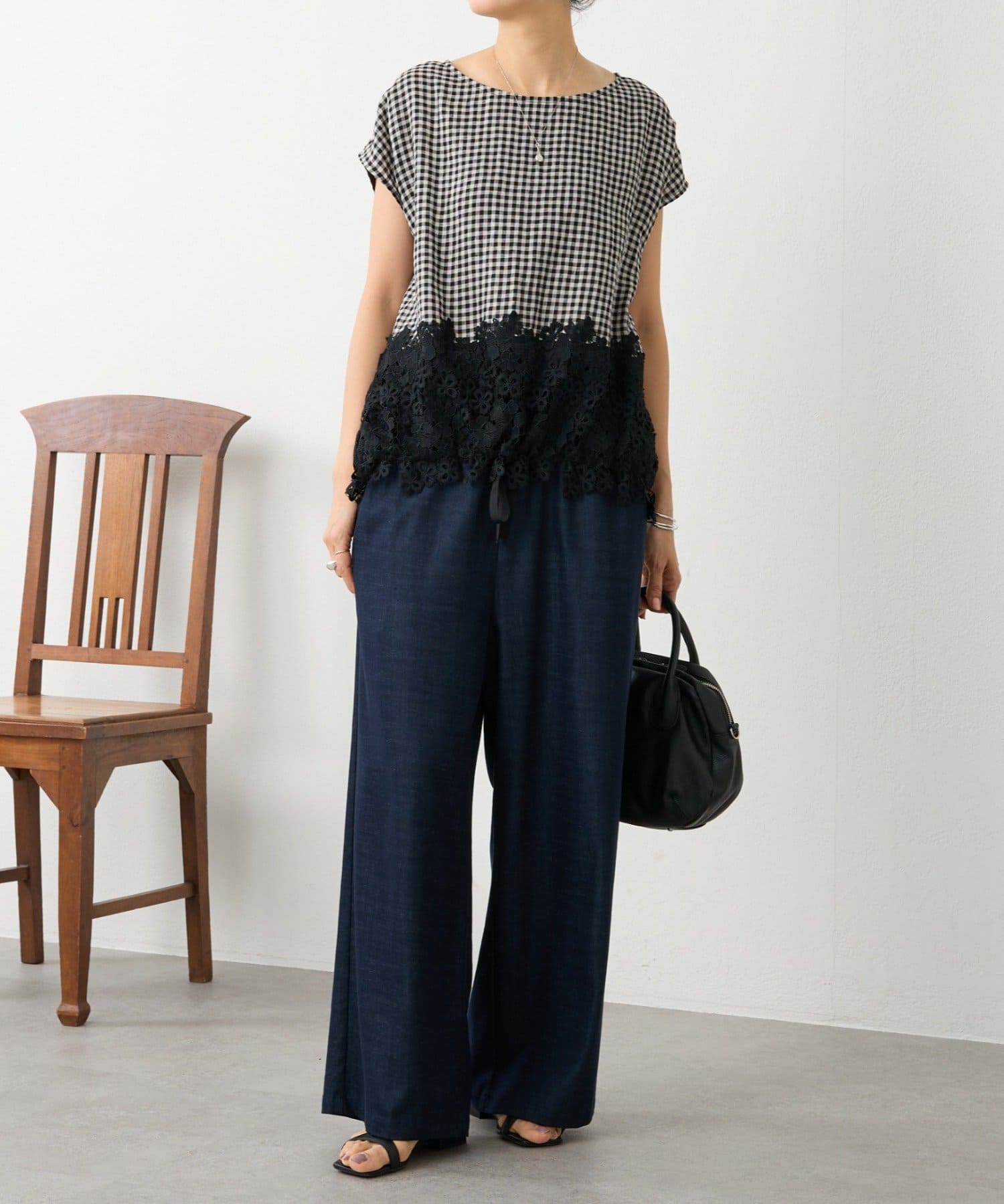 同色でまとめたレースを使用し、甘さを抑えた大人フェミニンなブラウス。