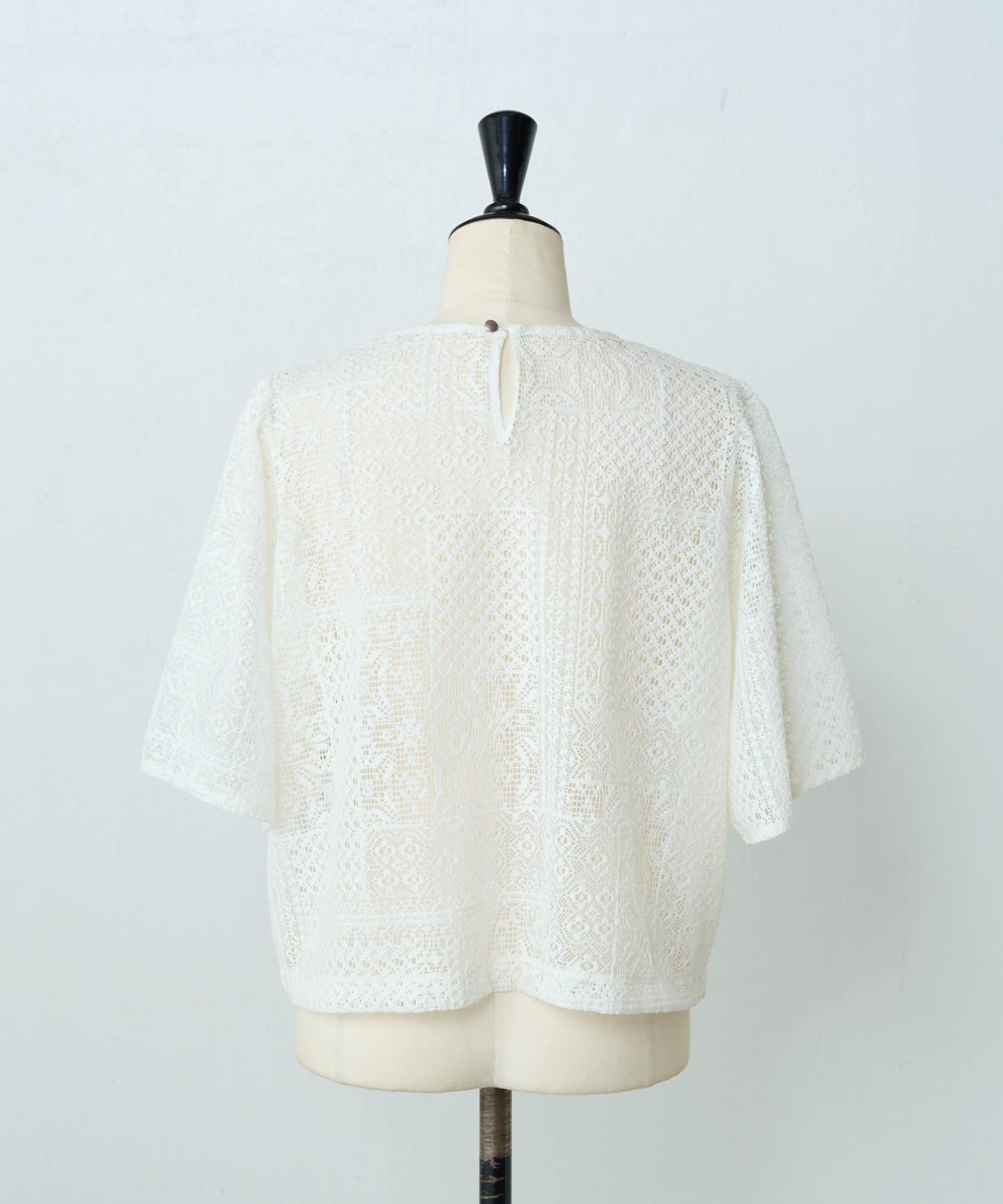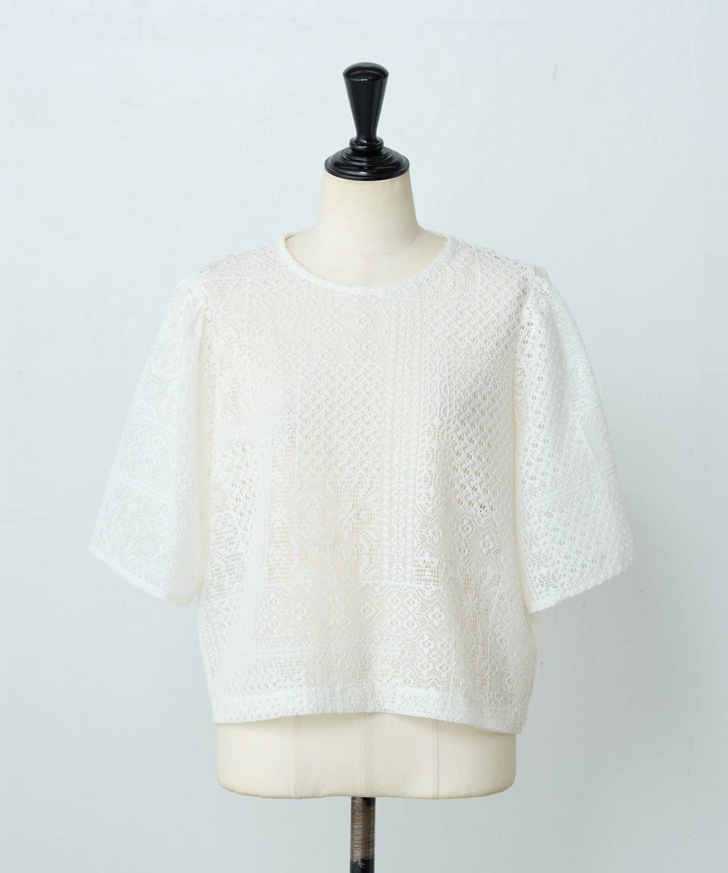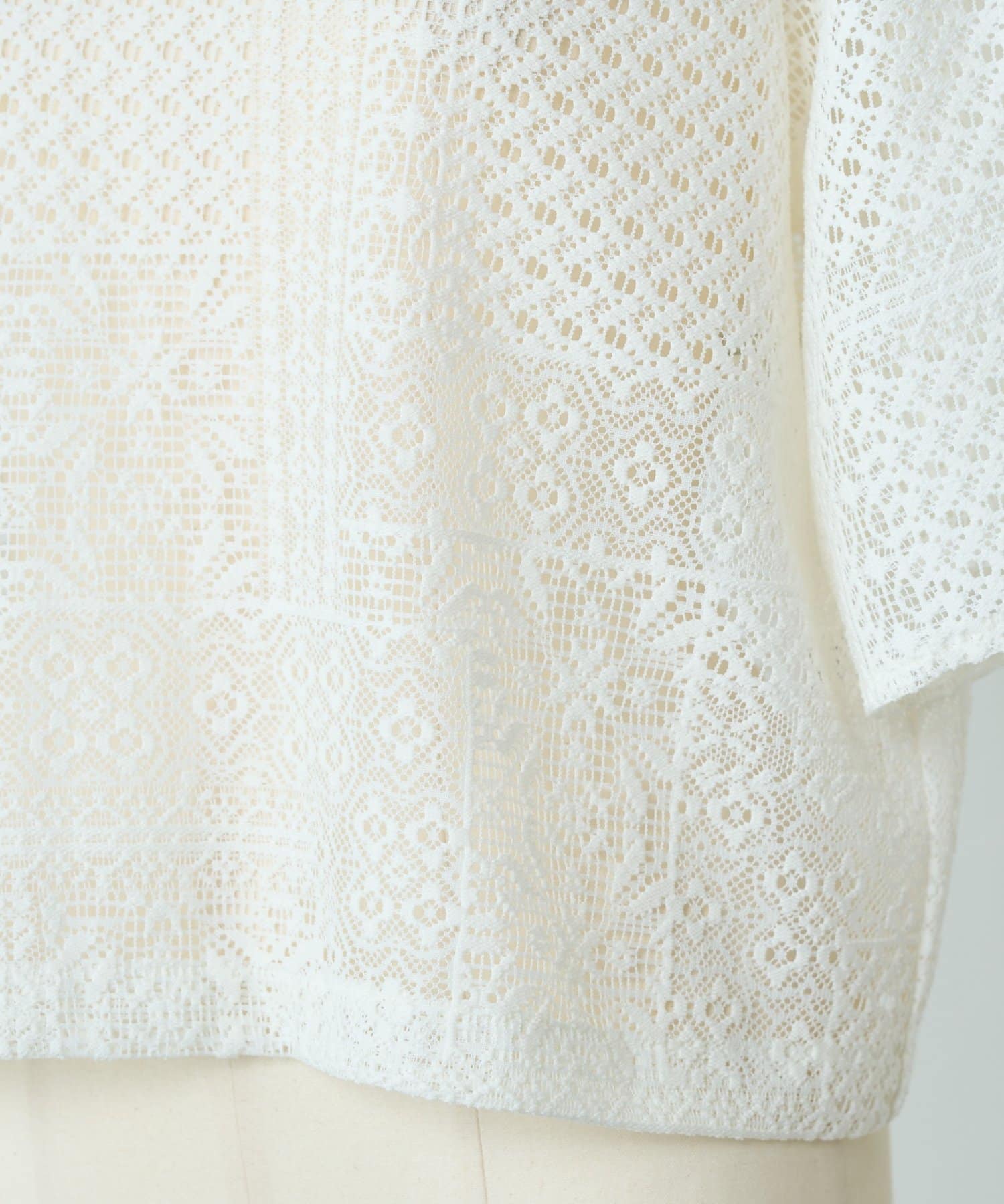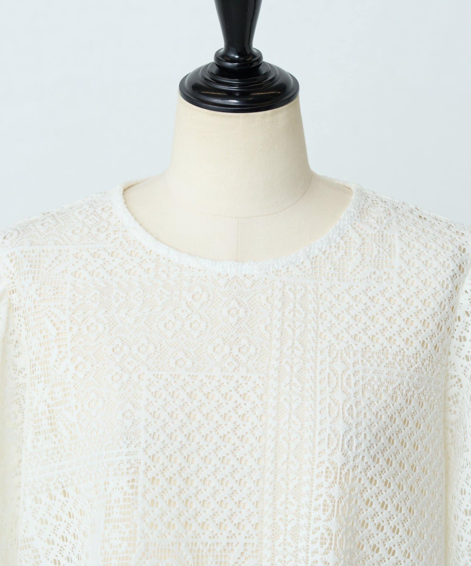 パッチワークレースが上品な印象のプルオーバー。