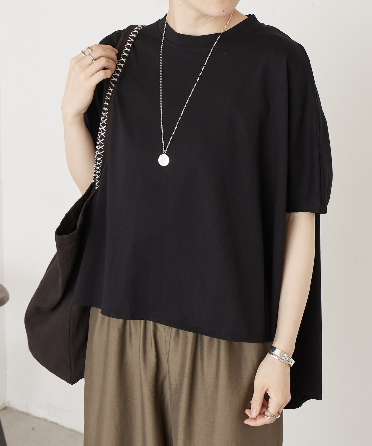 身体を包み込むような、たっぷりとしたワイドシルエットが印象的なTシャツ。