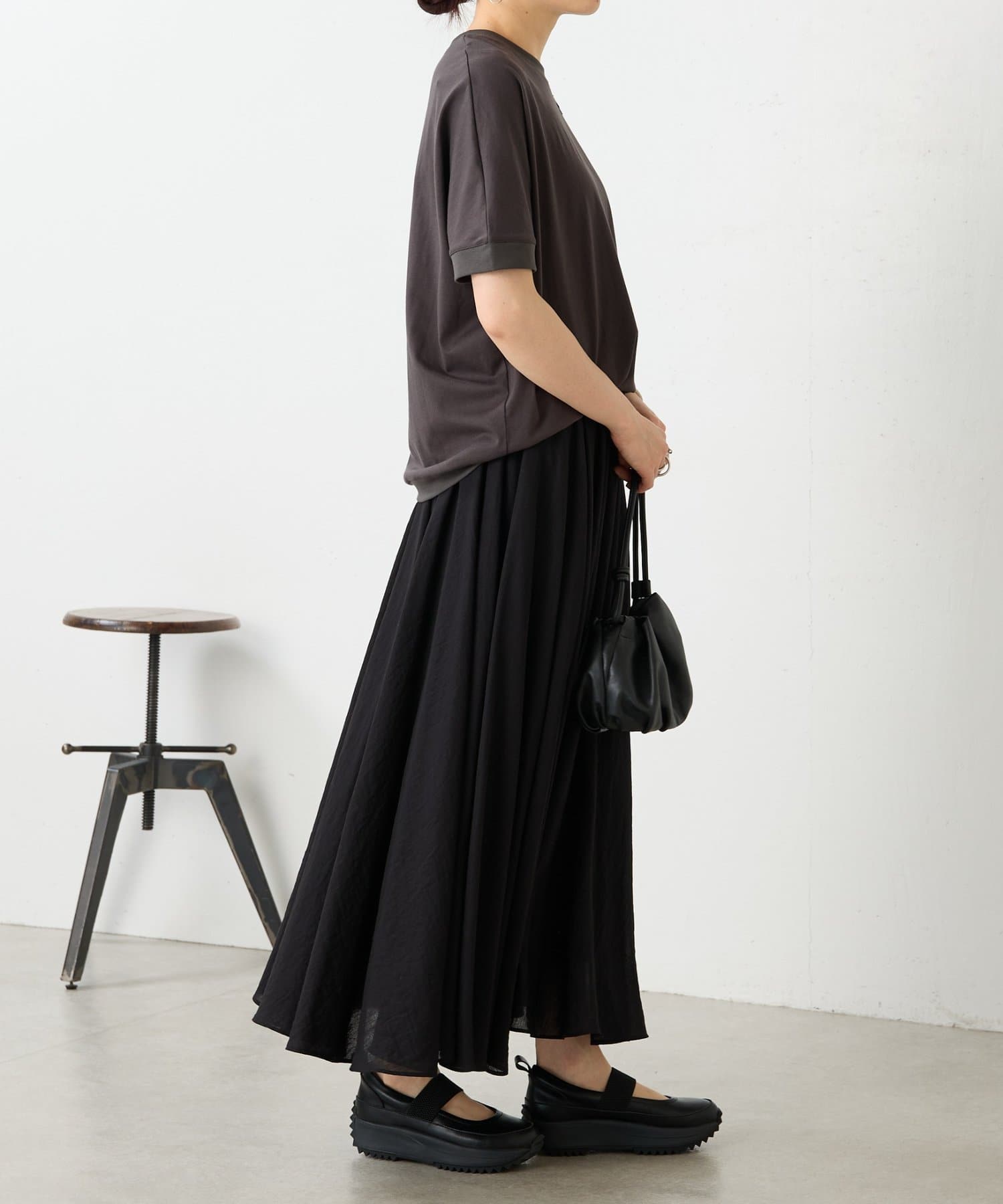 ワイドパンツやスカートなど幅広いボトムスとバランス良く合わせていただけます。