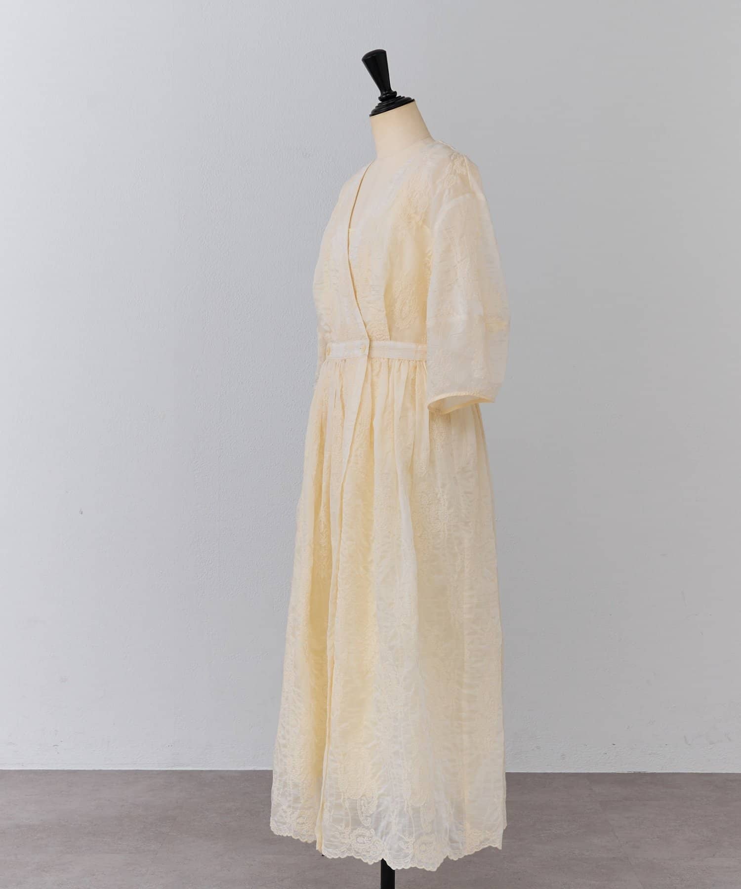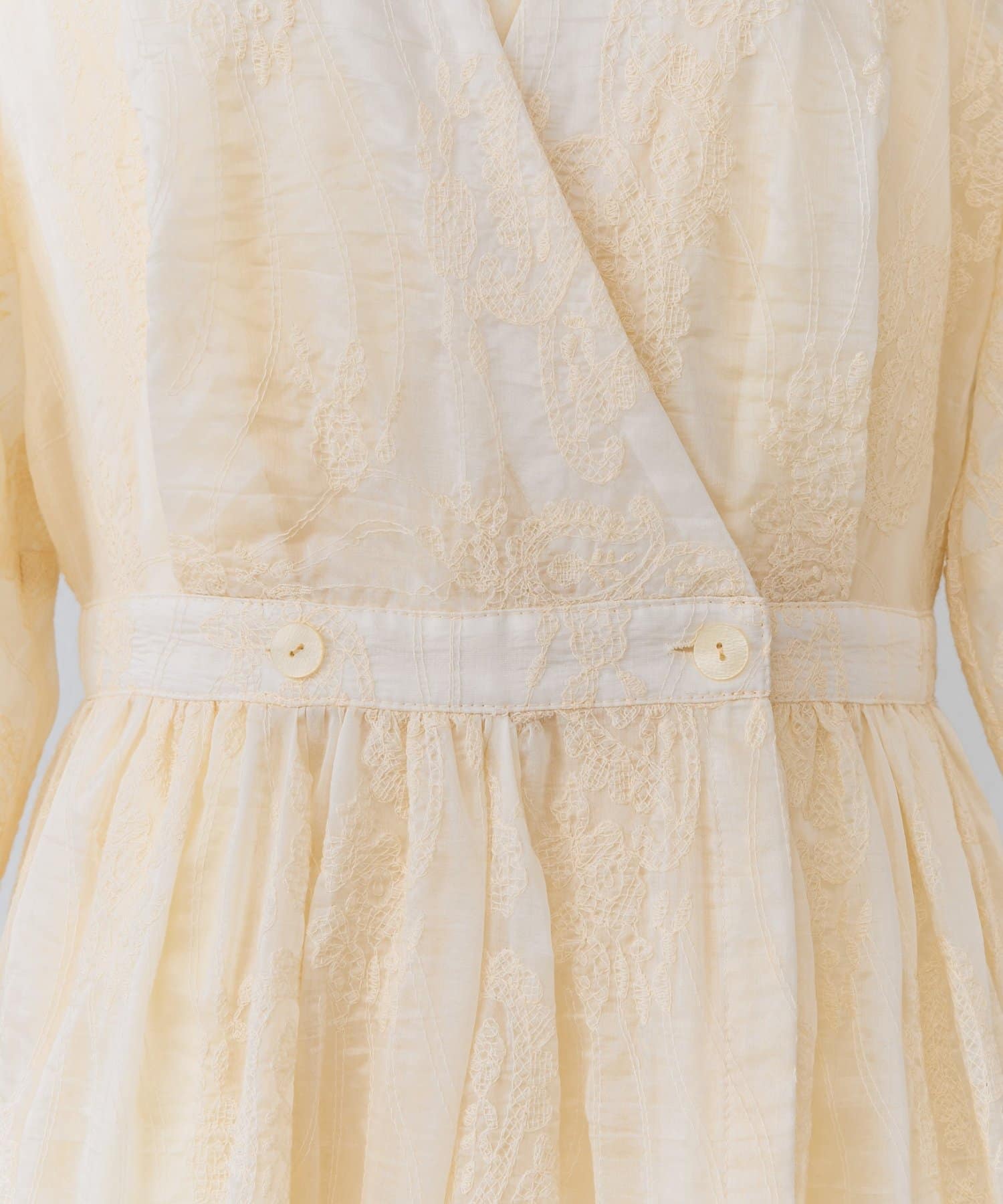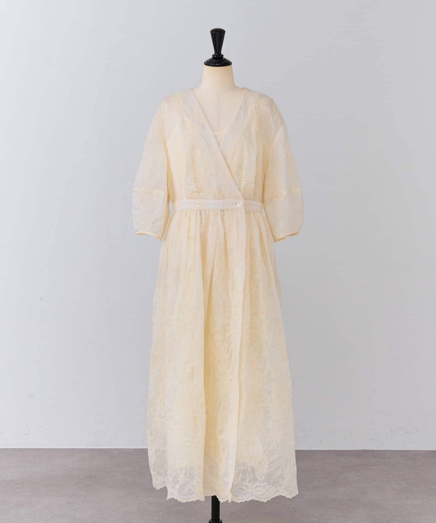 フロントは合わせ仕様で、ボタンを留めればワンピースとして、開ければ軽い羽織としても着用可能です。