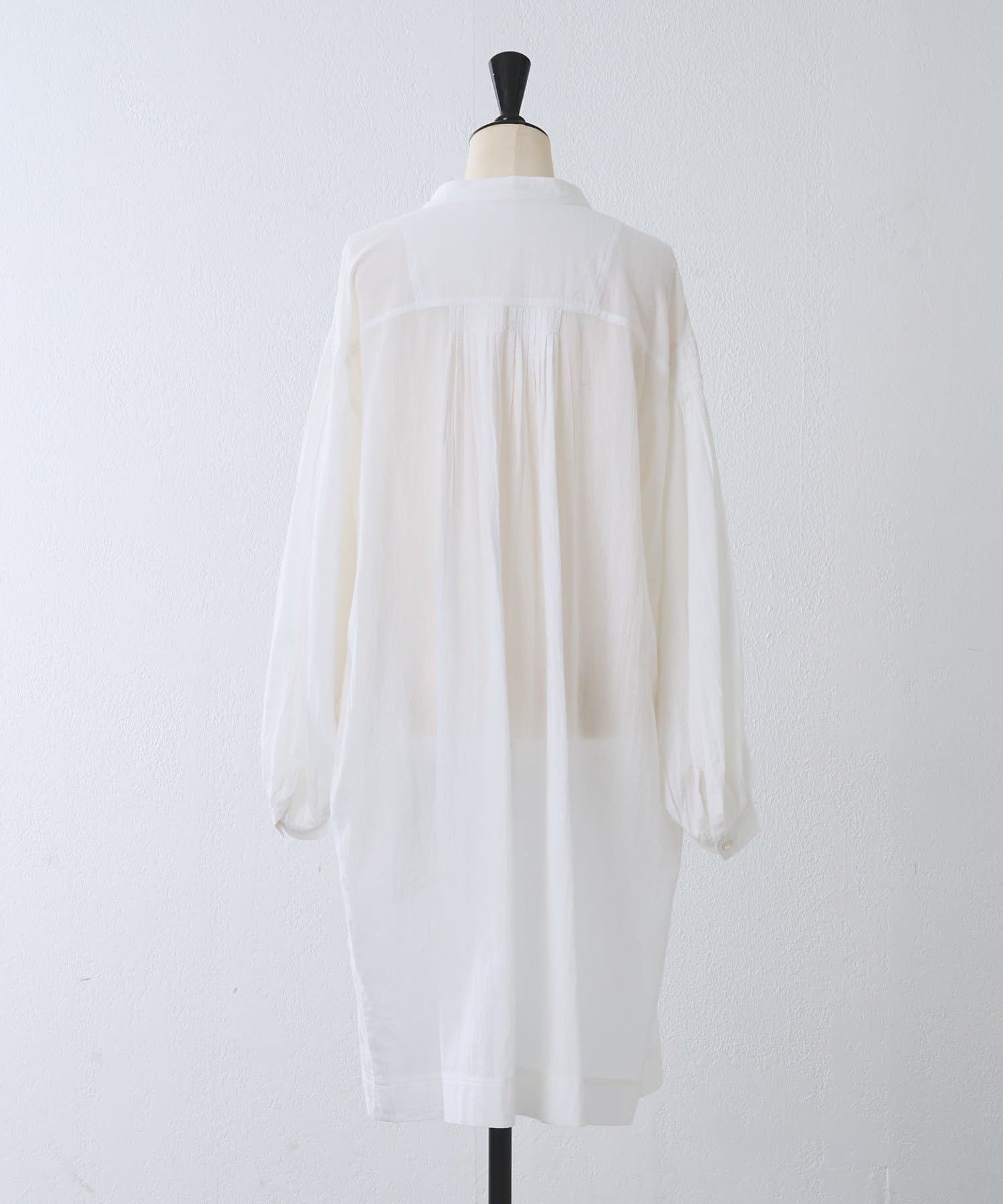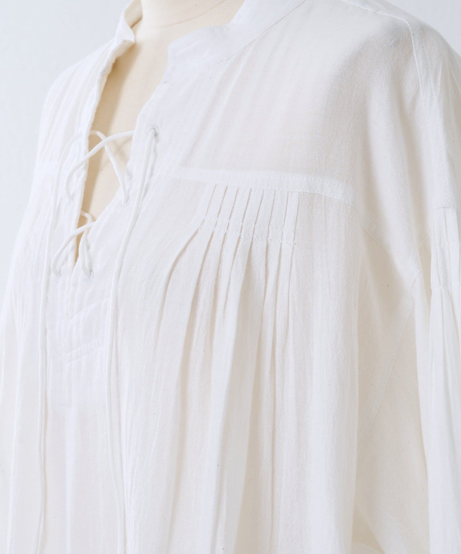 胸元から肩、背中にかけて施されたピンタックデザインがシンプルながらも上品な印象に。