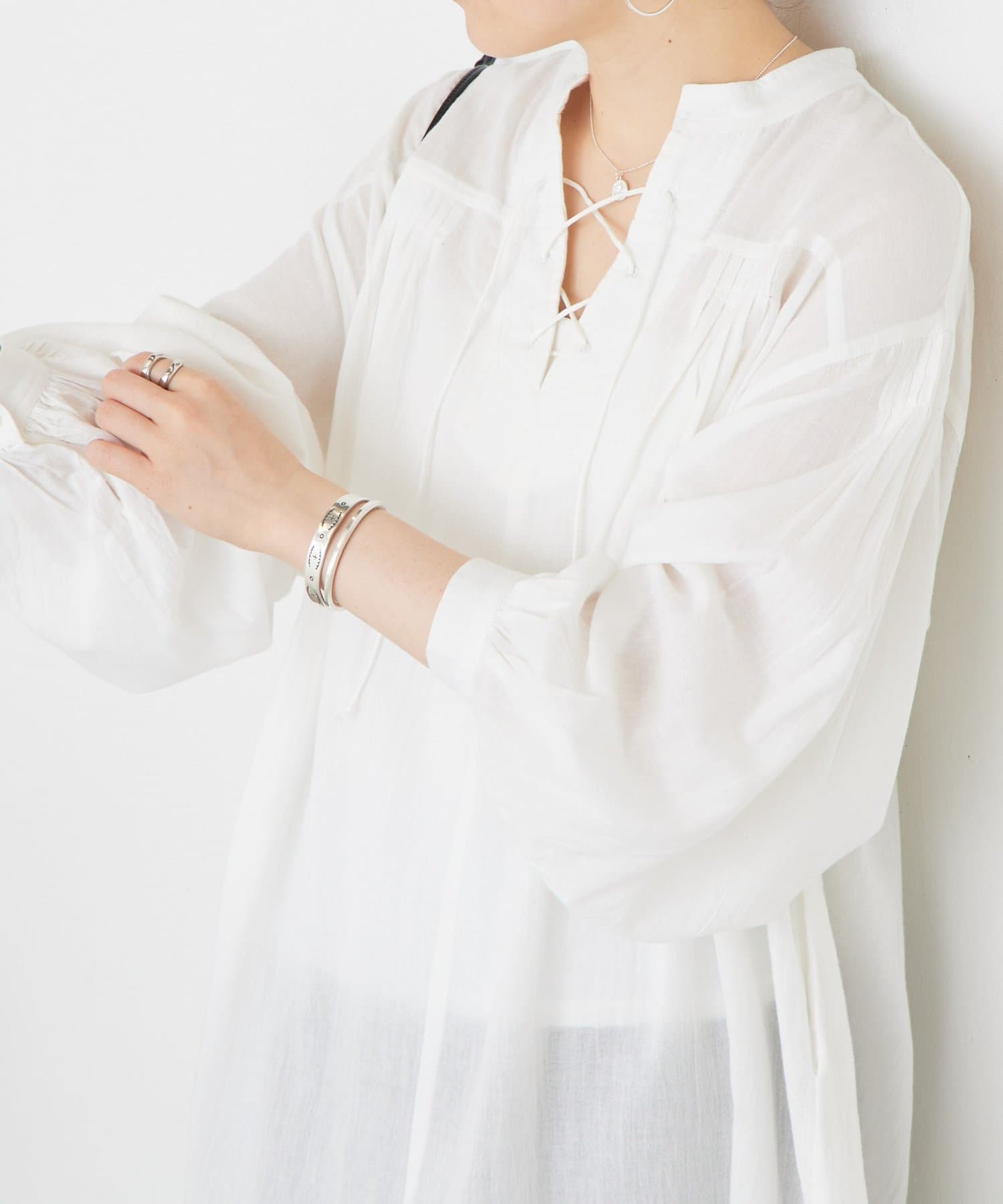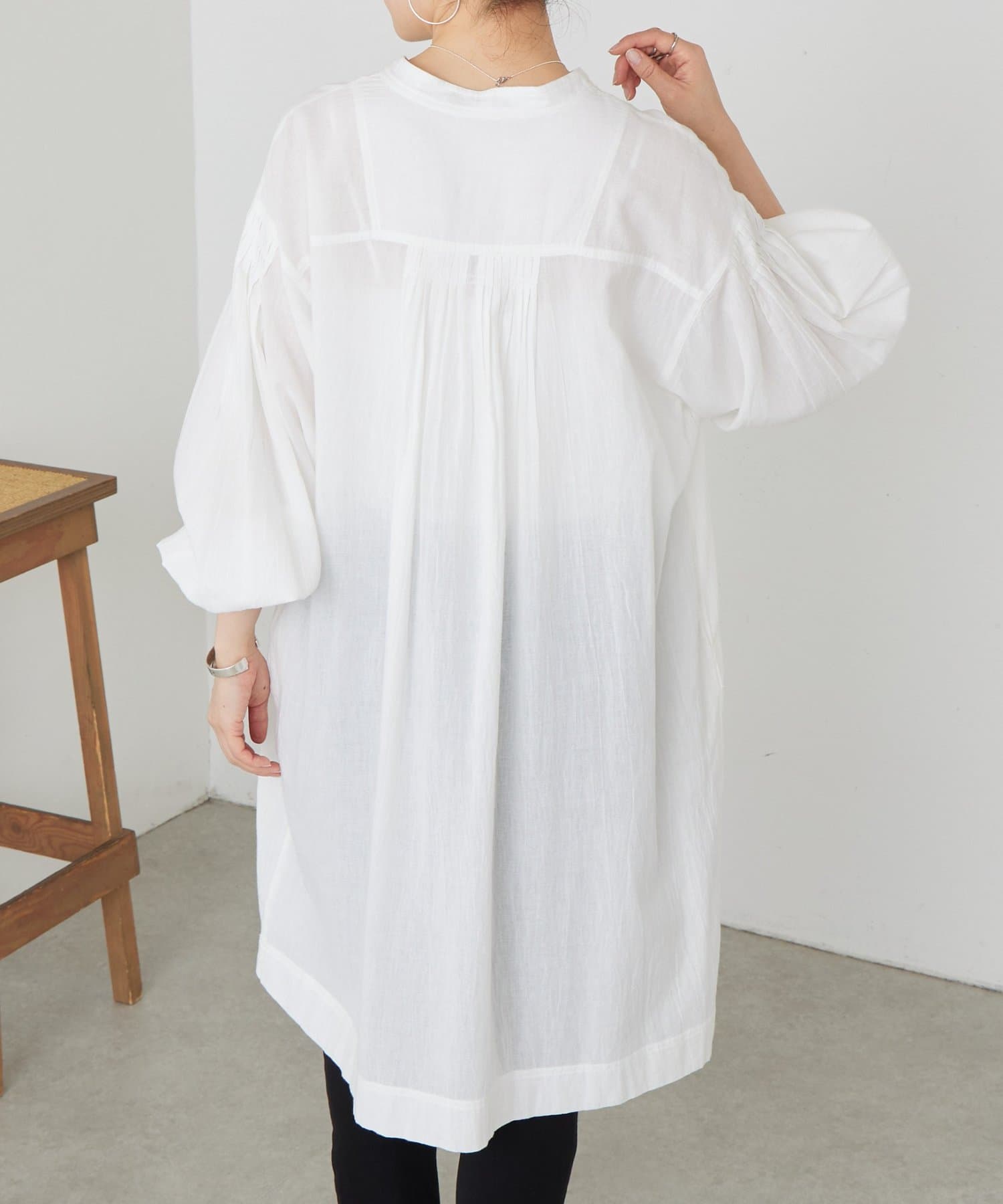 袖口にはギャザーを寄せたやわらかなシルエットで抜け感をプラス。