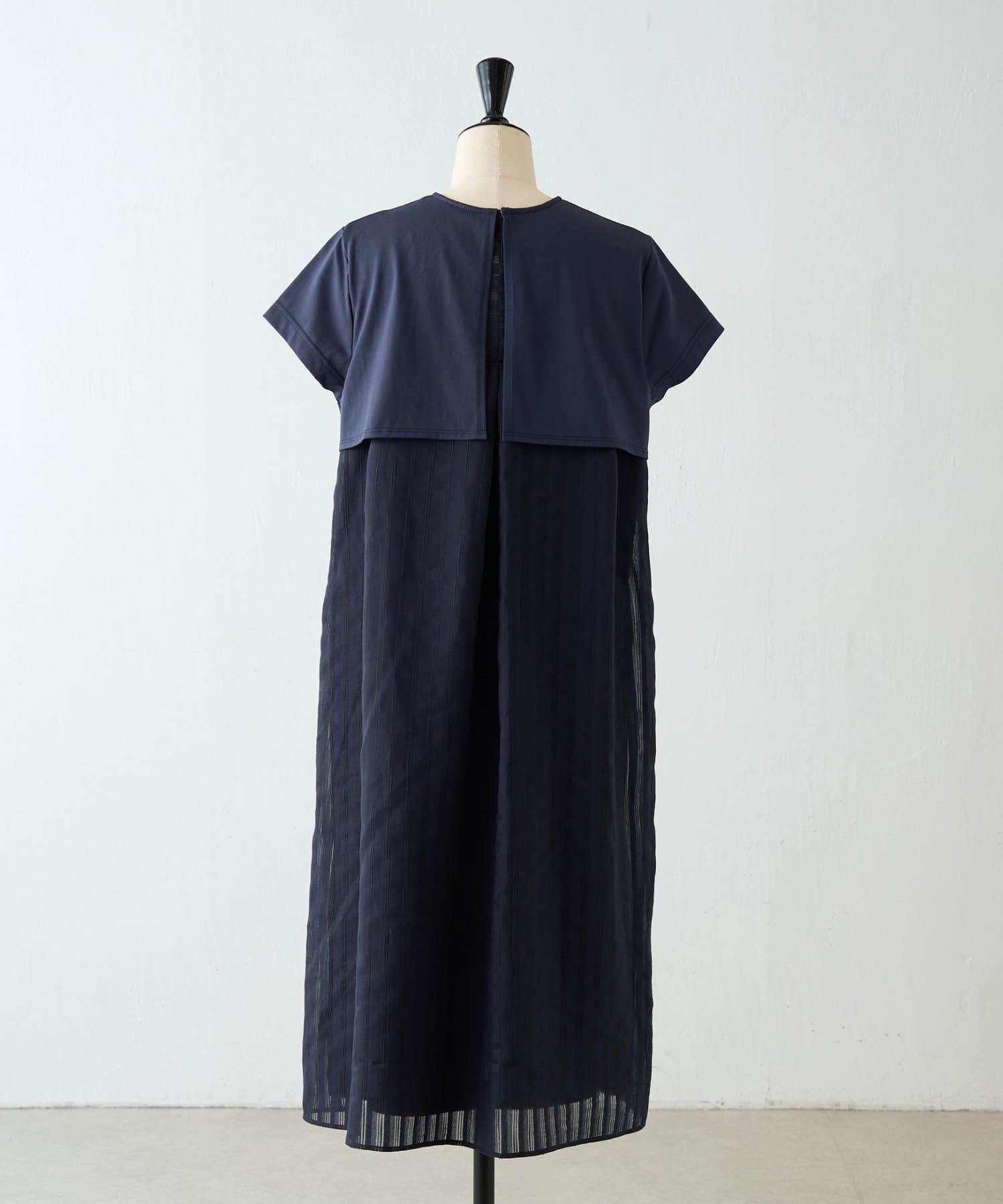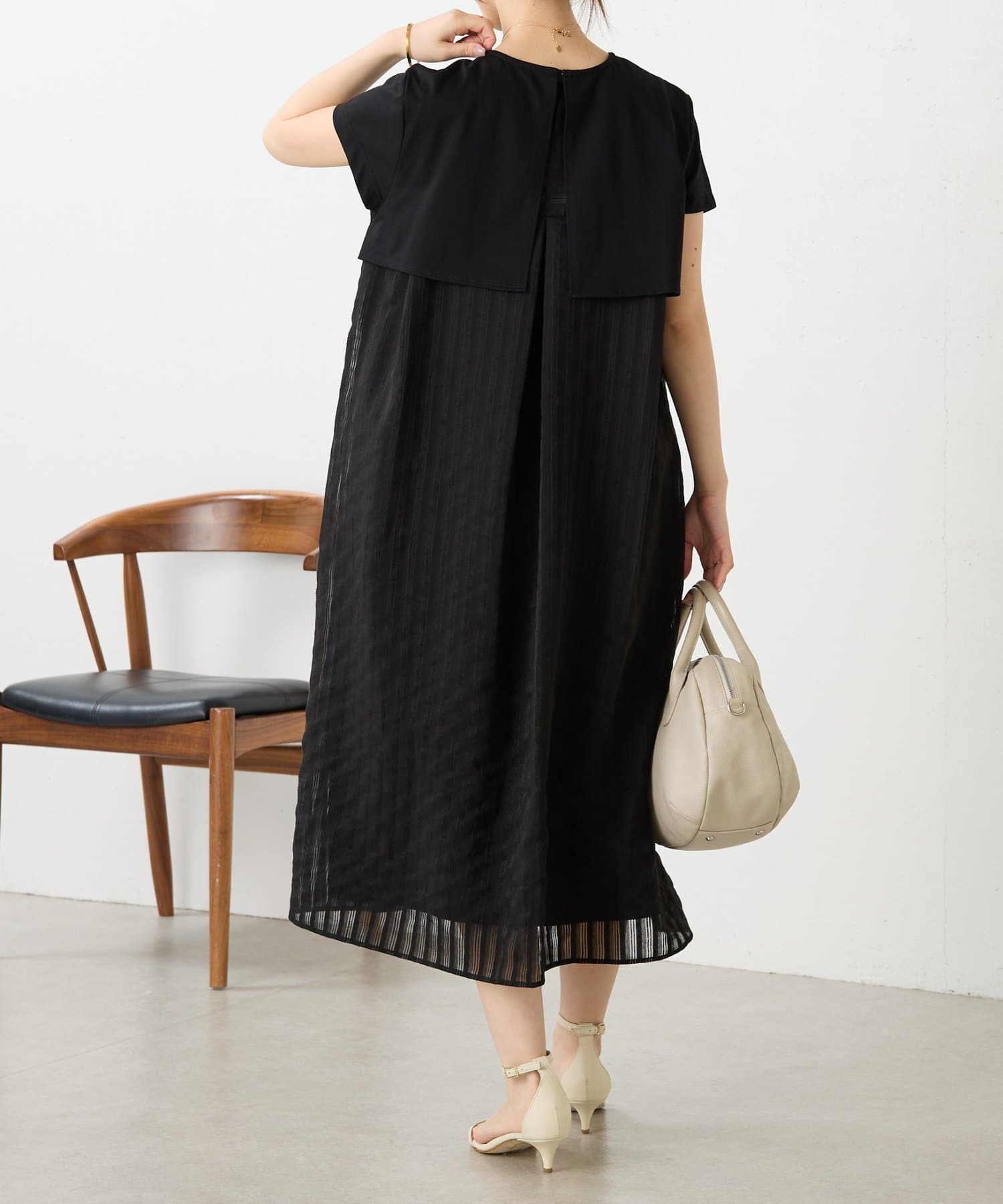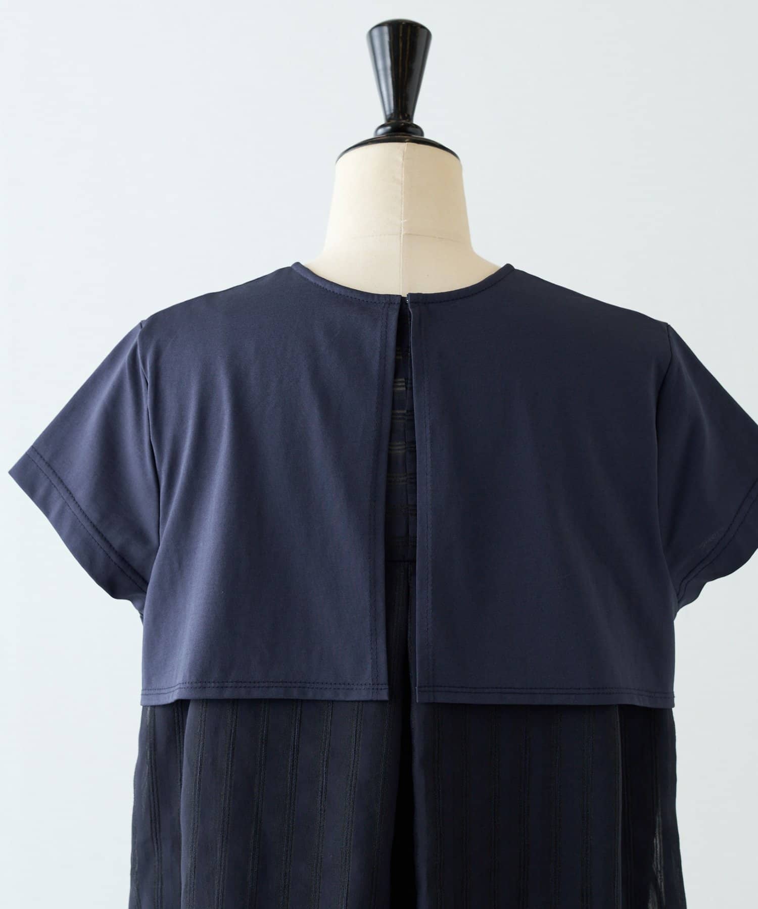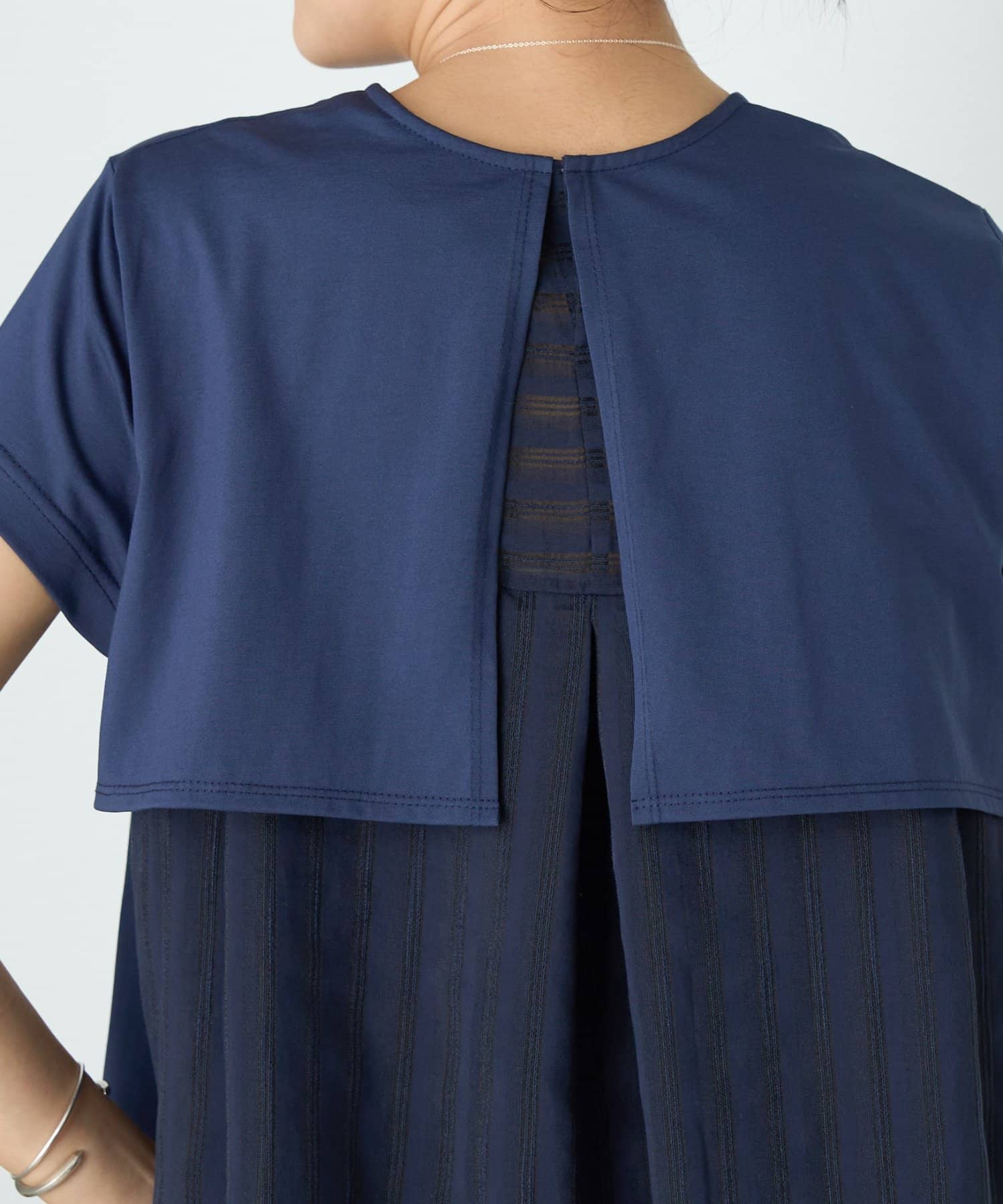 背中にはシアー感のあるストライプ生地をドッキングし、さりげなく華やかさをプラスした一枚です。