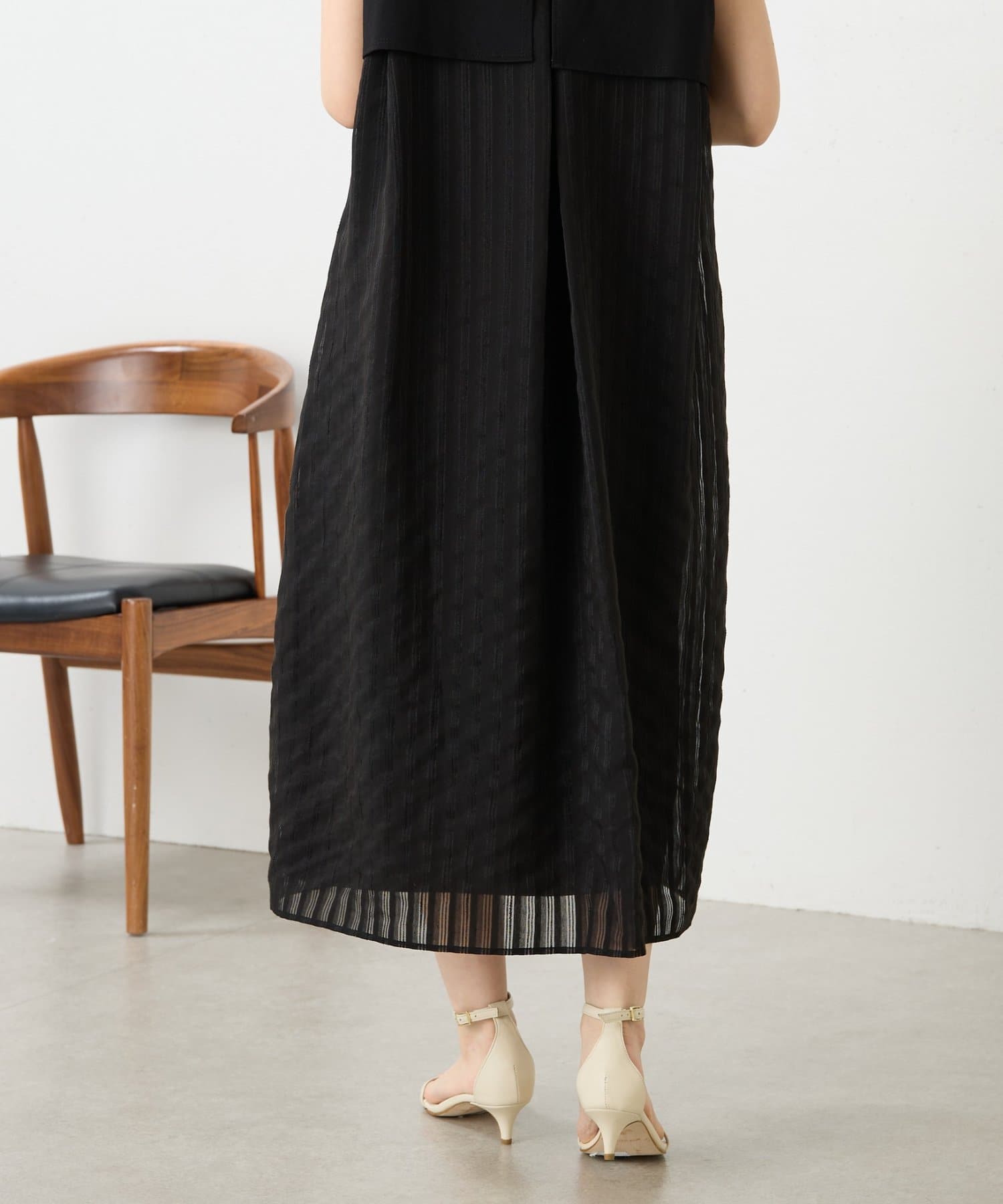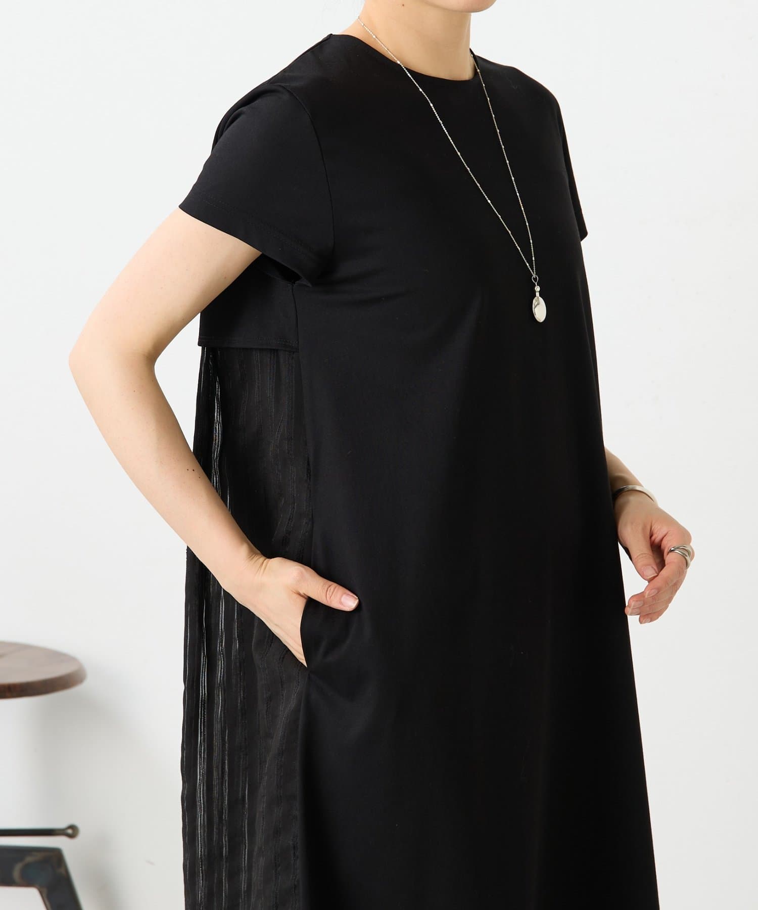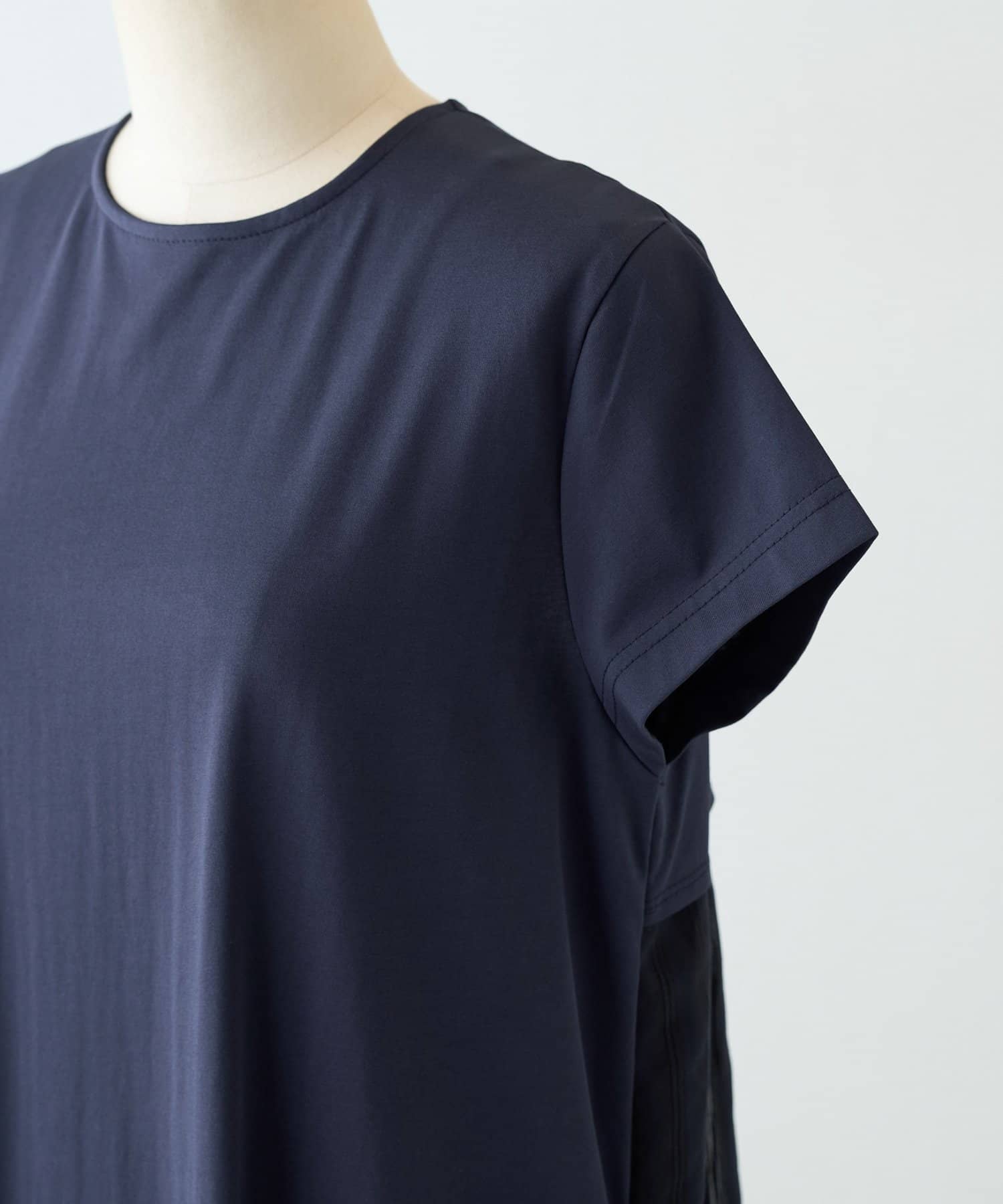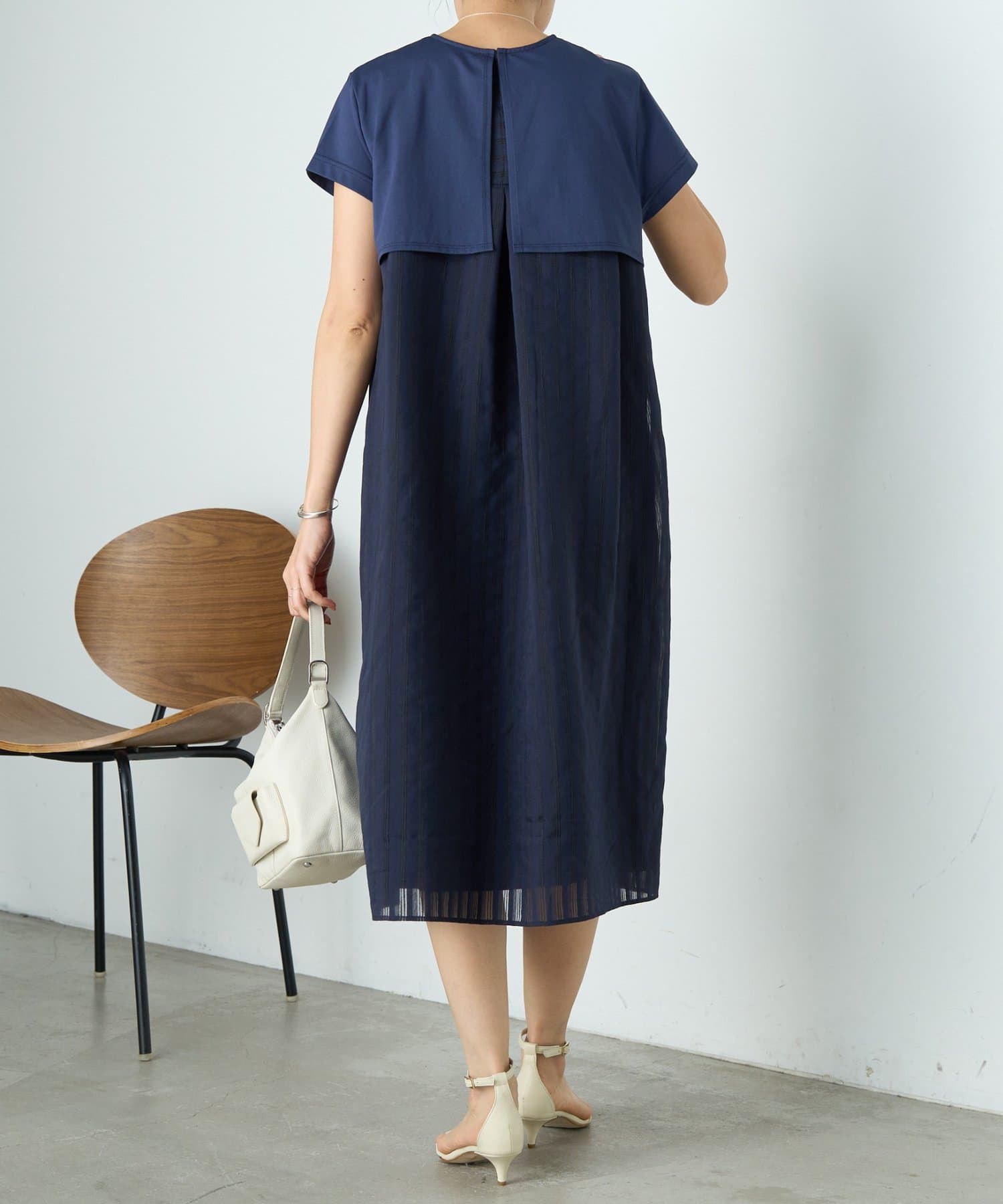 背中にはシアー感のあるストライプ生地をドッキングし、さりげなく華やかさをプラスした一枚です。