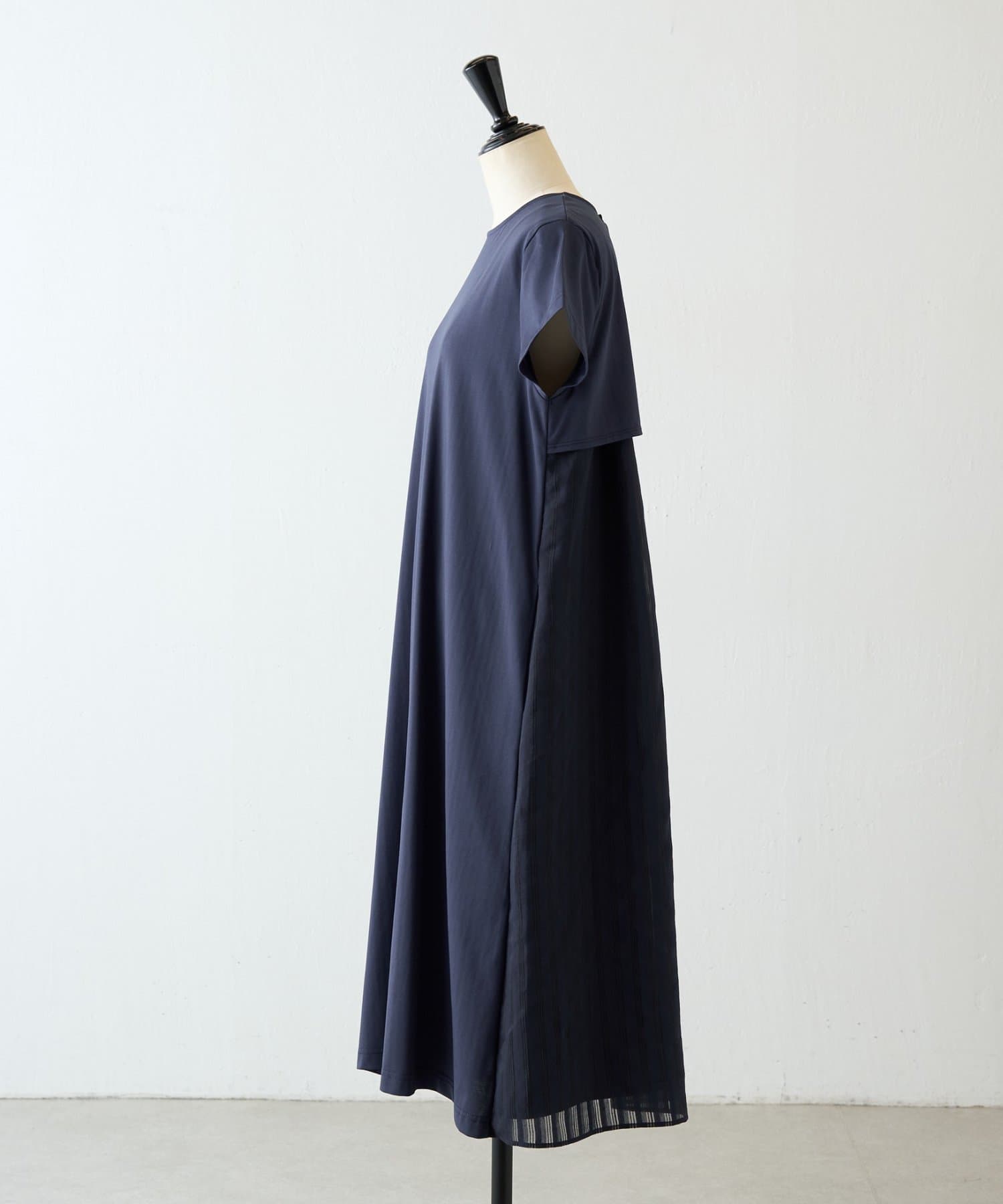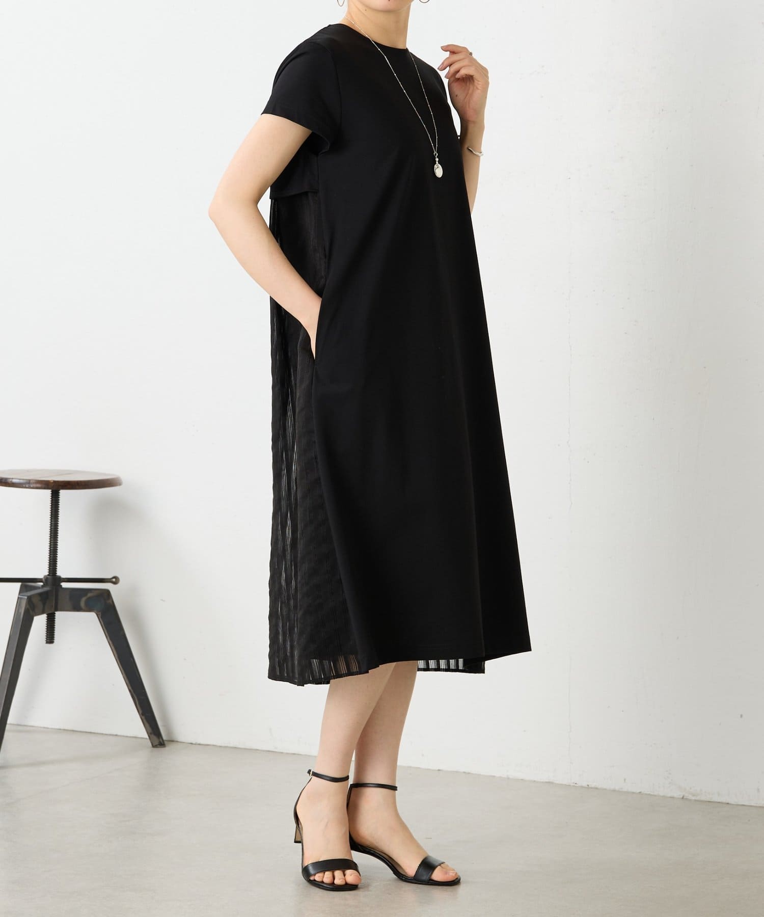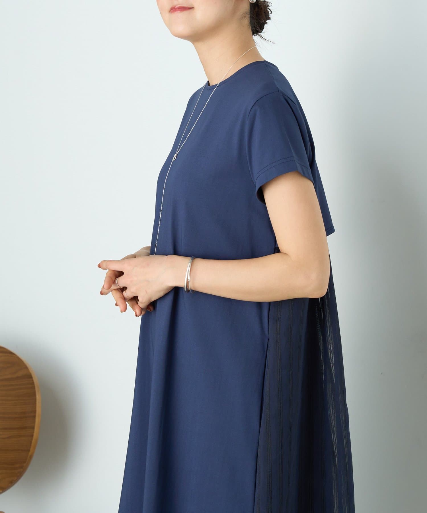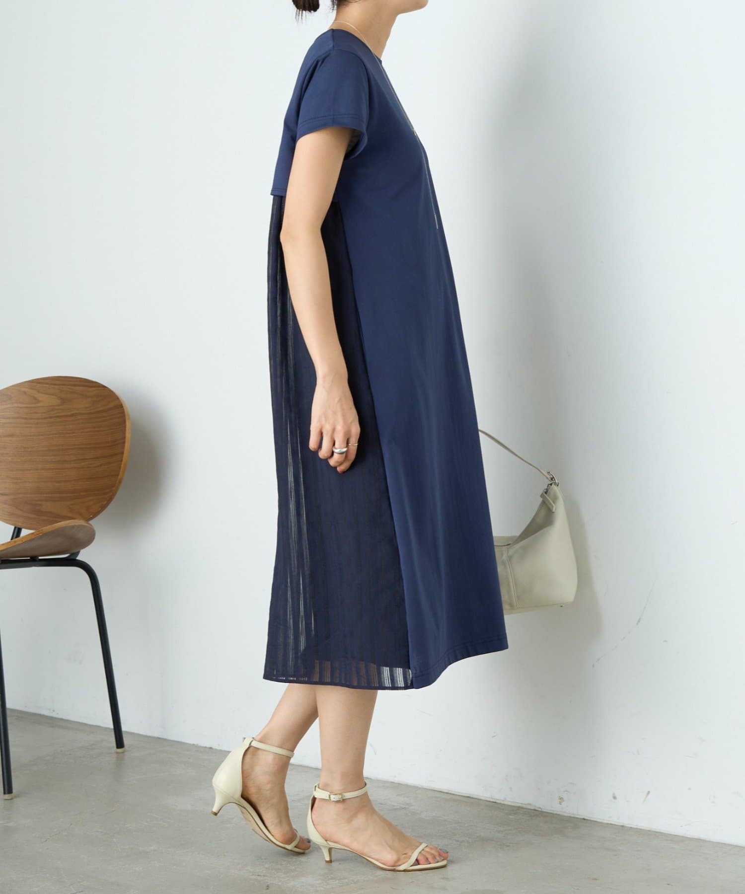 背中にはシアー感のあるストライプ生地をドッキングし、さりげなく華やかさをプラスした一枚です。