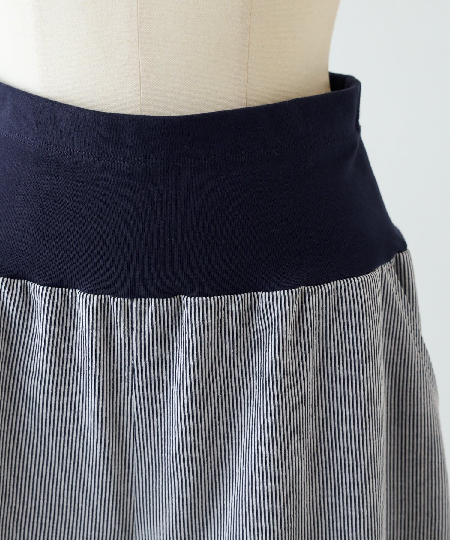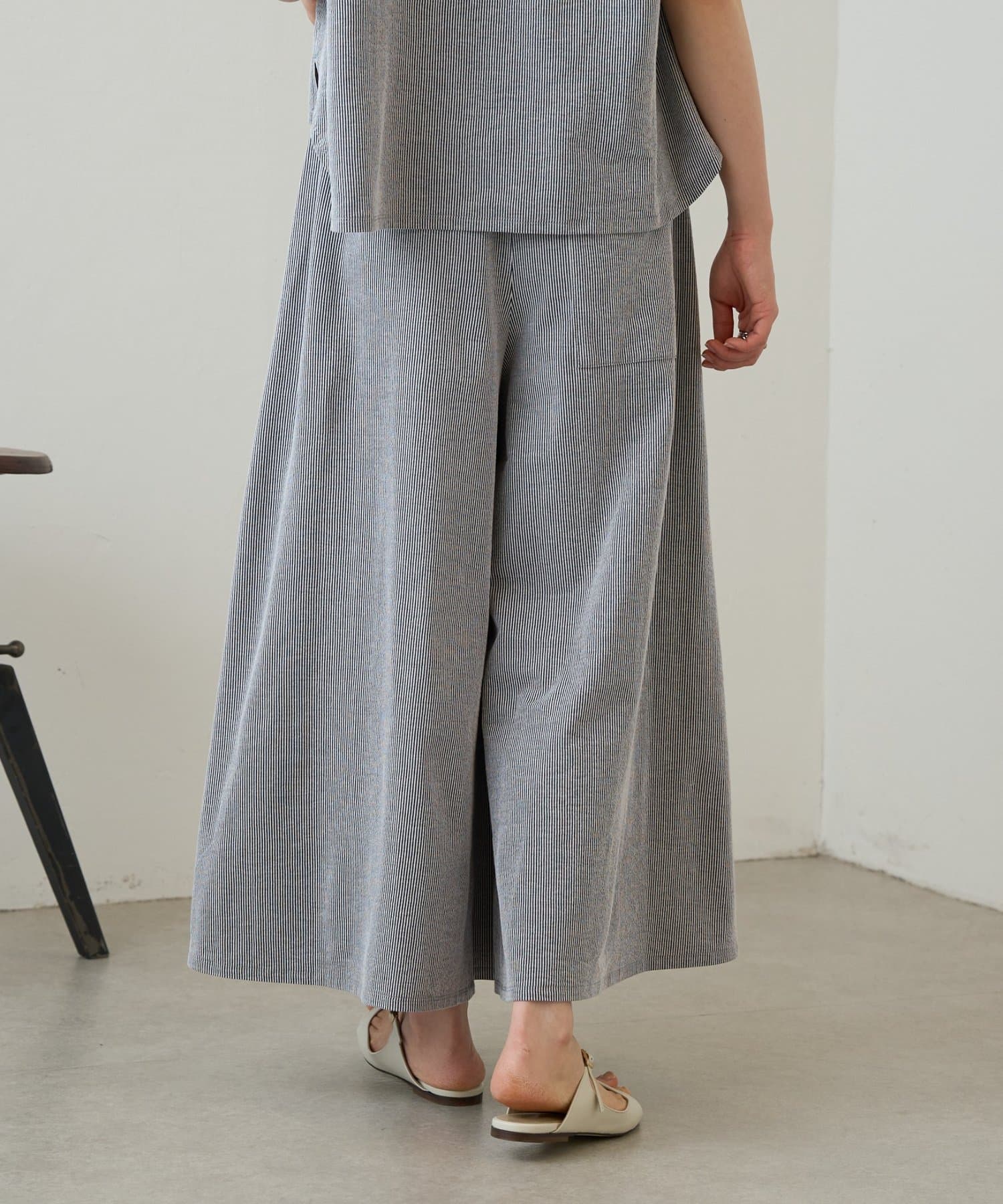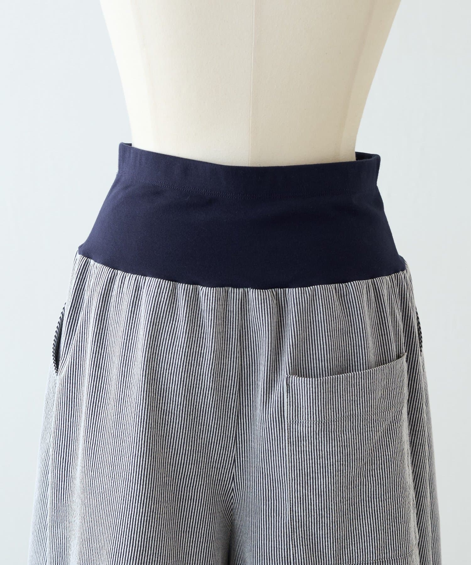 ウエストはリブ仕様で締め付け感が少なく、リラックスした履き心地。