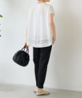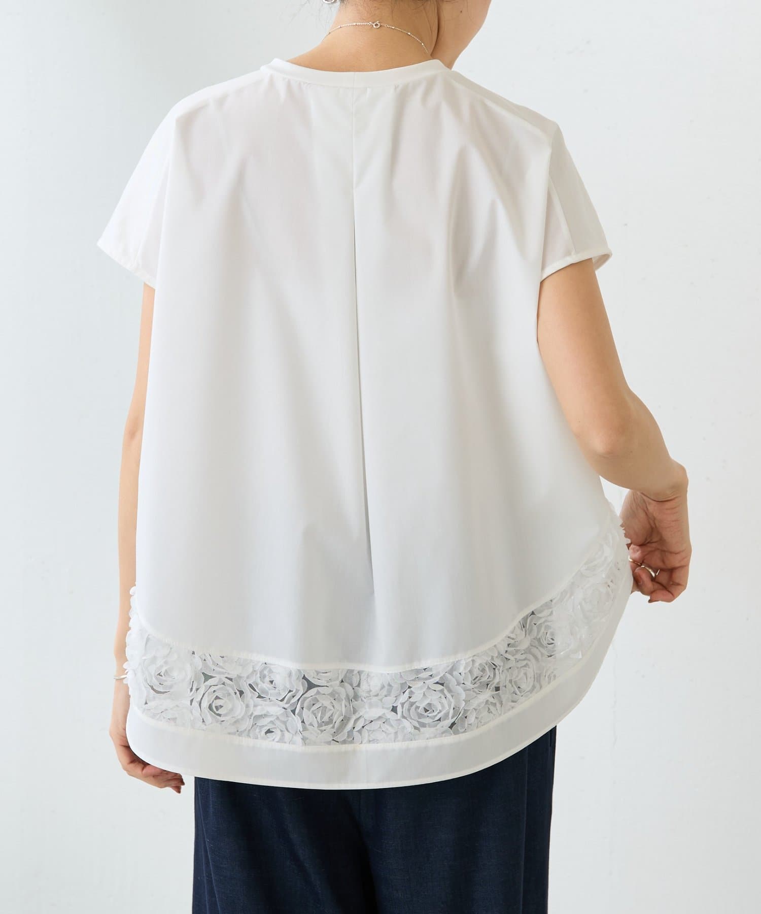 裾にあしらった花モチーフのフリル刺繍が目を惹くプルオーバー。