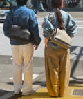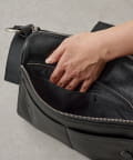 側面やショルダー裏をあえて合皮にすることで、色移りや汚れに強い仕様にしています。