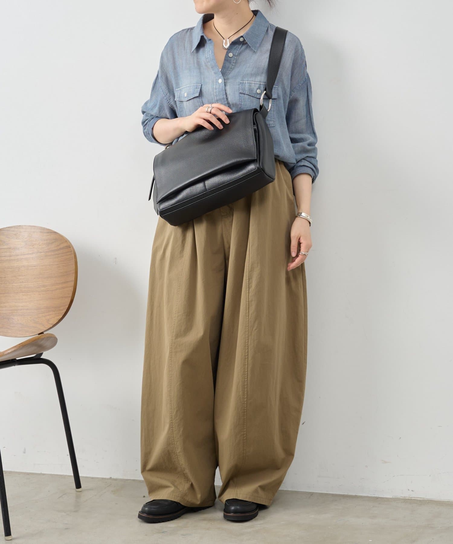 身軽さはそのままに、長財布・ペットボトル(500ml)・ポーチ・折りたたみ傘もしっかり入るラージサイズを作りました。
