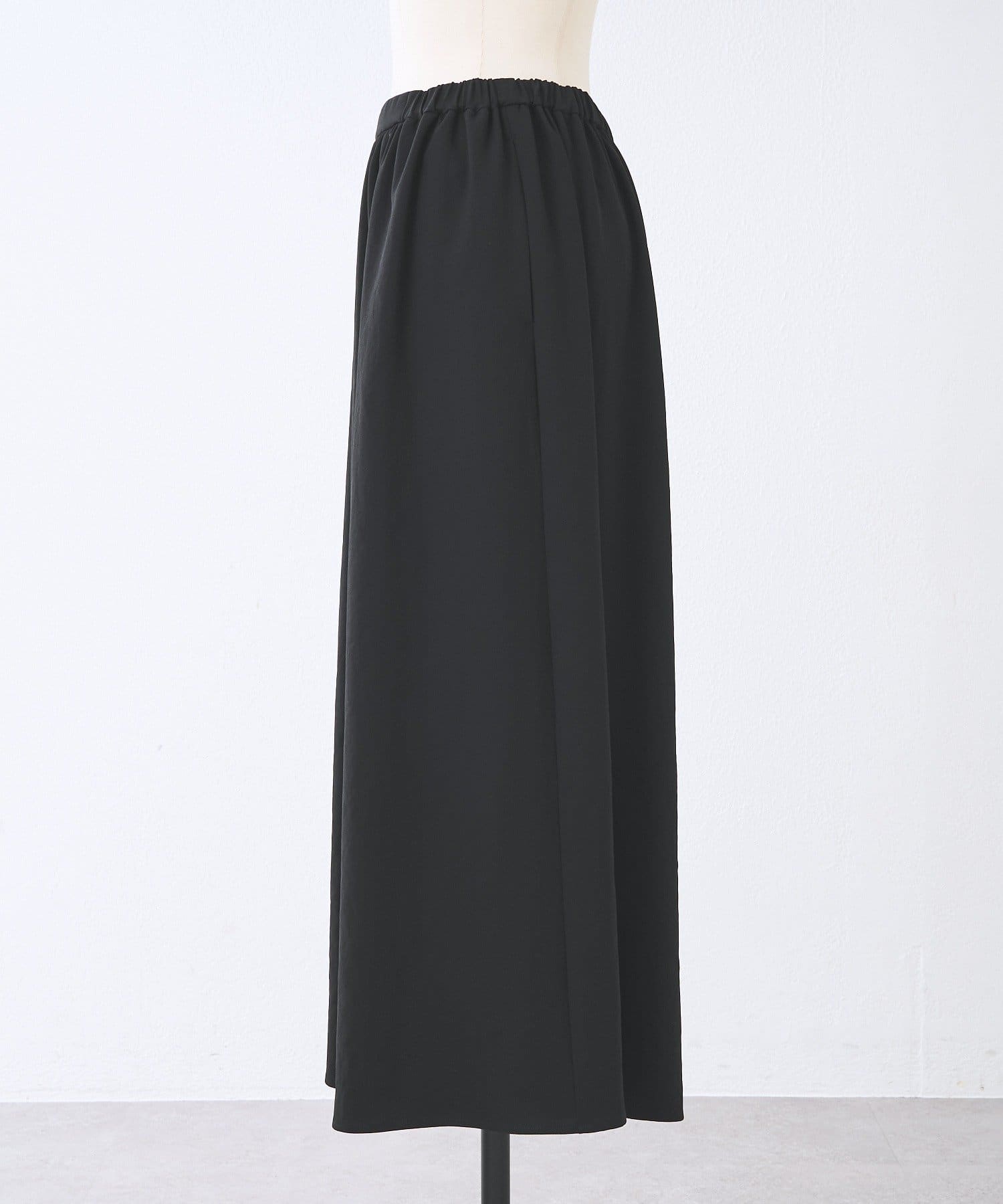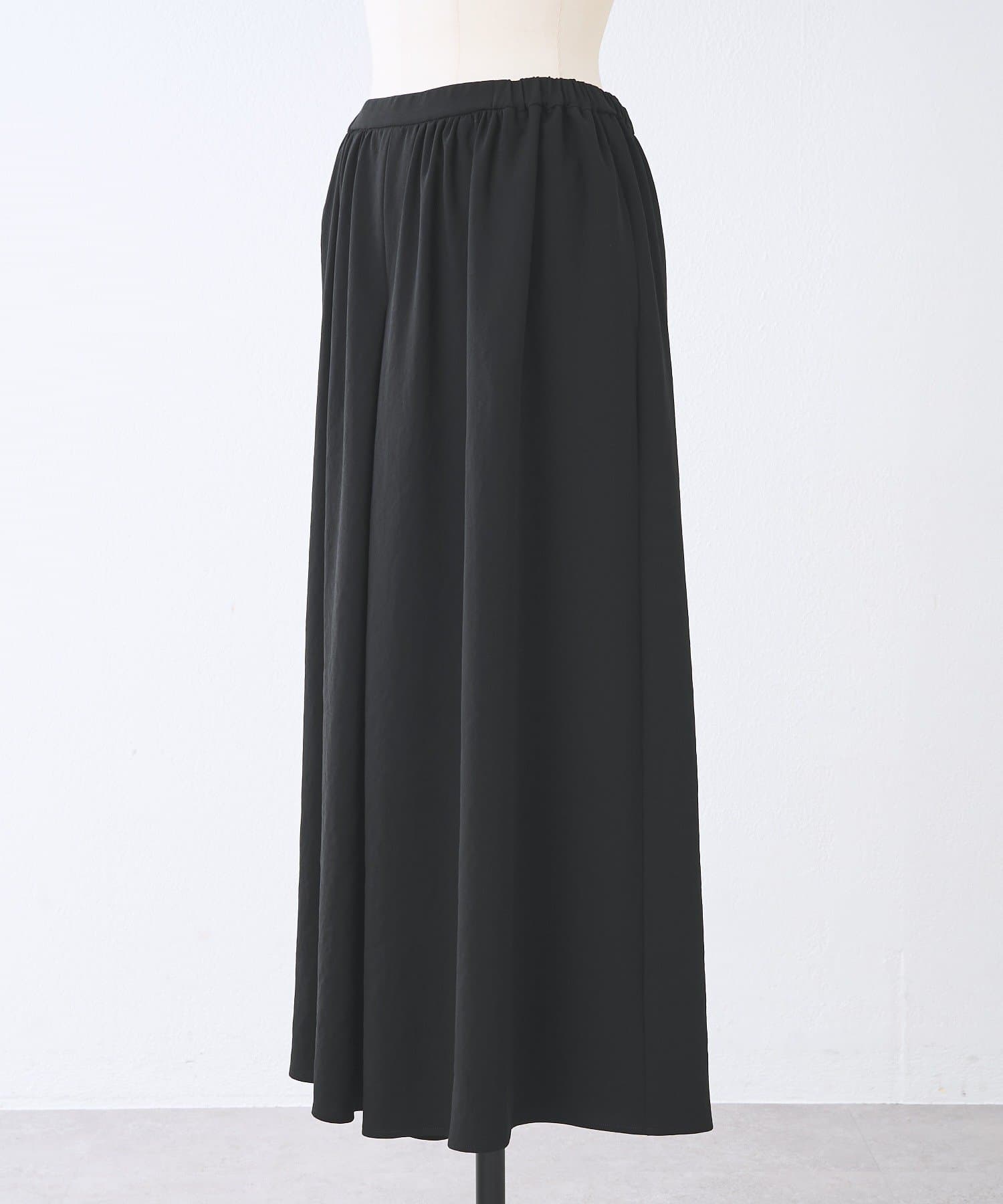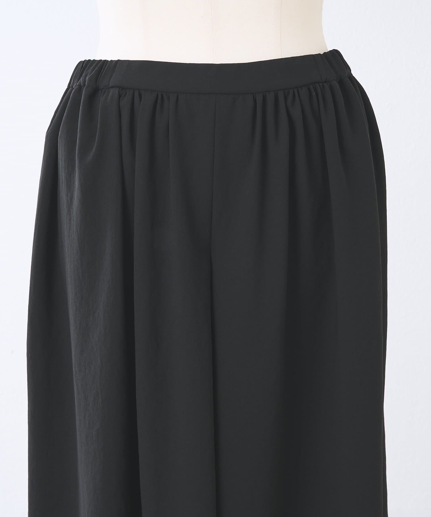 一見スカートのような、エレガントで上品なシルエットが魅力のギャザーパンツ。