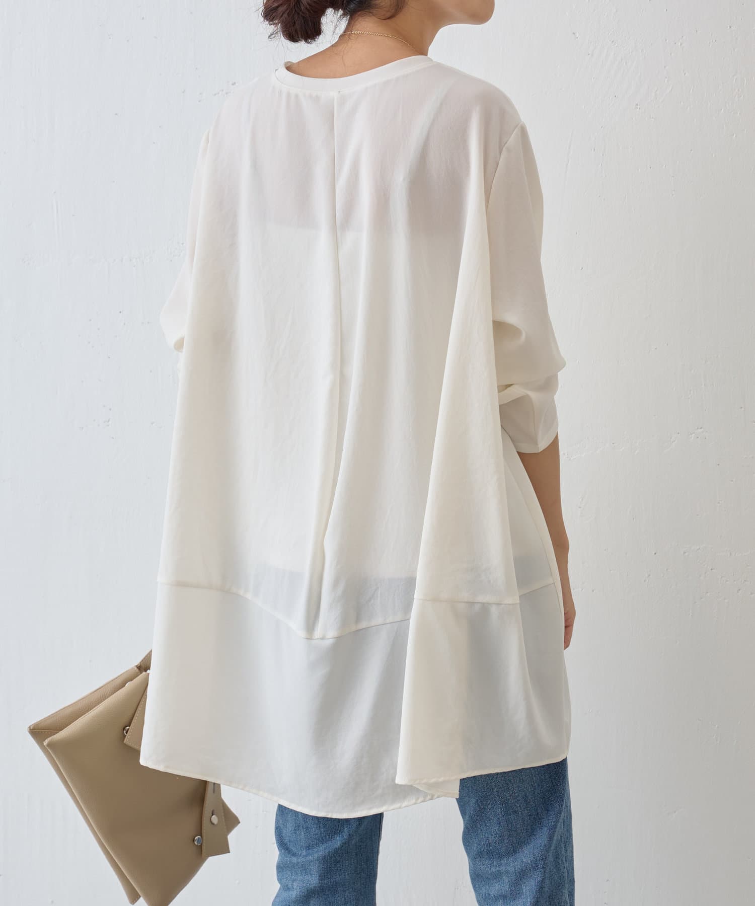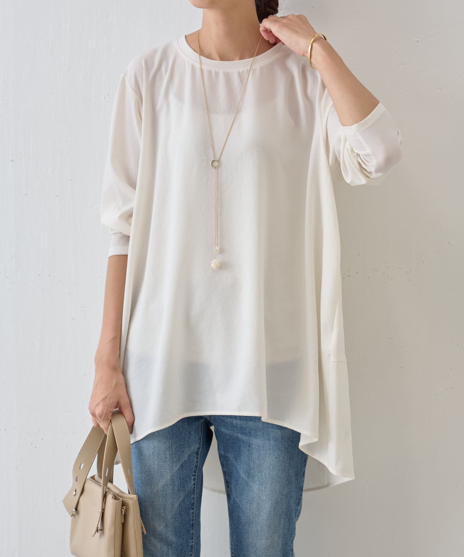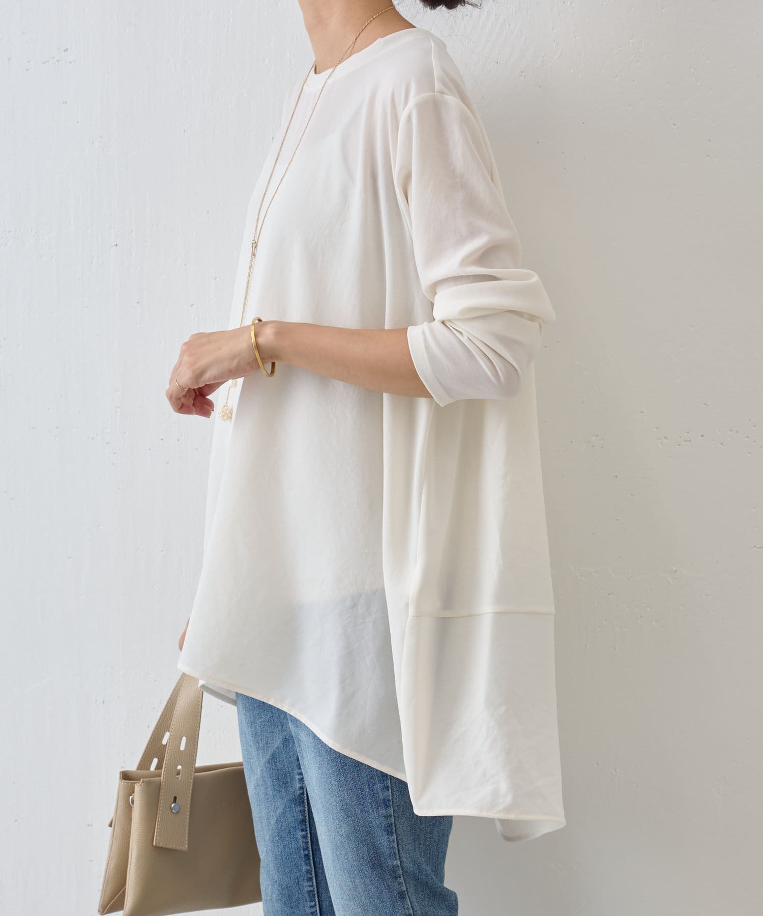 前後差のあるシルエットで後身頃は少し長くなっており、気になるヒップラインをカバーしてくれるデザイン。