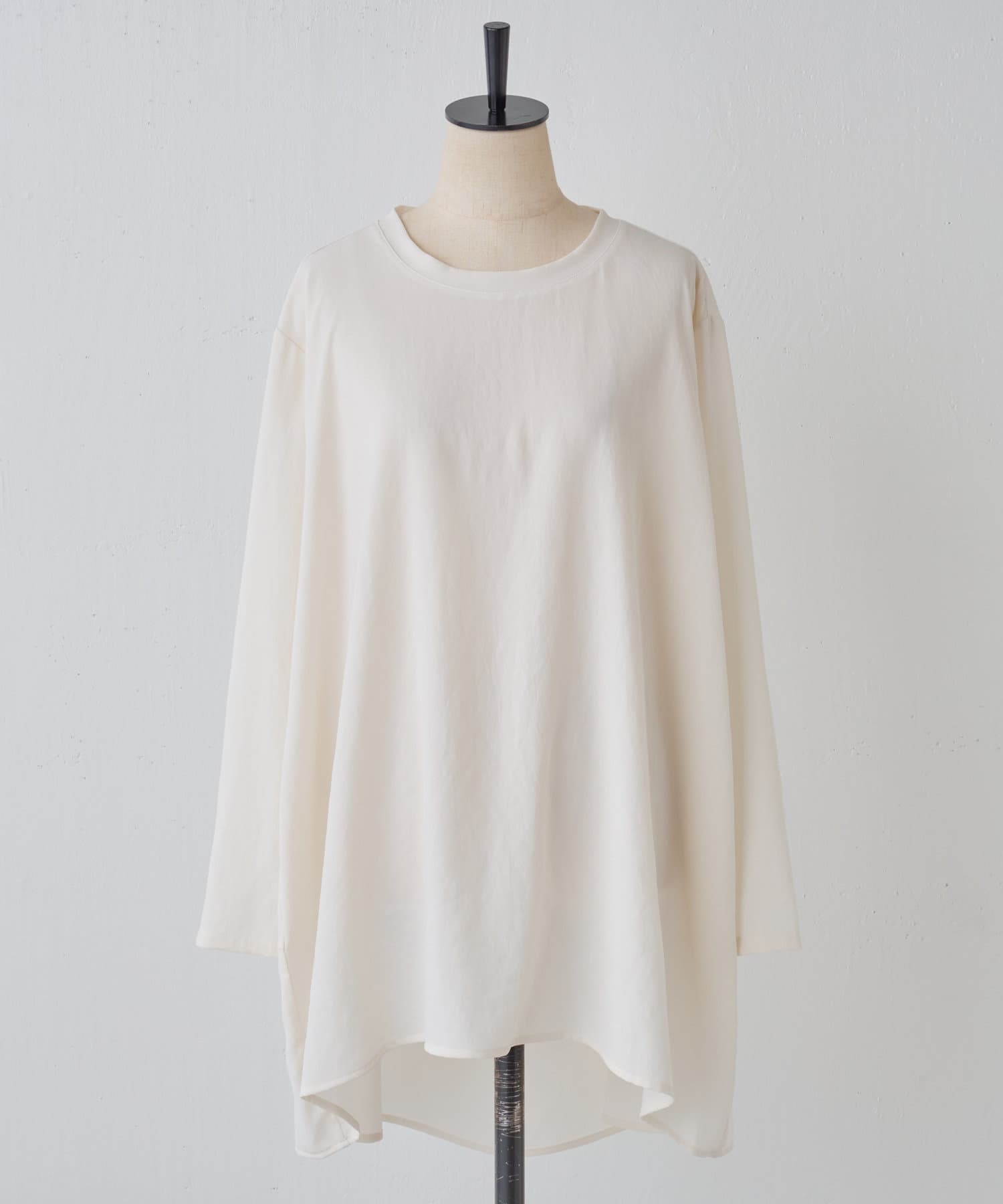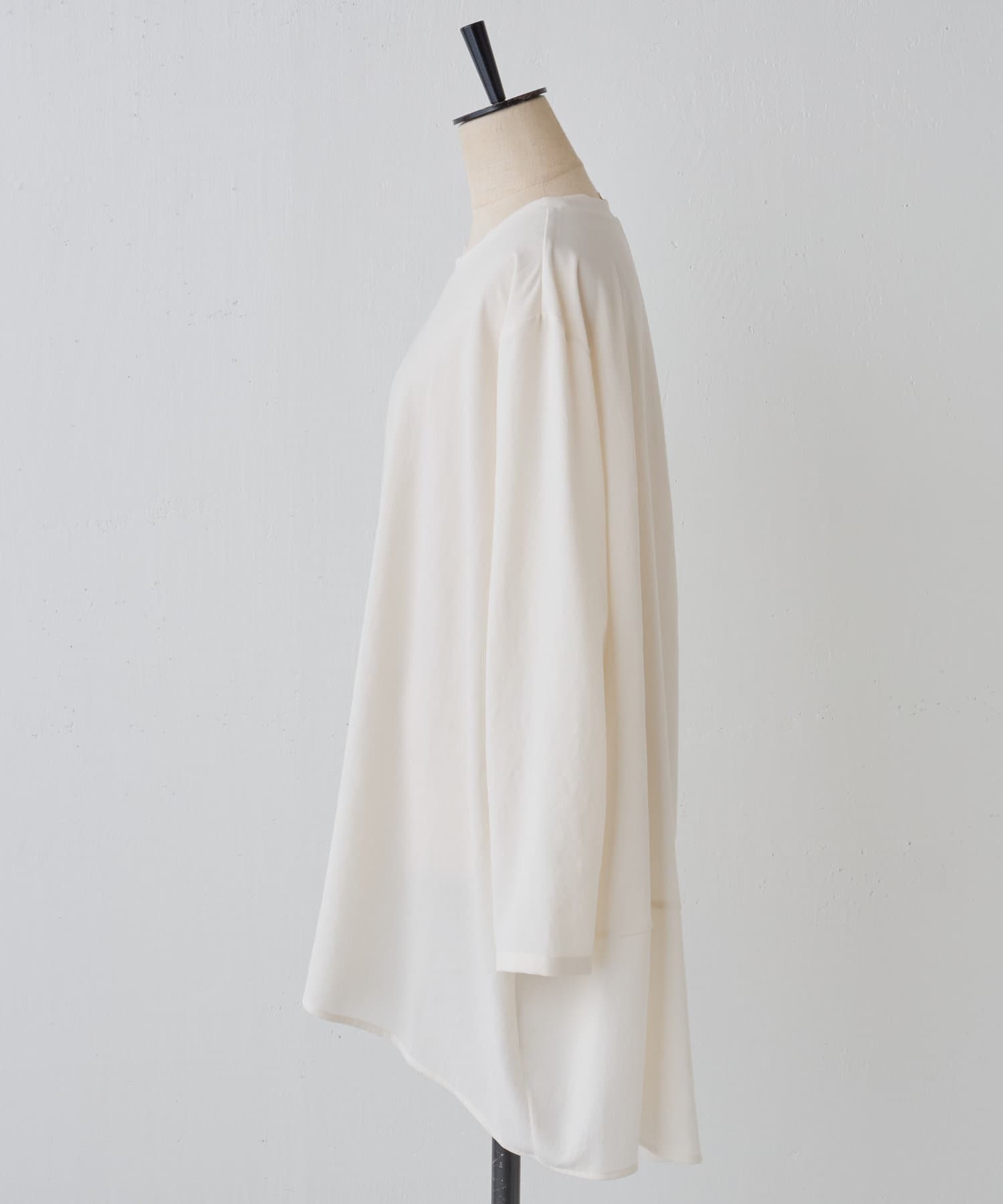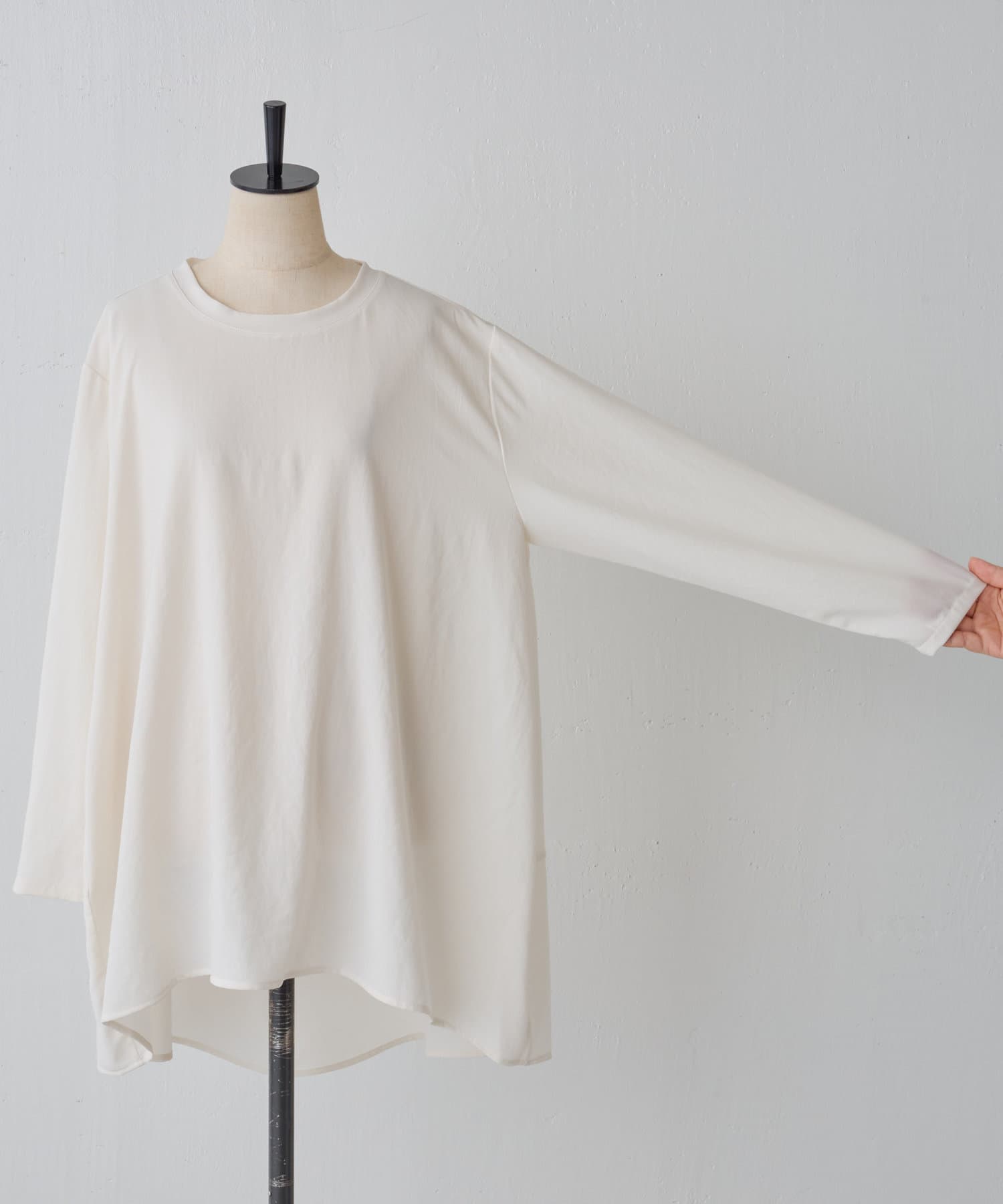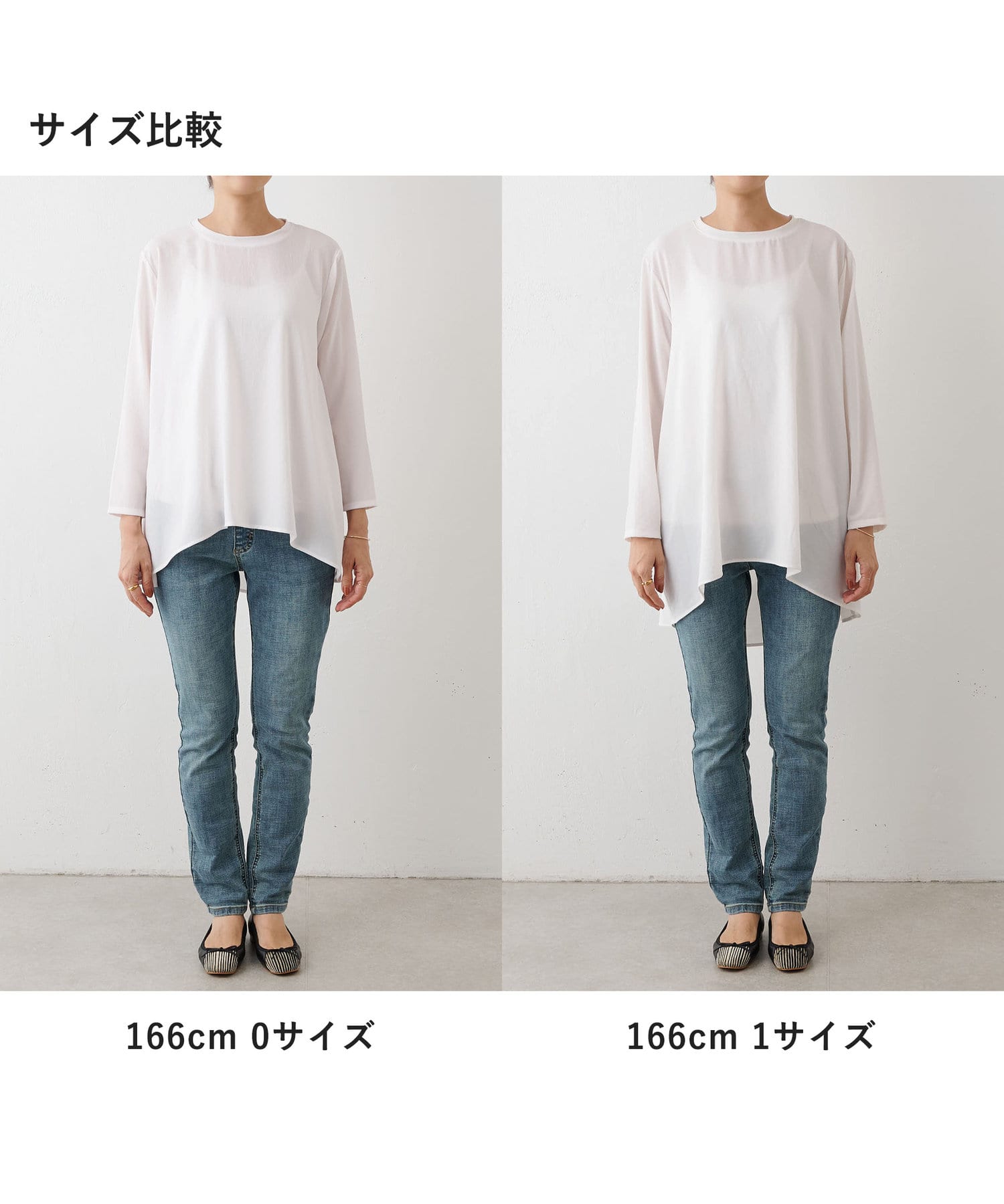 前後差のあるシルエットで後身頃は少し長くなっており、気になるヒップラインをカバーしてくれるデザイン。