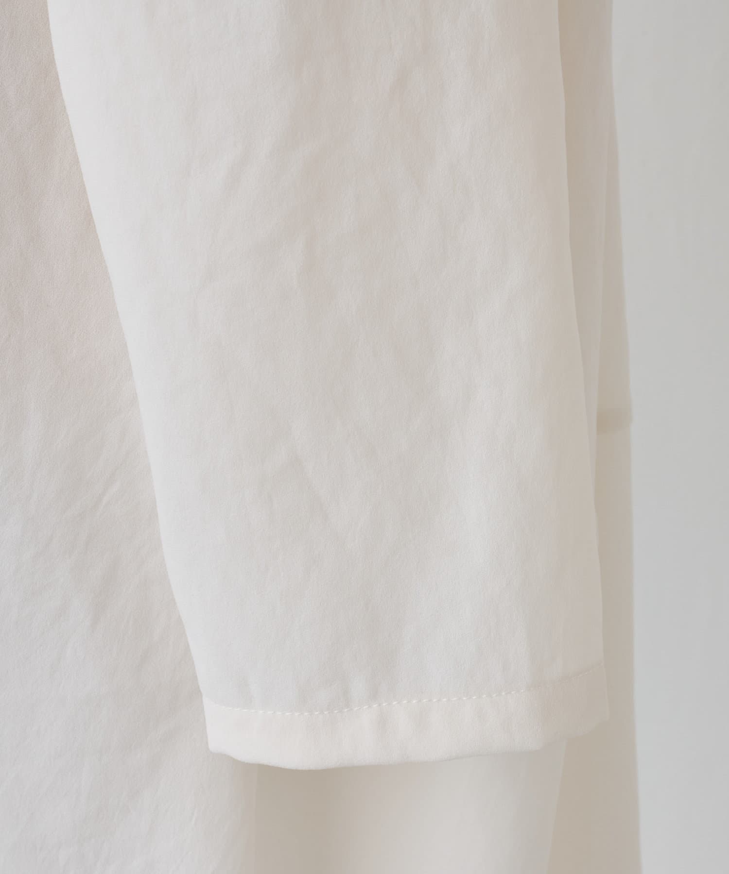 薄手のジョーゼットのような生地できちんと感がありつつも、ストレッチが効いていてTシャツ感覚で着られます。