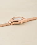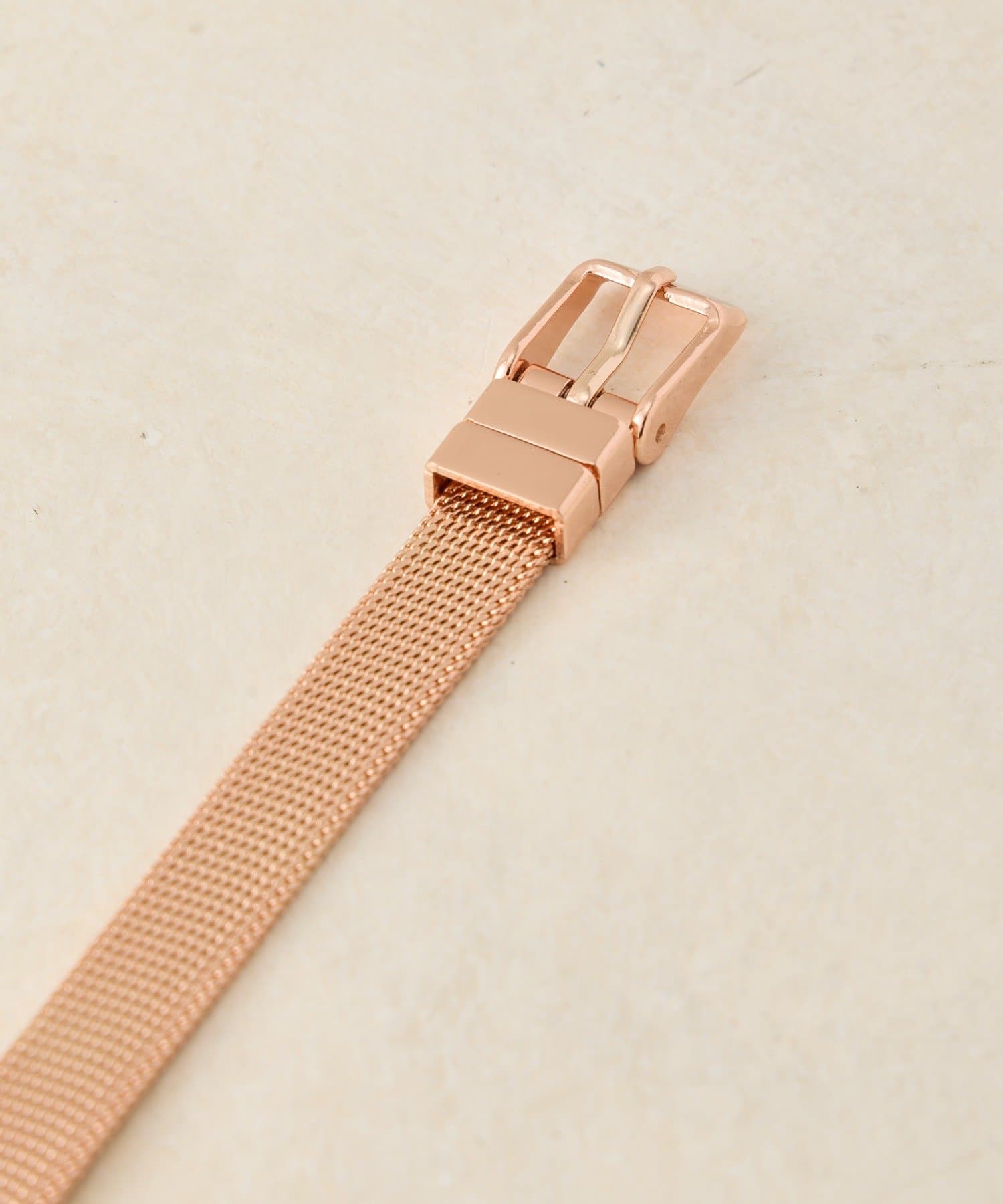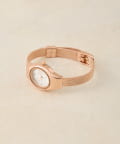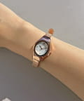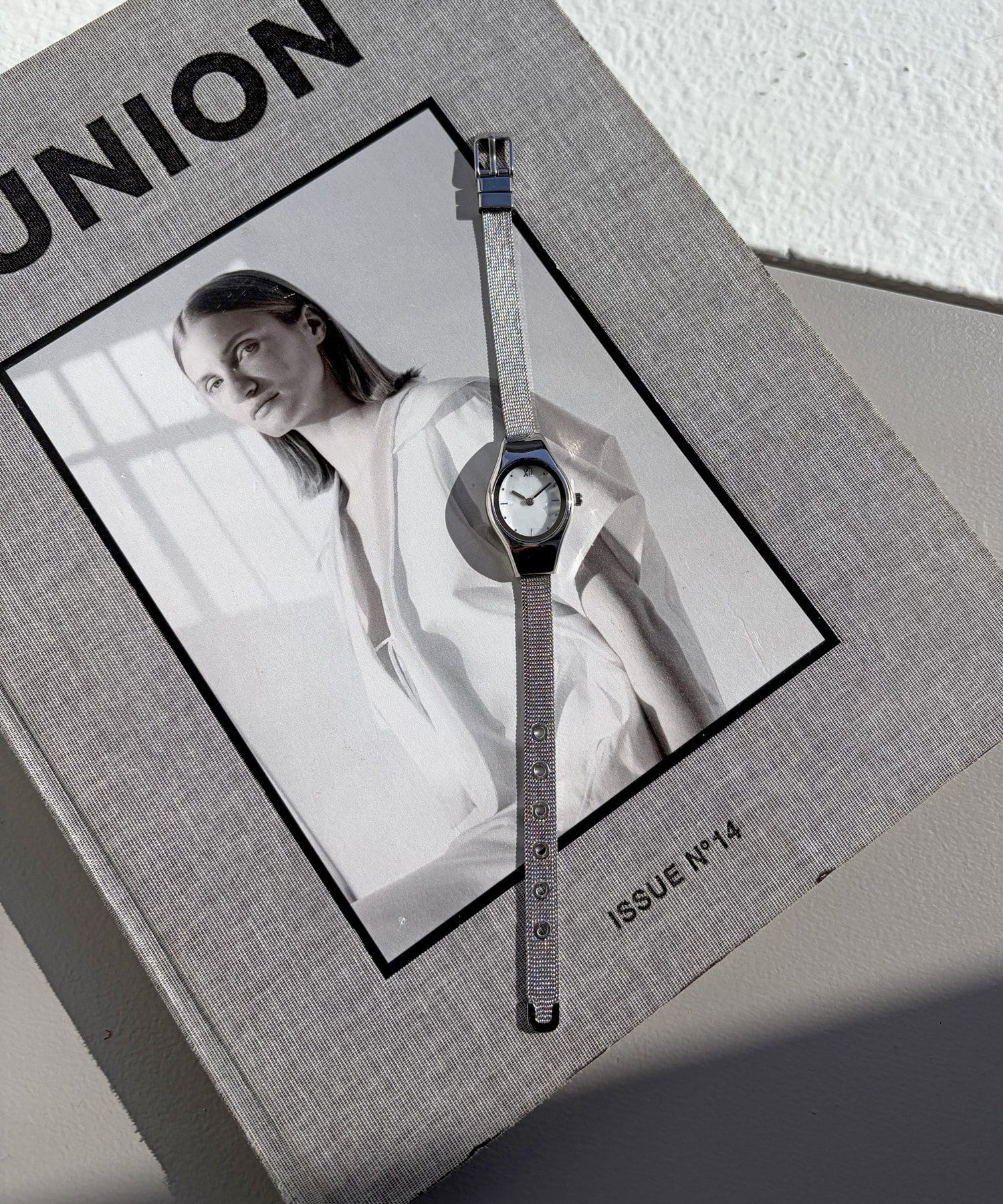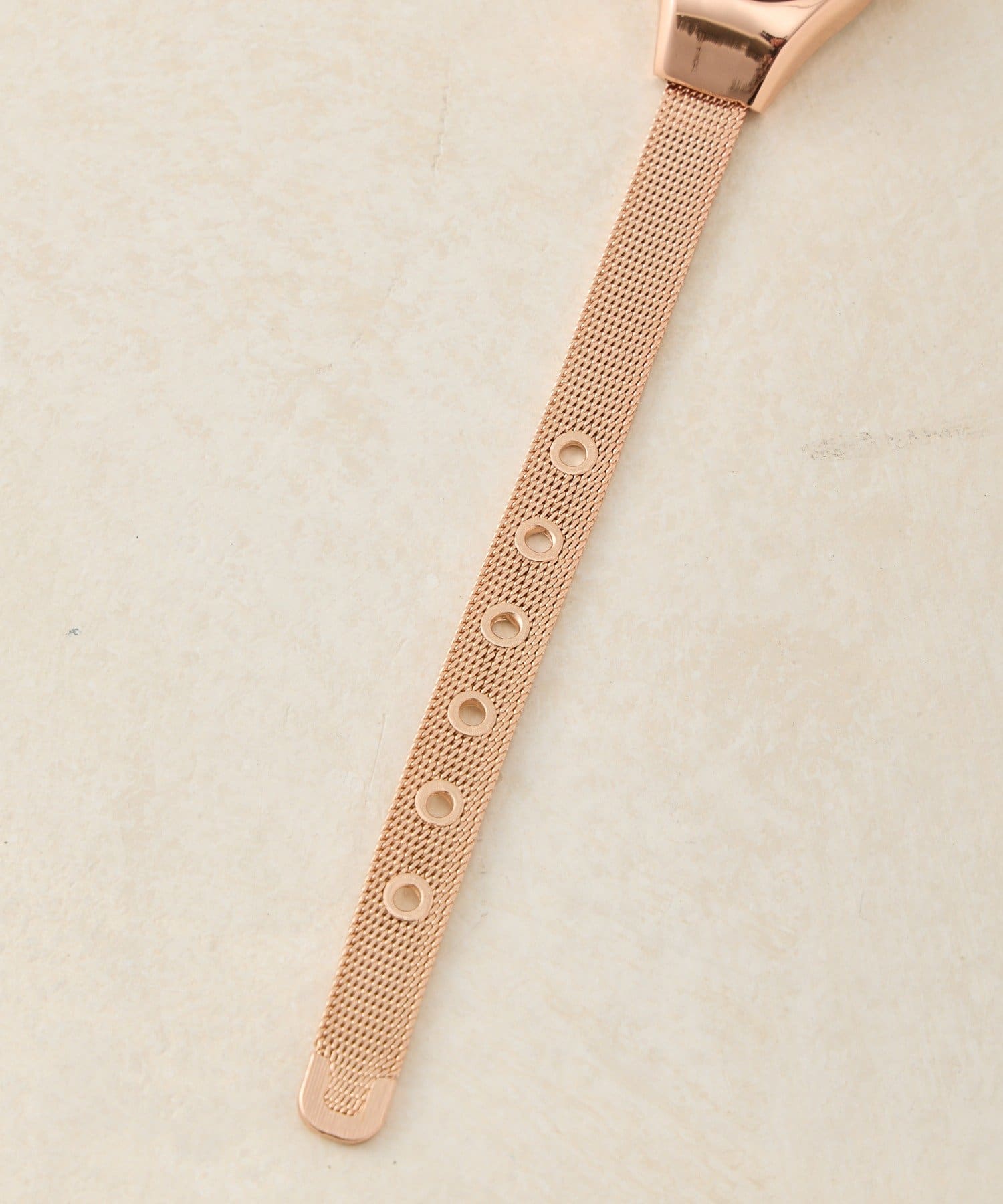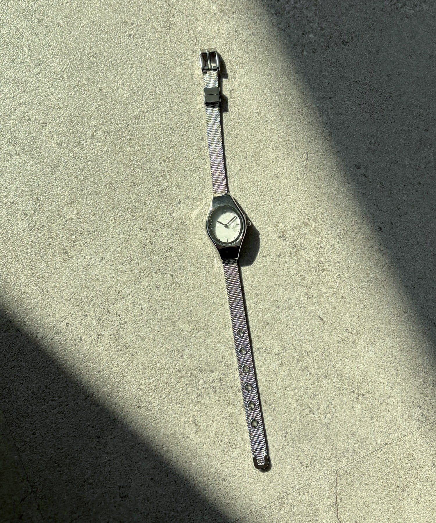 ころんとした形とスタイリッシュなメッシュベルトがレディライクな腕時計。