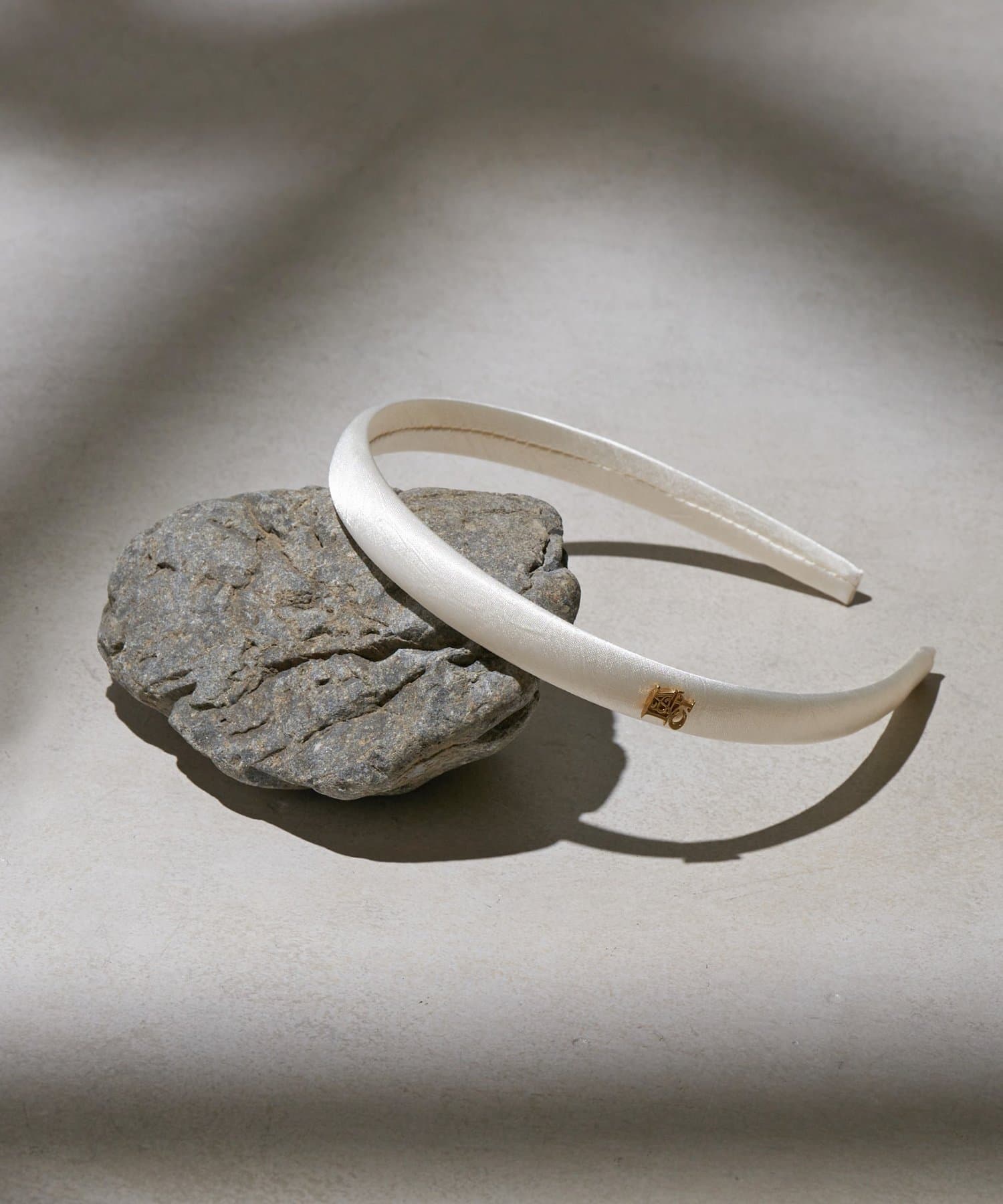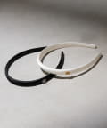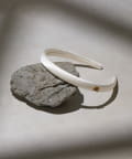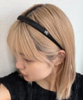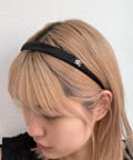 サイドのモチーフがさりげないアクセントになるサテンカチューシャ