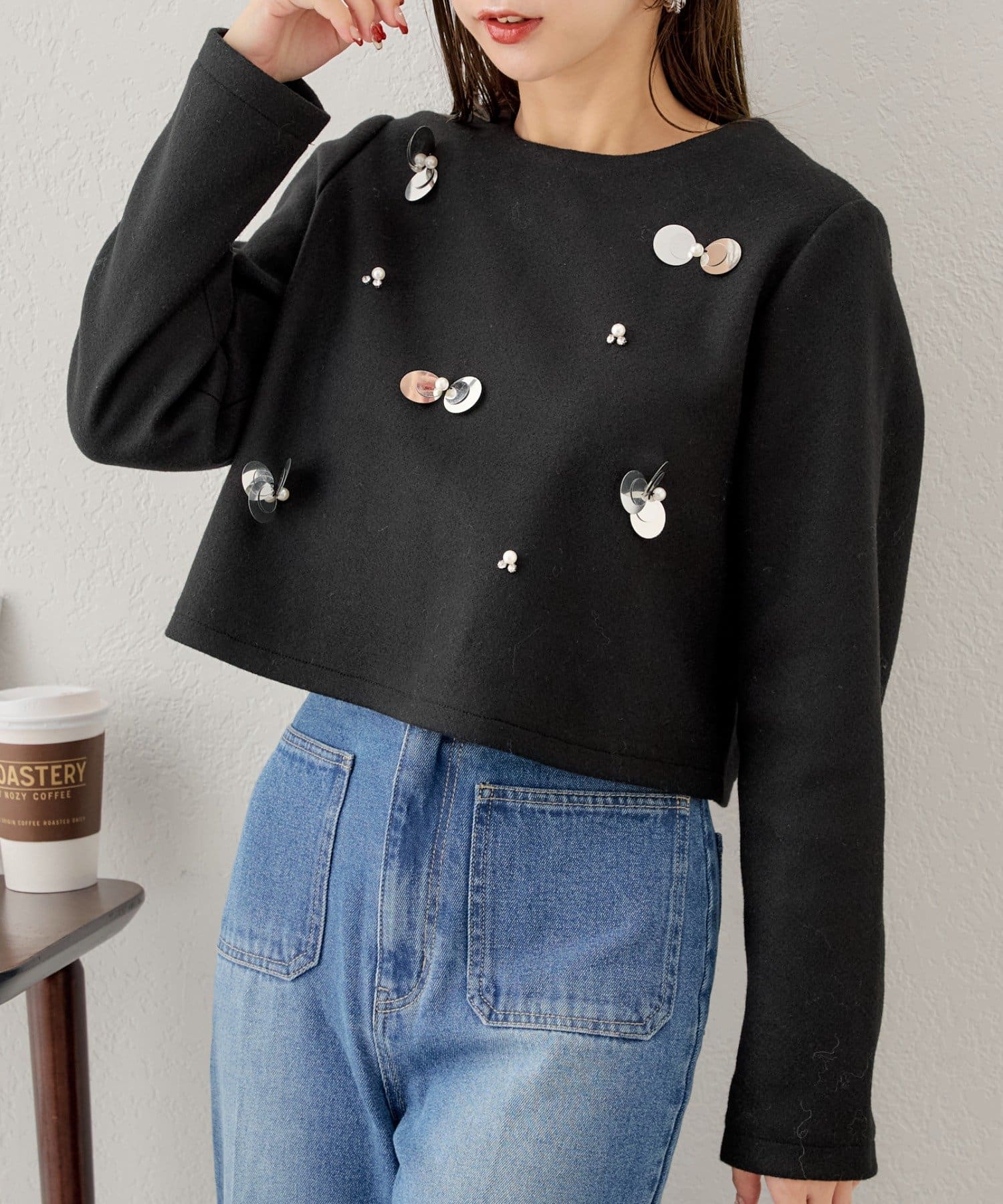 OUTLET(アウトレット) 【Chico】襟取り外しビジュートップス