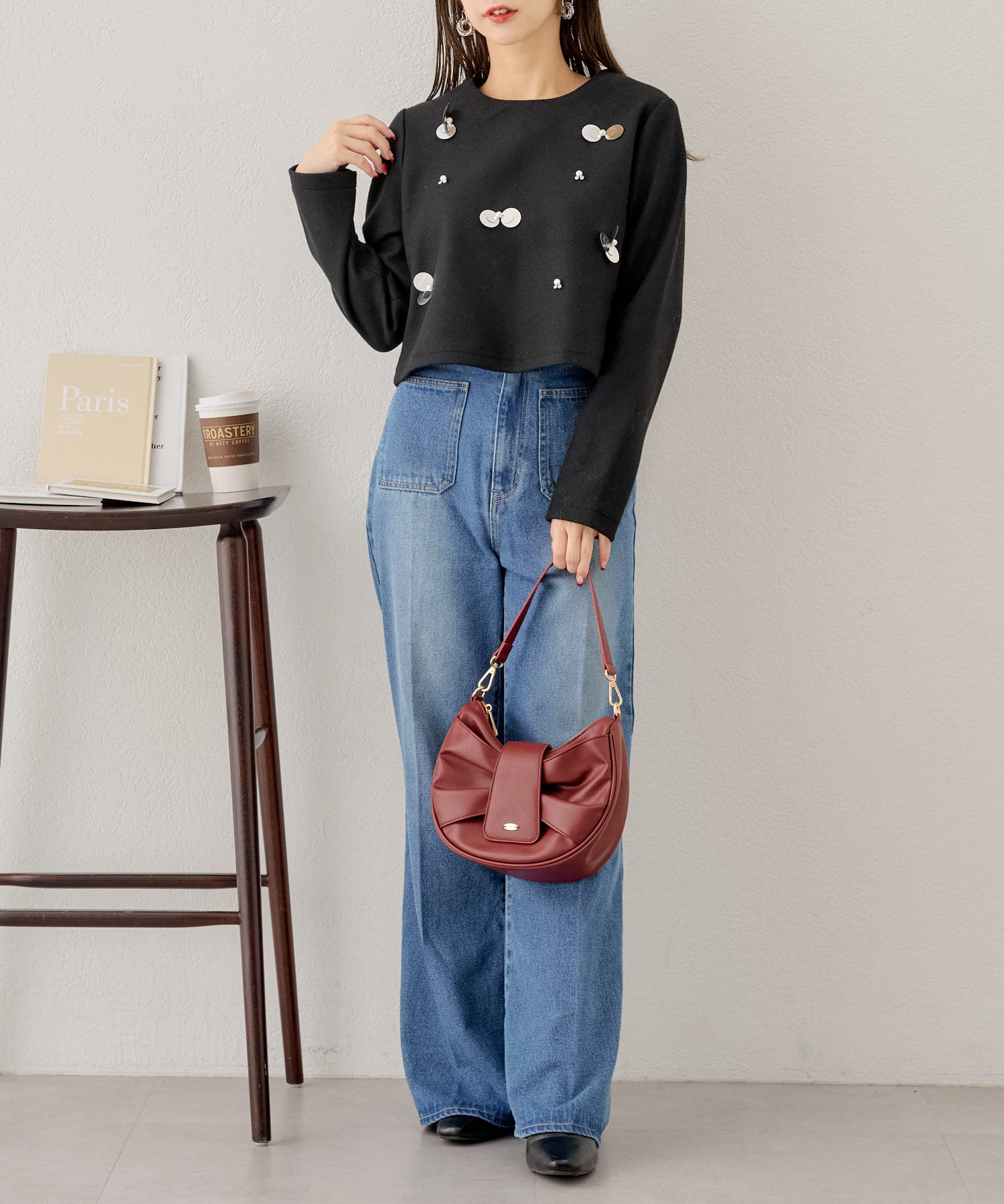 TOP > OUTLET > レディース > トップス > Tシャツ/カットソー > 【Chico】襟取り外しビジュートップス