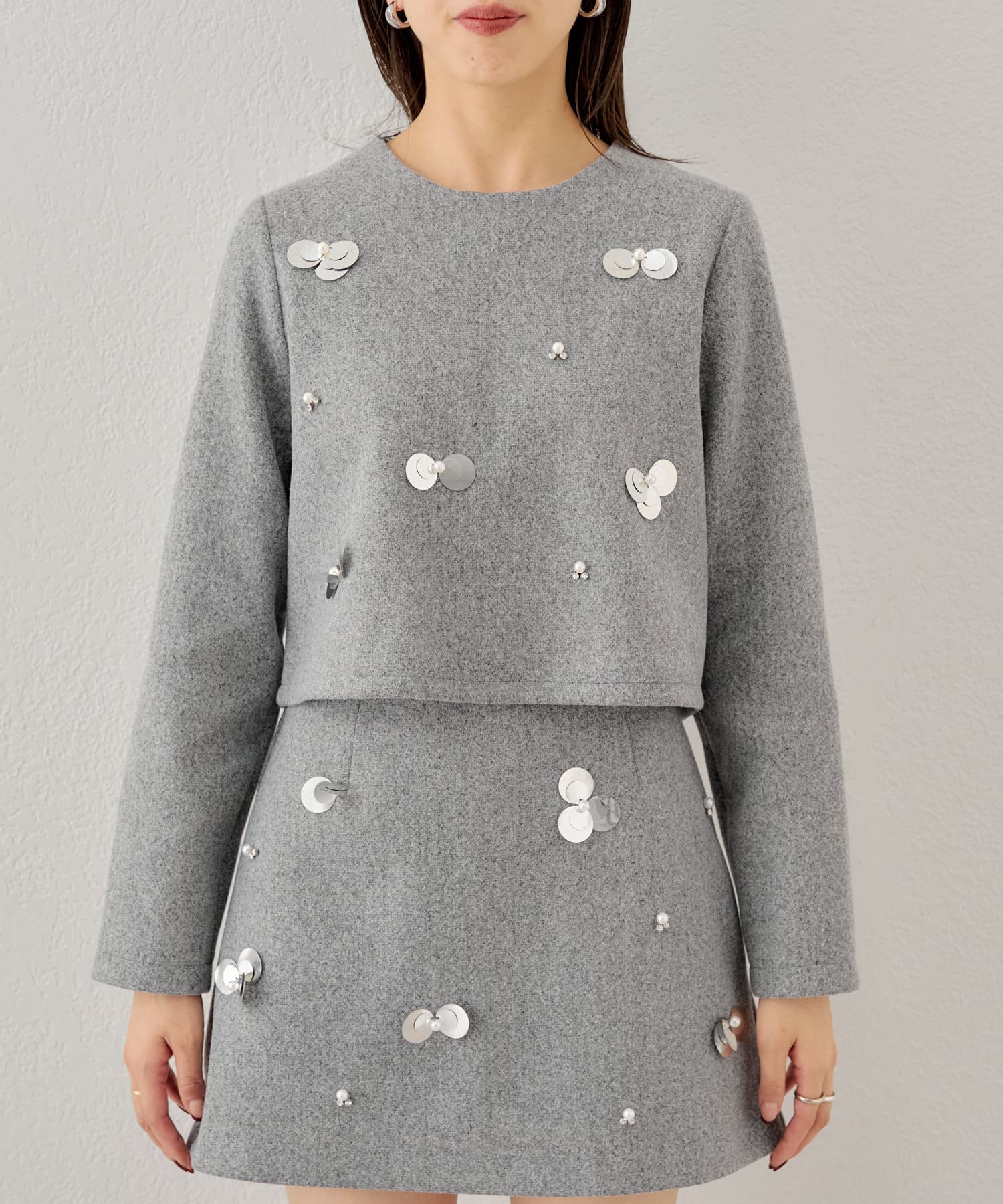衿を取り外せる2WAYのビジューをあしらった綺麗めトップス♡
