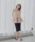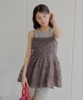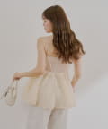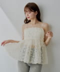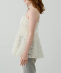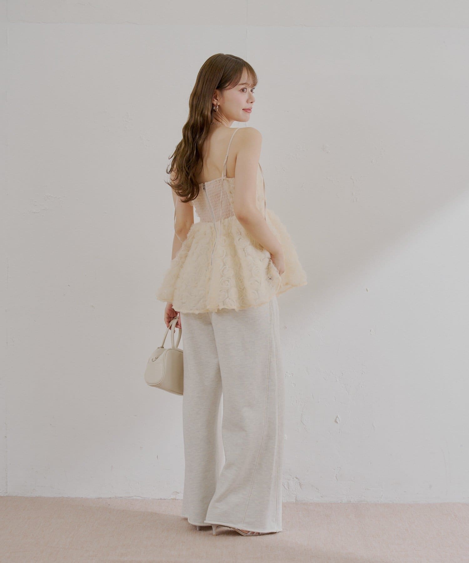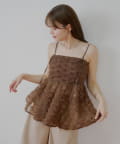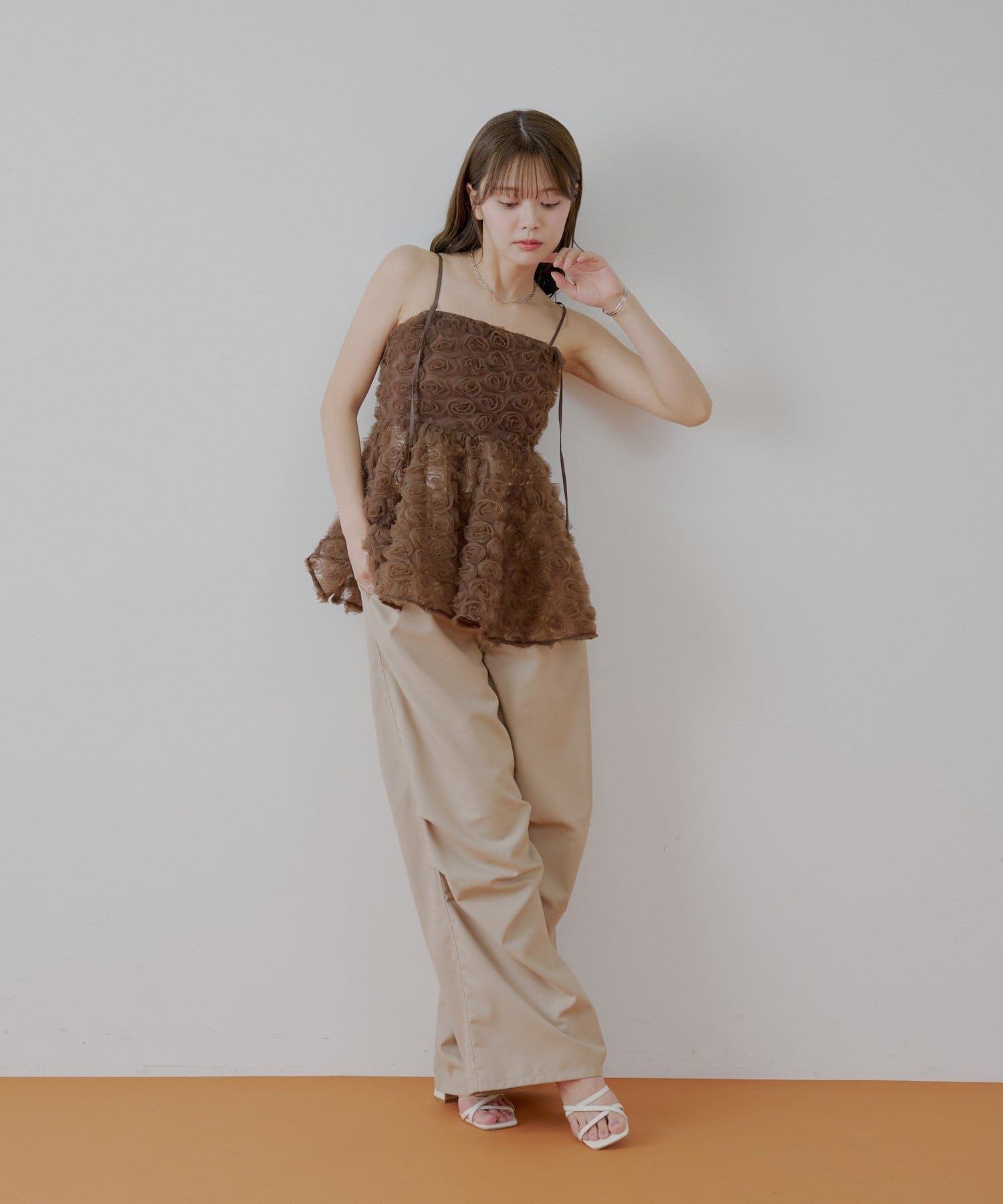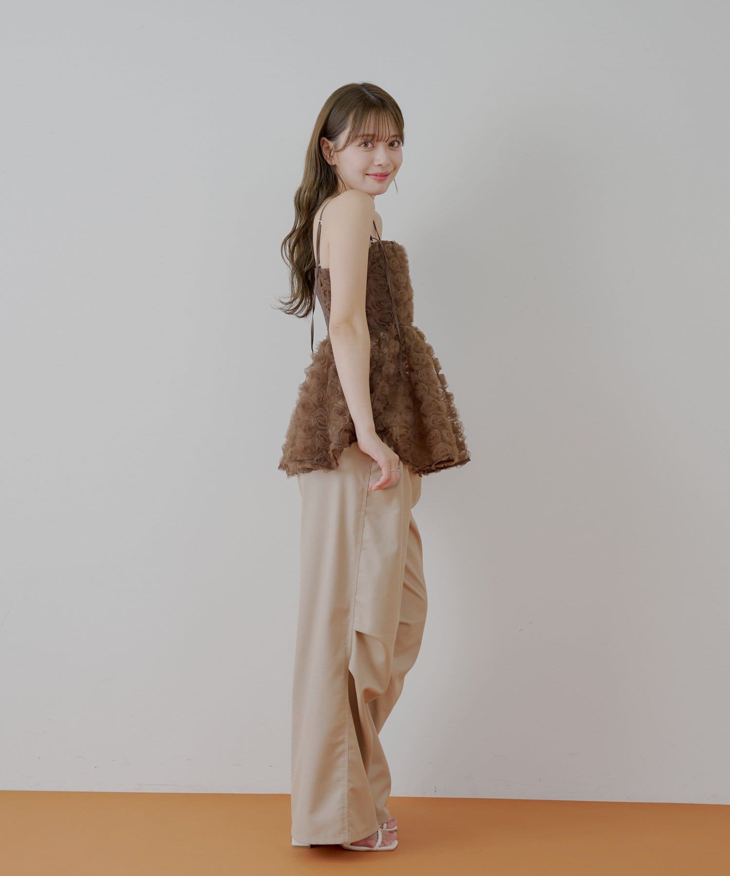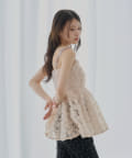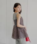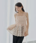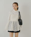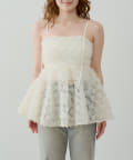 晩夏にもおすすめ【SALON by Chico】ローズチュールペプラムブラウス