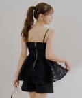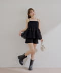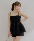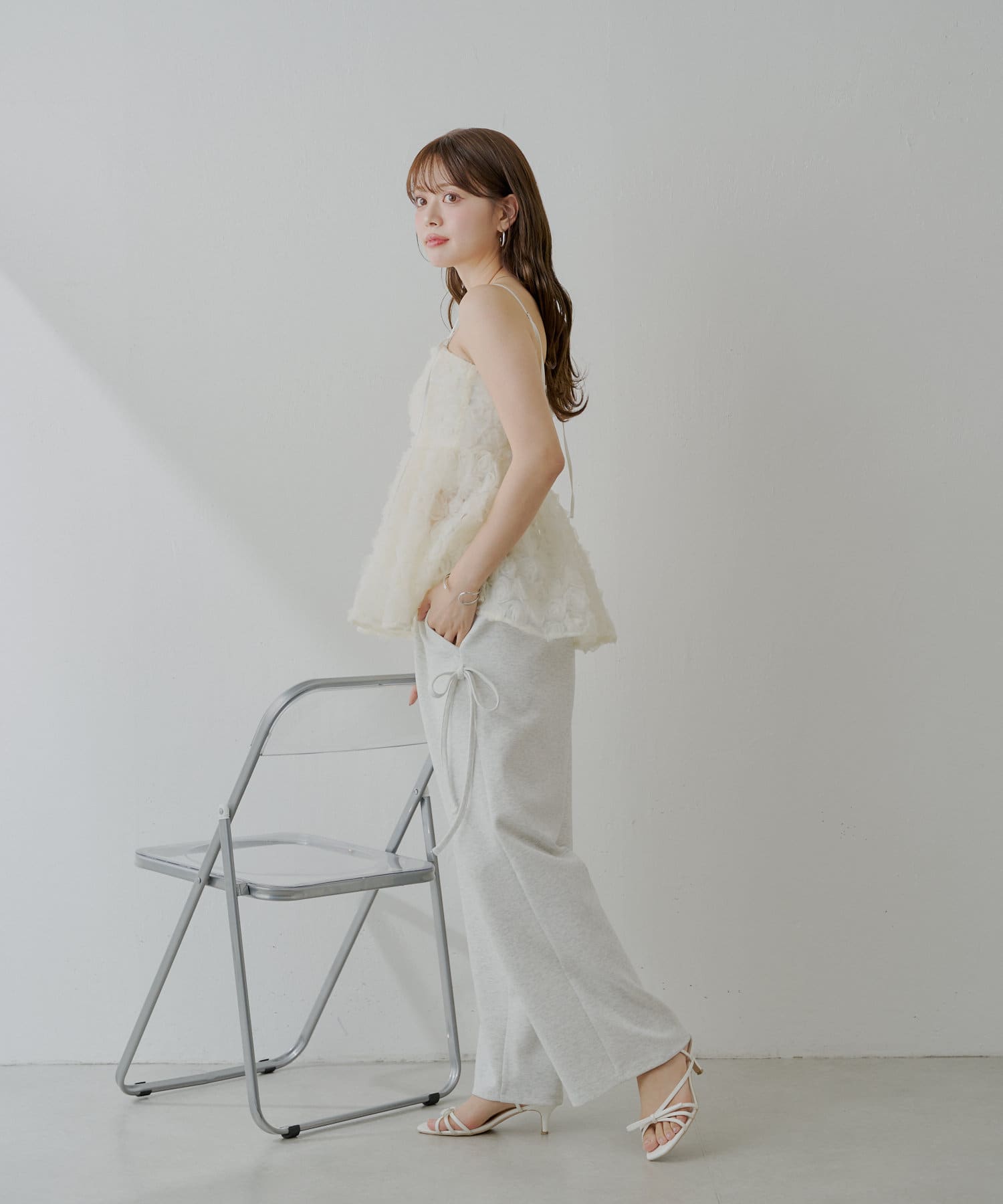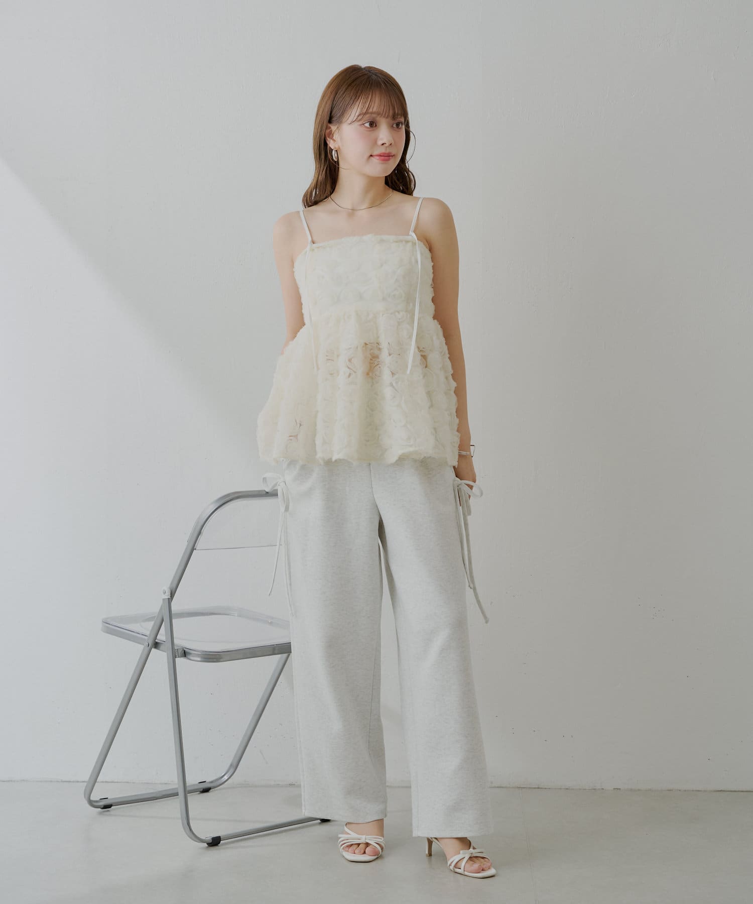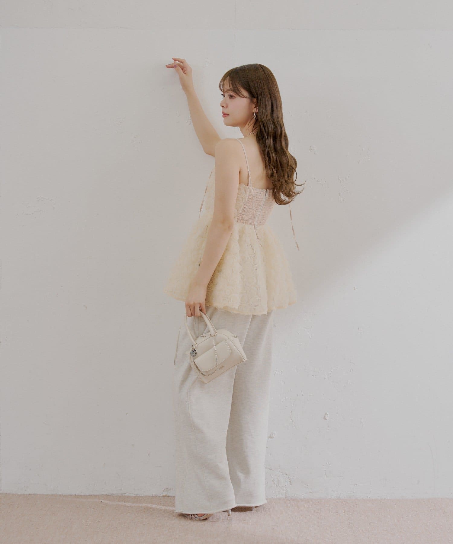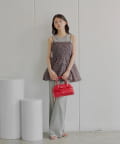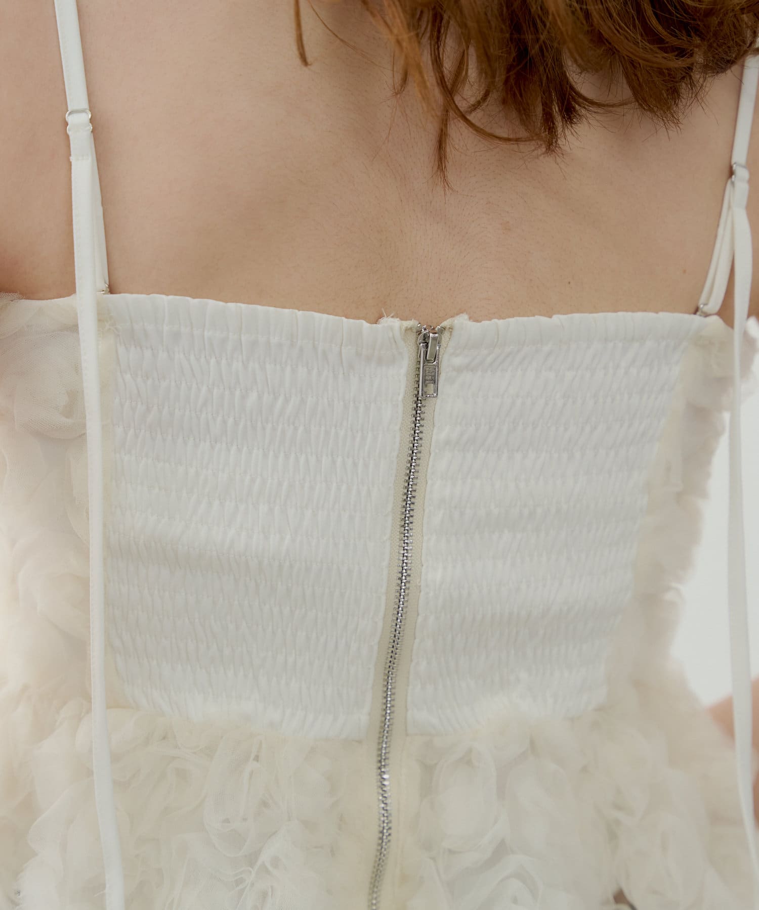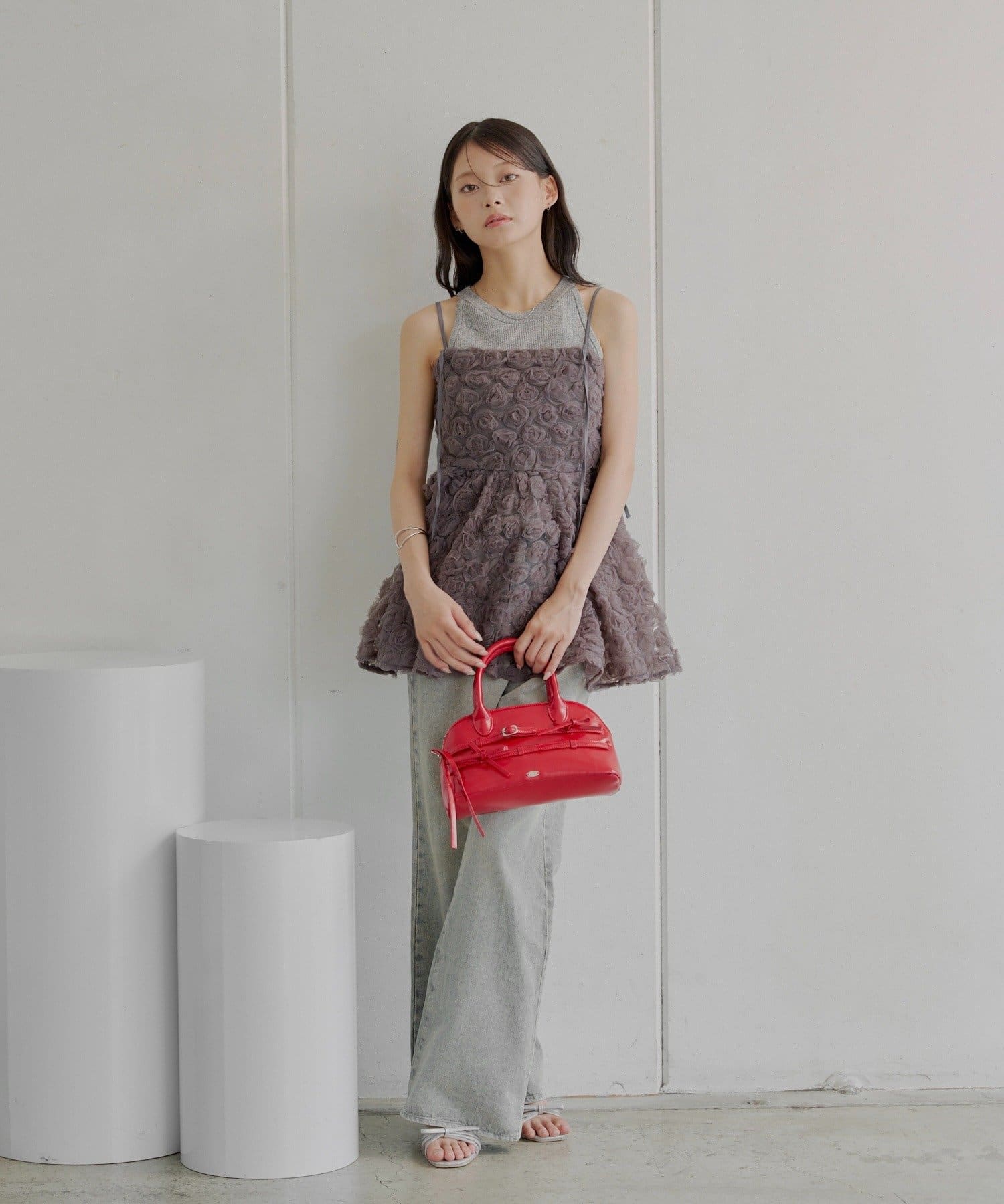 ・肩紐のリボンは、長さ調整可能でスタイリングのアクセントにも。