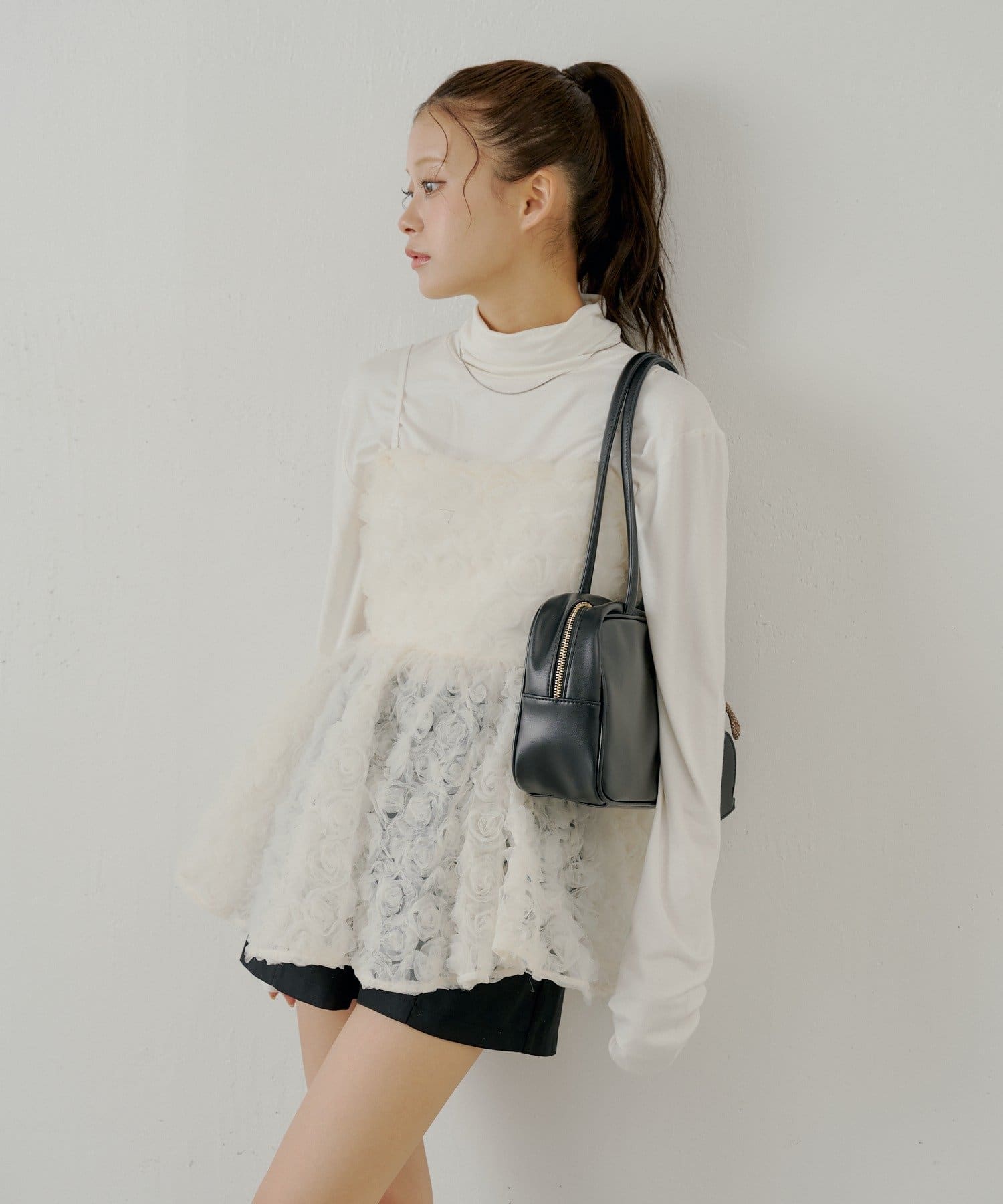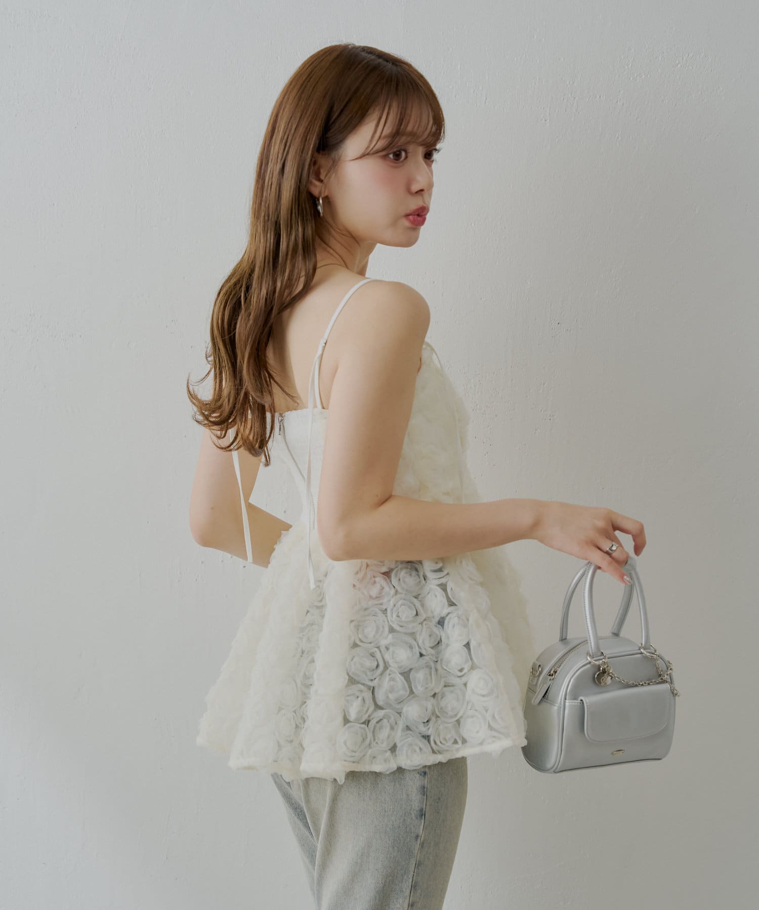 ・立体感のあるローズモチーフが、華やかさと上品さを演出してくれます。