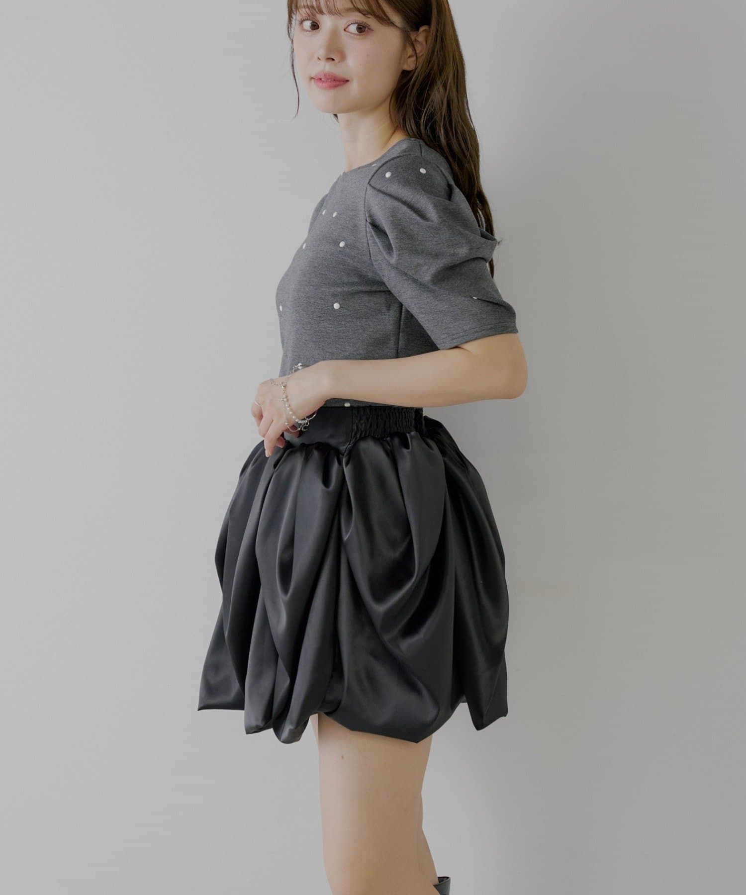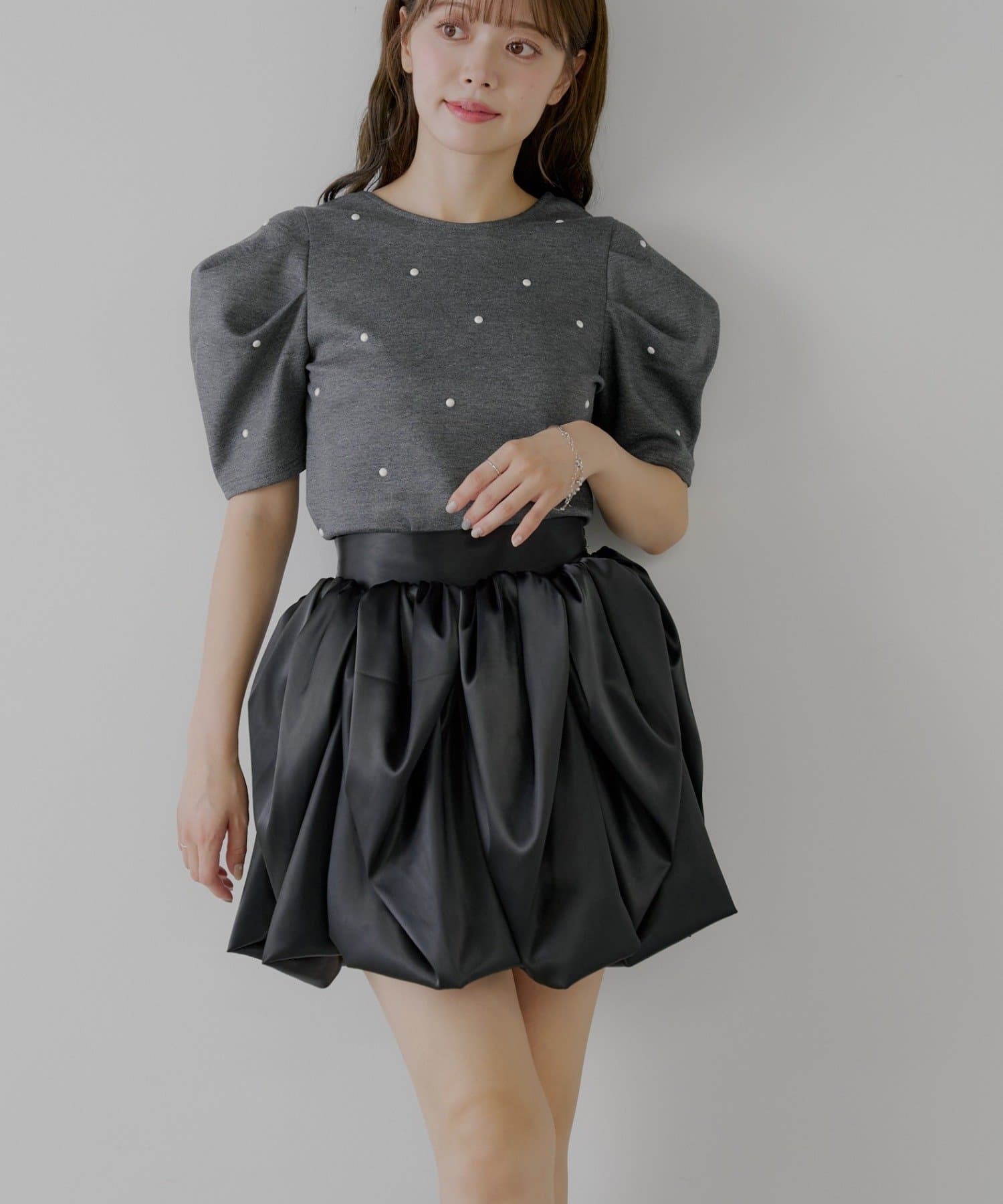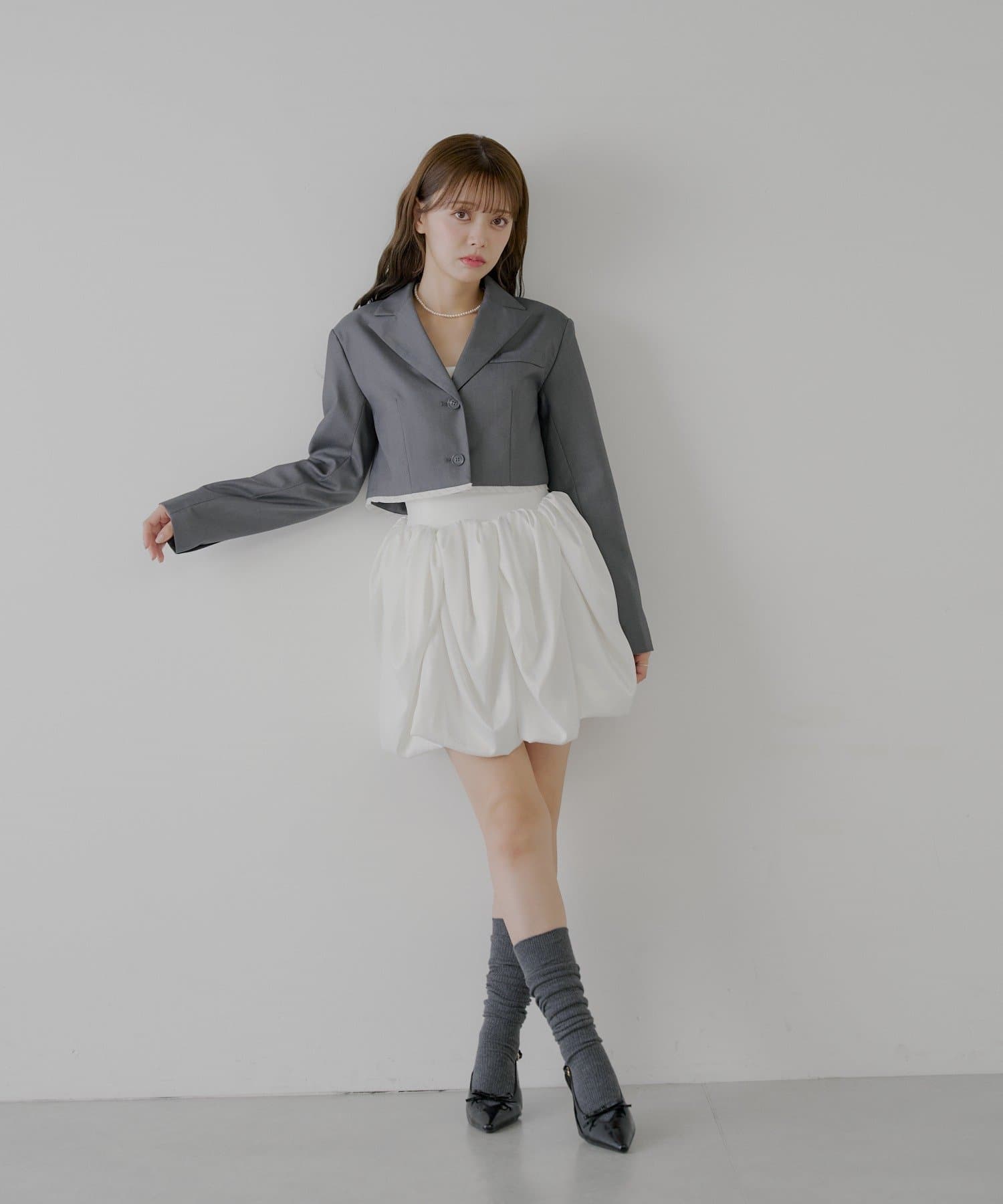 まるでチューリップの花びらのような、ふんわりとしたボリューム感が魅力のフレアスカート