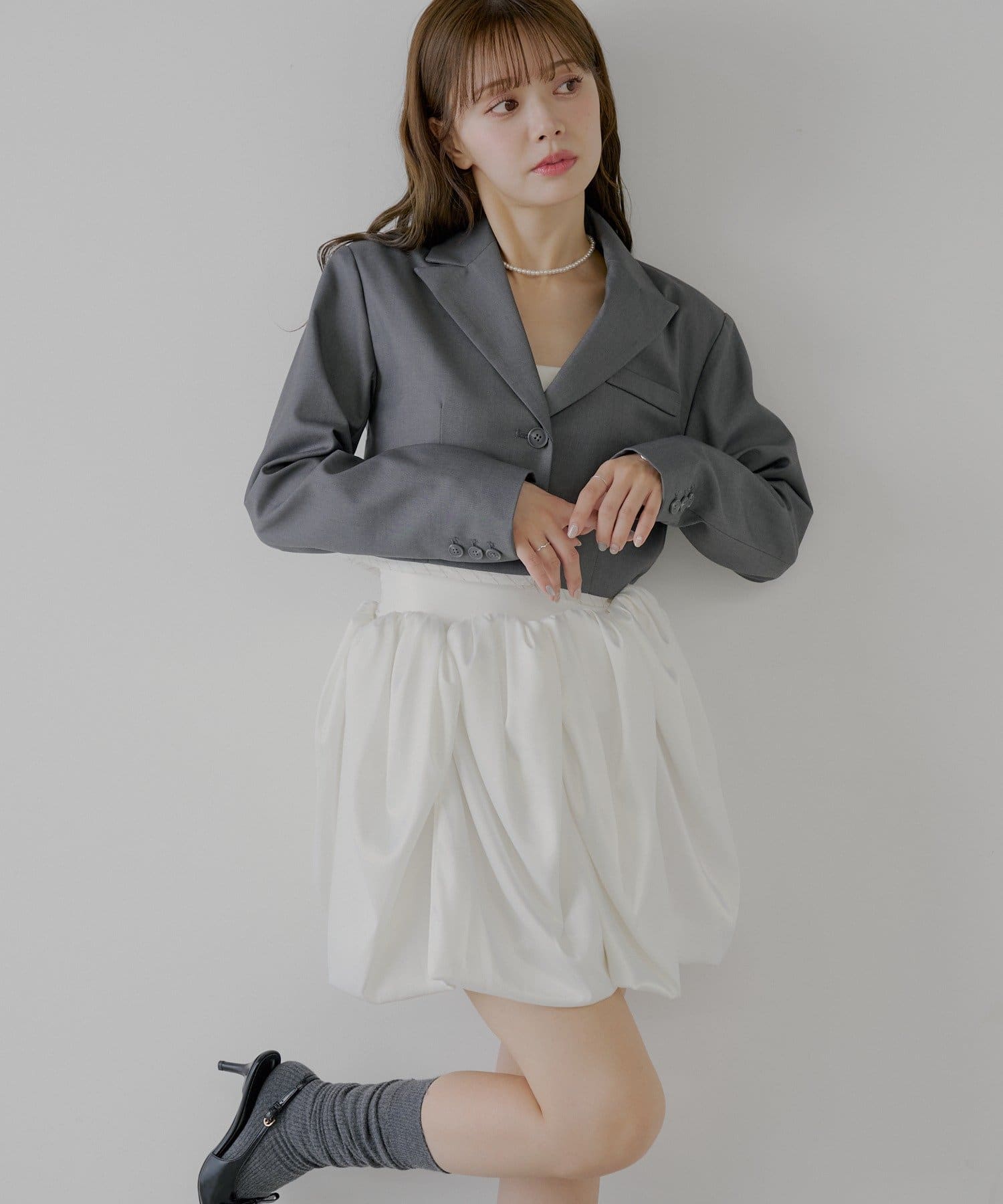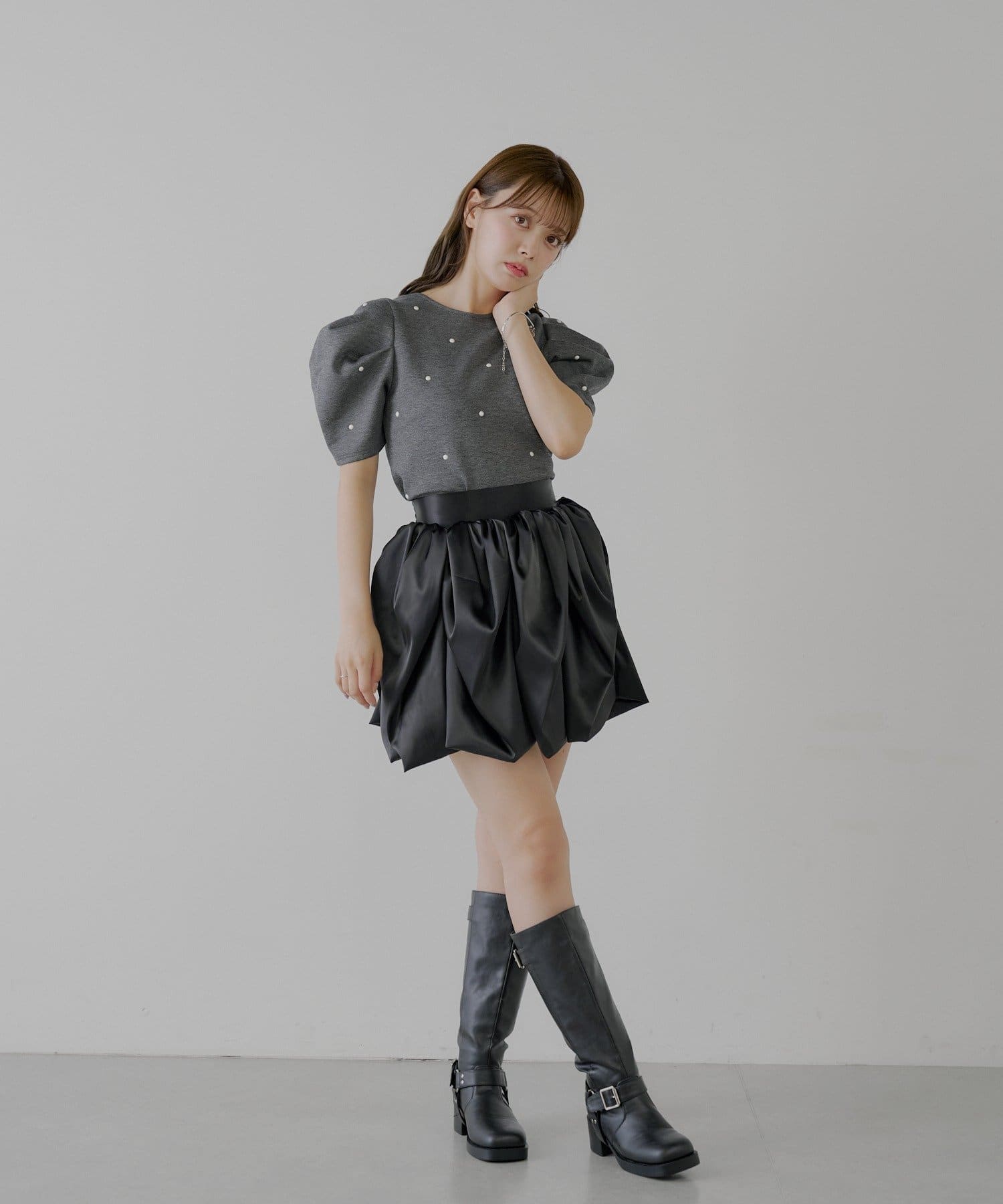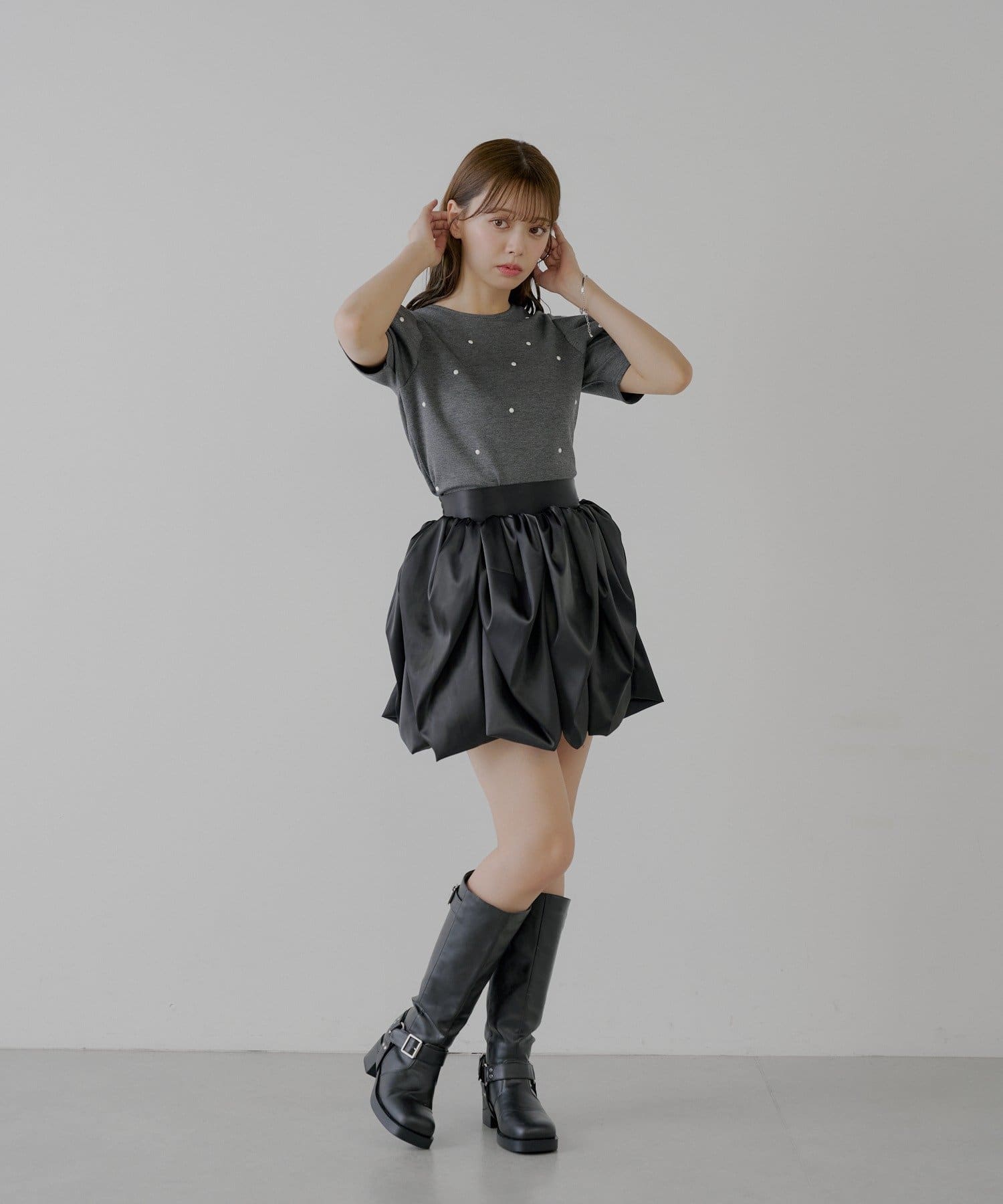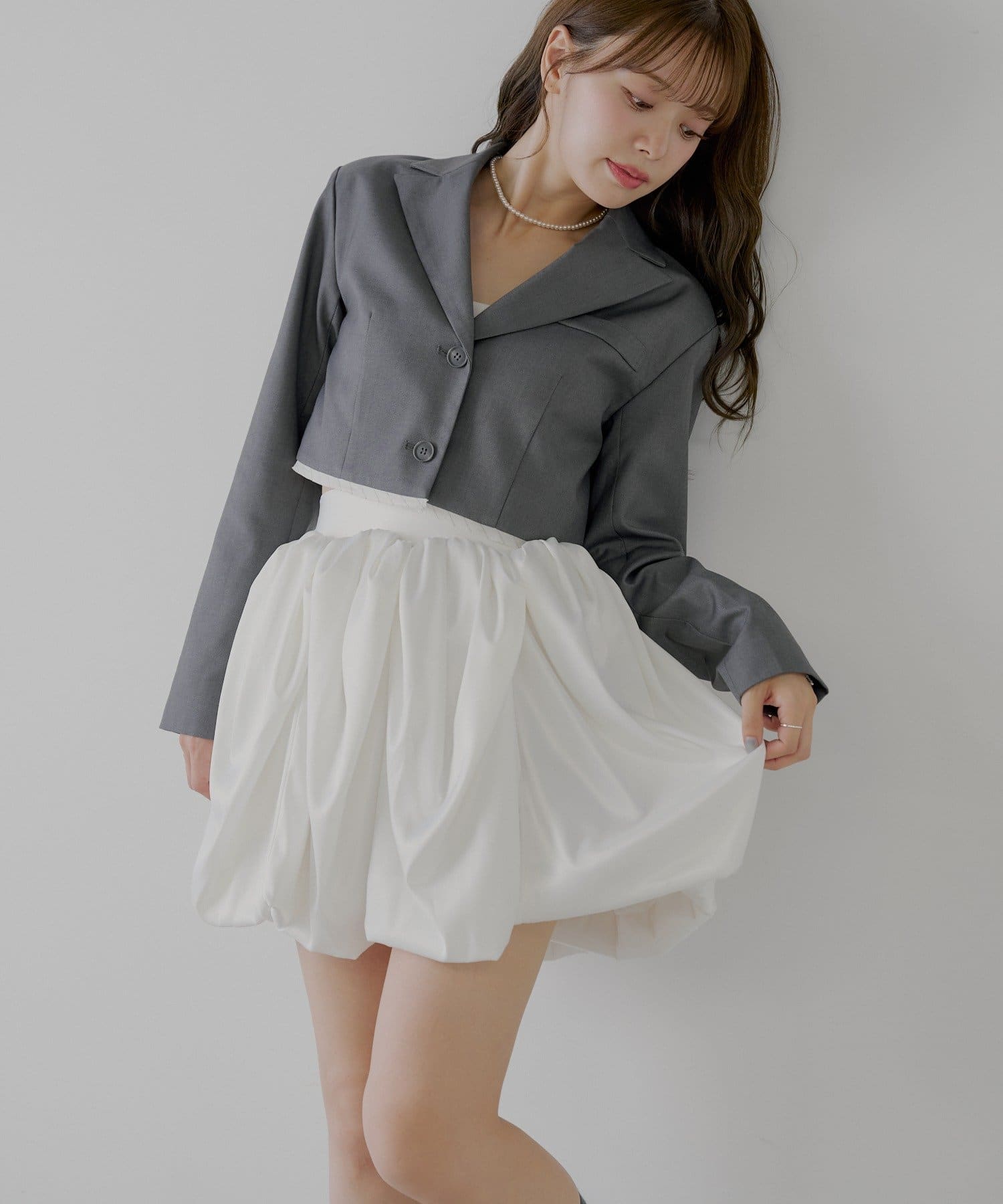 まるでチューリップの花びらのような、ふんわりとしたボリューム感が魅力のフレアスカート