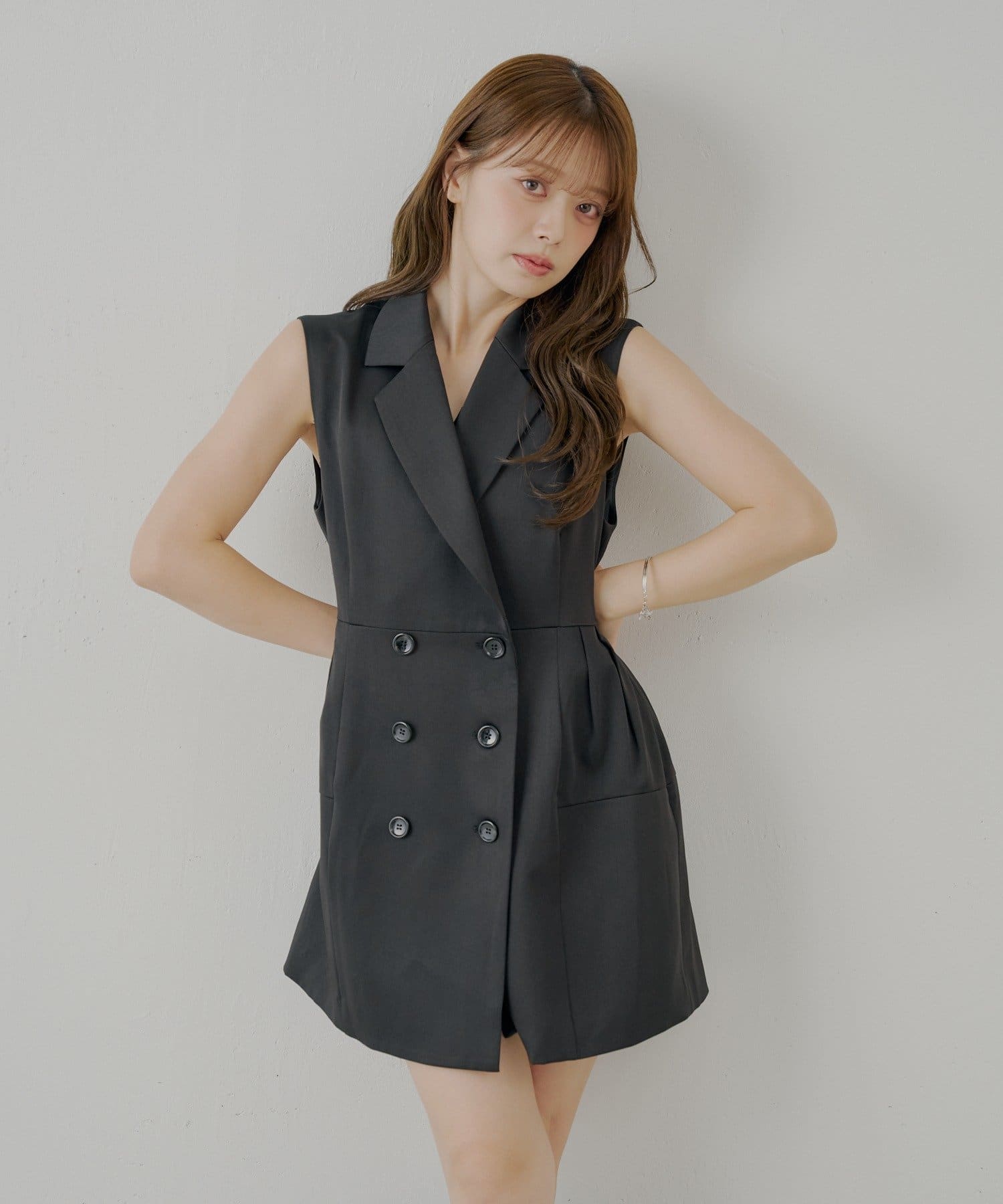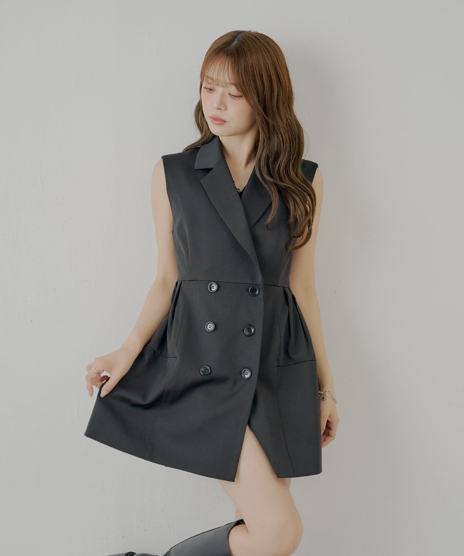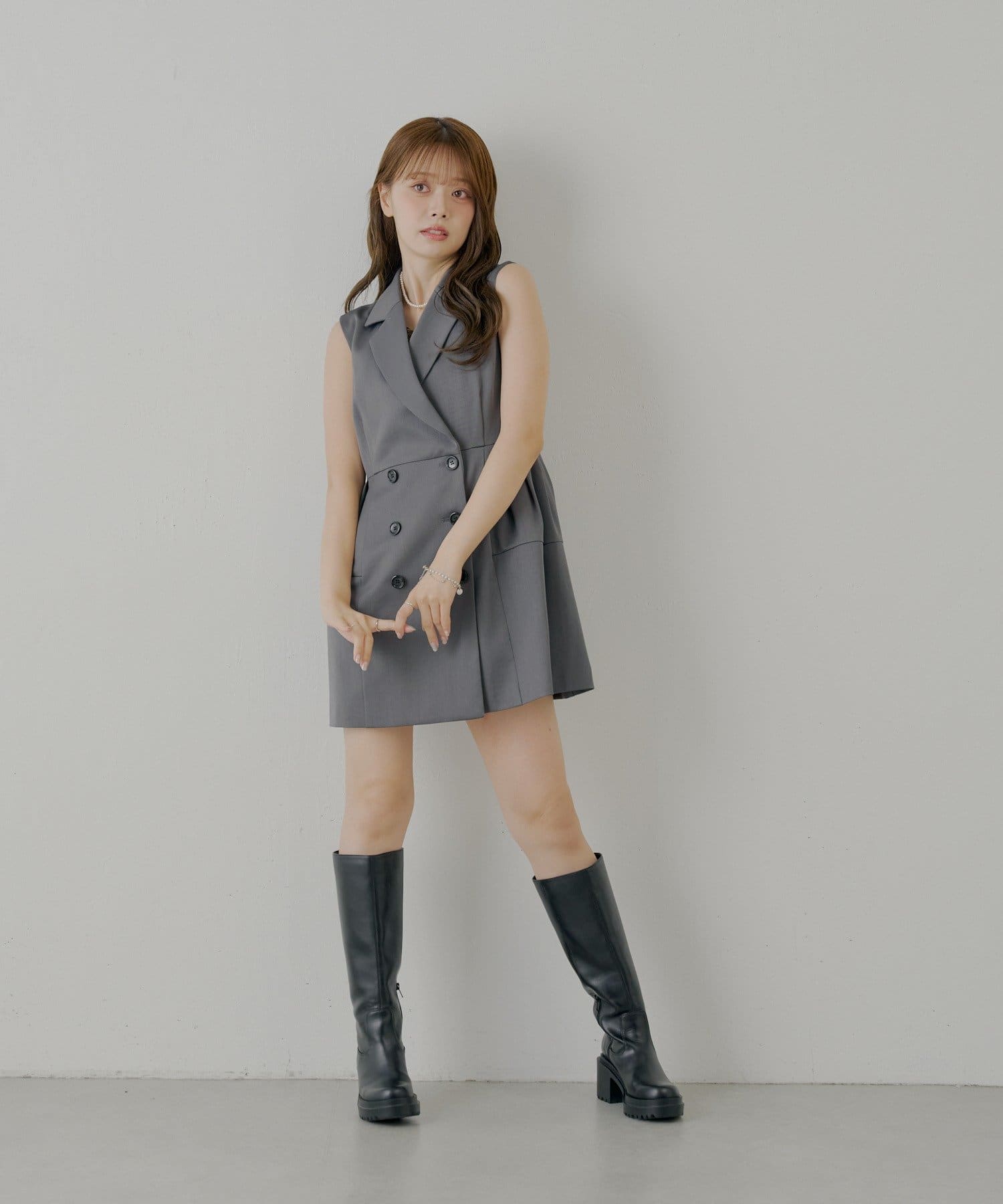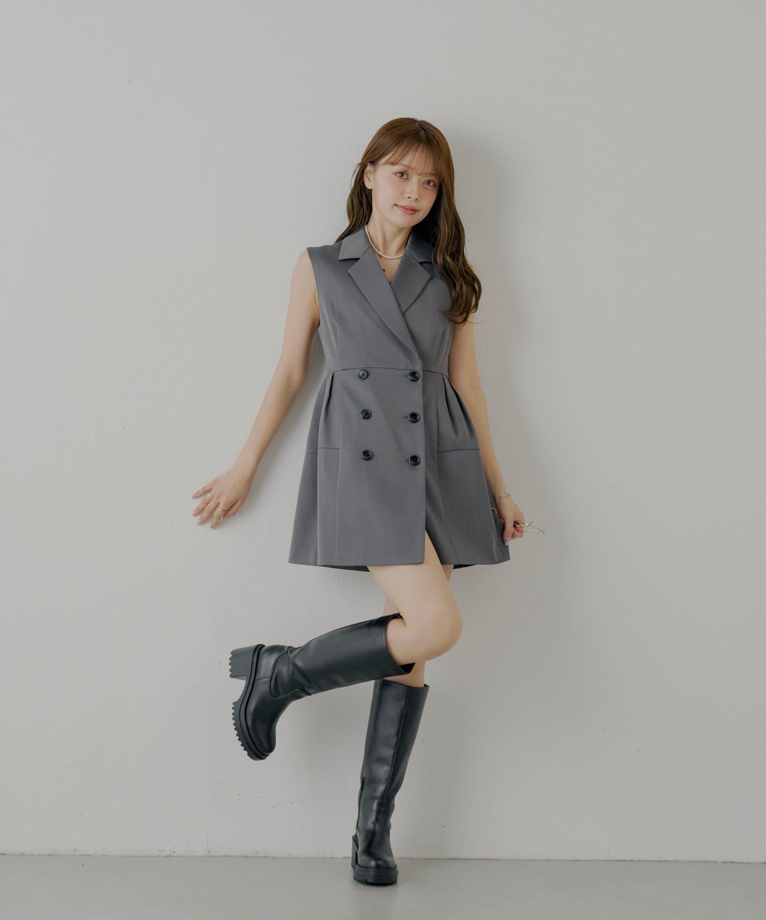 上品さとトレンド感を兼ね備えたスーツミニワンピース