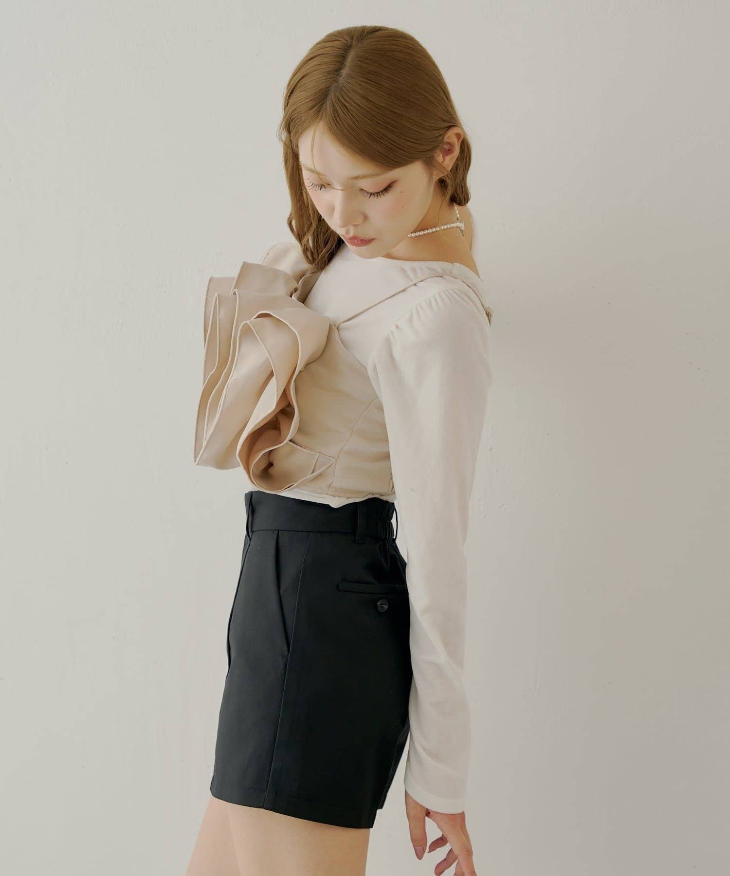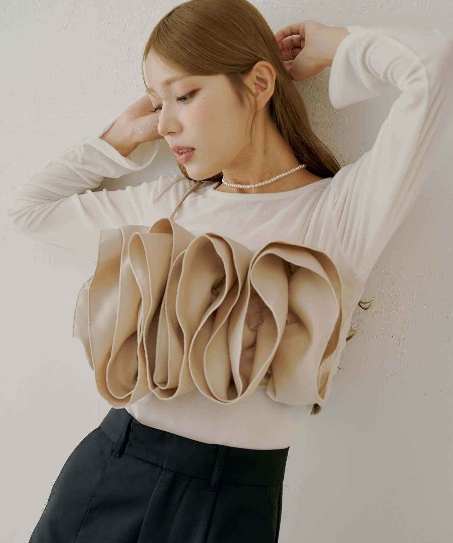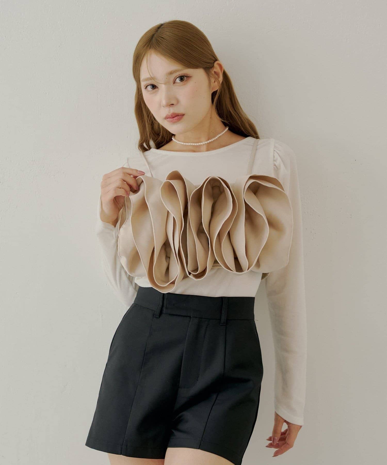 ・胸元を飾るフリルは、シンプルなトップスに重ねるだけで、華やかさと個性をプラスできます。